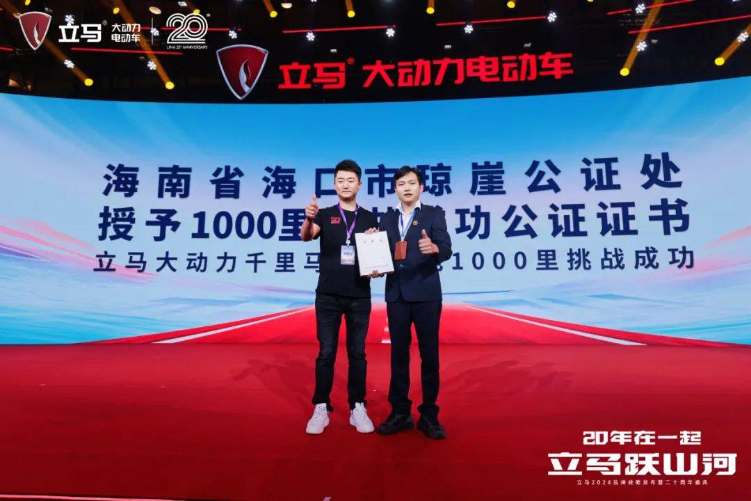盛典期間,立馬大動力千里馬成功完成“一次充電1000里”挑戰(zhàn),并得到了當?shù)毓C機構(gòu)的權(quán)威認證,全面彰顯立馬大動力電動車的卓越性能。