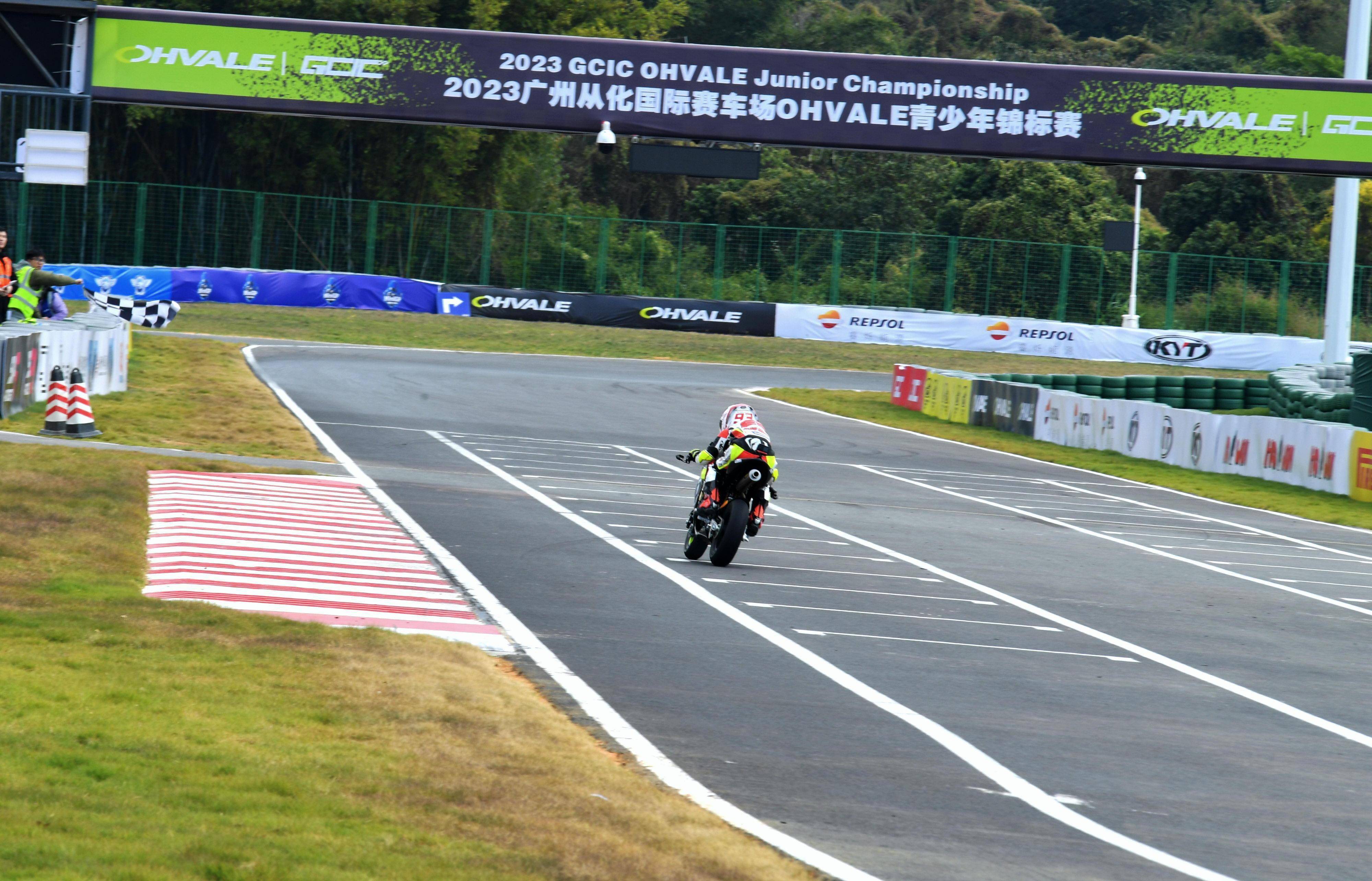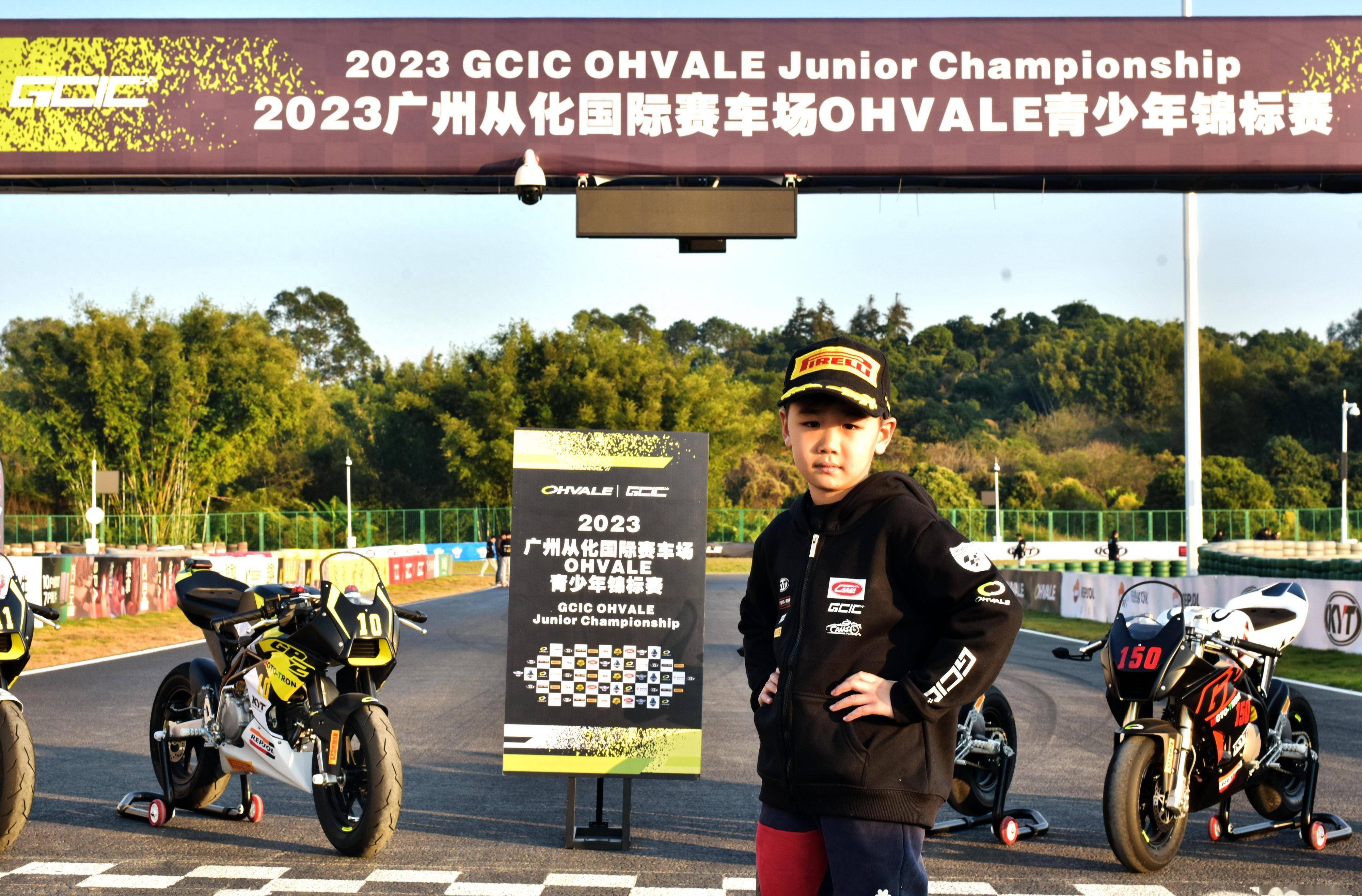 GCIC Ohvale 青少年錦標賽、2023 第一站的比賽,2023 年十二月 23 - 24 日在廣州從化國際賽車場舉行。駕駛 10 號車、參加 GP-0 110 cc 組(自動檔組)的寇文瑞,從全場第三、組別第一的位置起跑,兩節(jié)的比賽里,都拿下了全場第三和組別的第一,他最終獲得了這場揭幕戰(zhàn) GP-0 110 cc 組(自動檔組)的冠軍,并在第一節(jié)比賽里,首次跑進了 1 分 06 秒級別(1 分 06.439 秒)的最佳圈速,突破了他自己在賽前 1 分 07 秒的圈速時間。