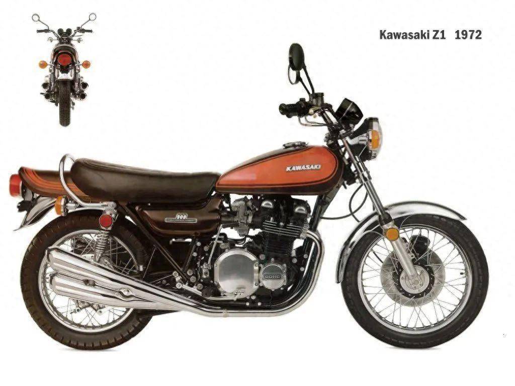 1971年春季,最早的Z1原型終于完成,動(dòng)力裝置與本田CB750一樣,搭載的是并列四缸四沖程發(fā)動(dòng)機(jī),但是汽缸排量更大,達(dá)到903mL,成為當(dāng)時(shí)日本生產(chǎn)的最大汽缸排量摩托車。但是,更大的亮點(diǎn)在于,本田CB750采用的是SOHC氣門機(jī)構(gòu),而Z1配置的是DOHC,從而顯著提升了動(dòng)力性能。在當(dāng)時(shí),DOHC主要用于GP賽車,全球范圍內(nèi)采用DOHC的量產(chǎn)型摩托車屬于鳳毛麟角,川崎也是第一次在量產(chǎn)型摩托車上采用這種氣門機(jī)構(gòu)。