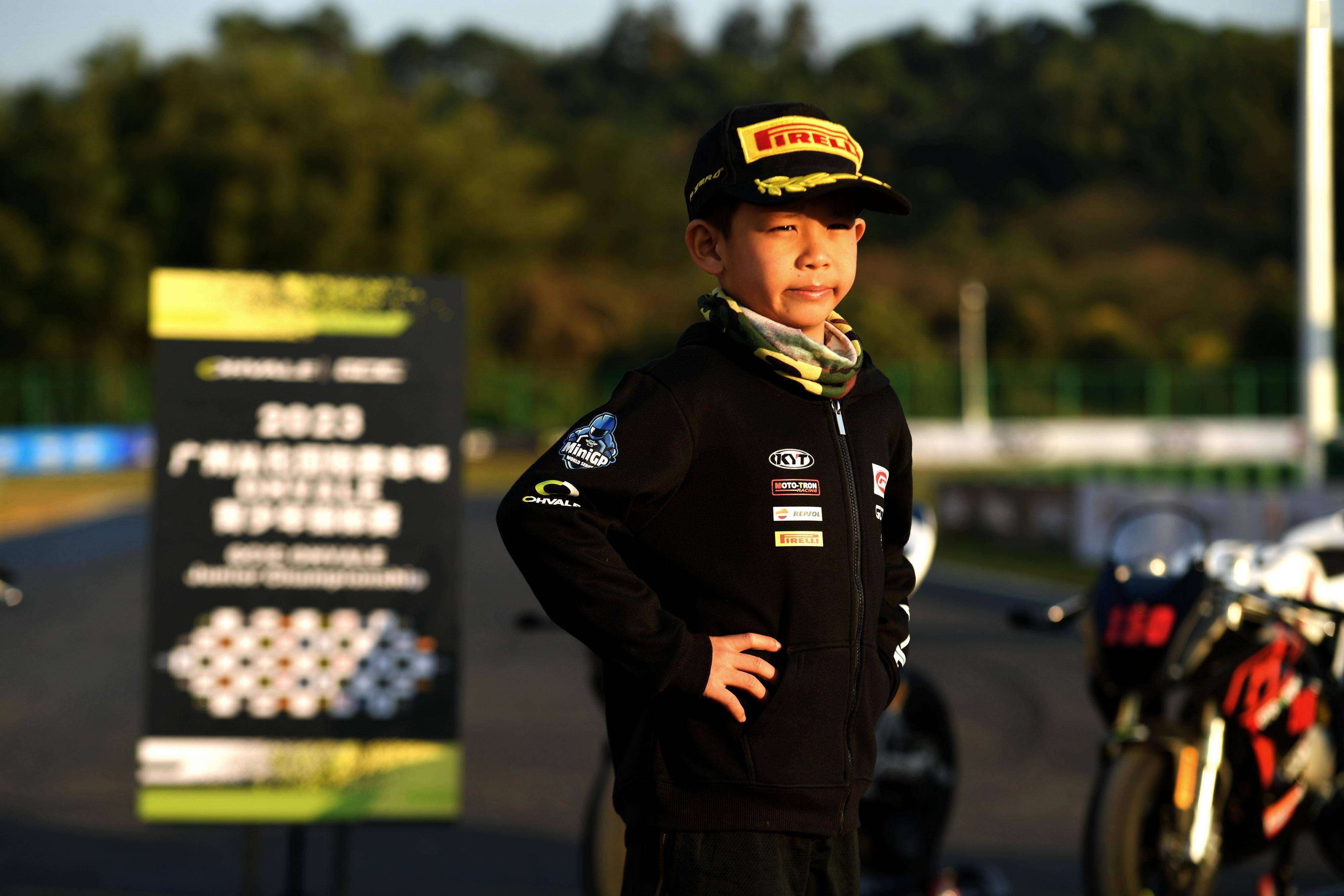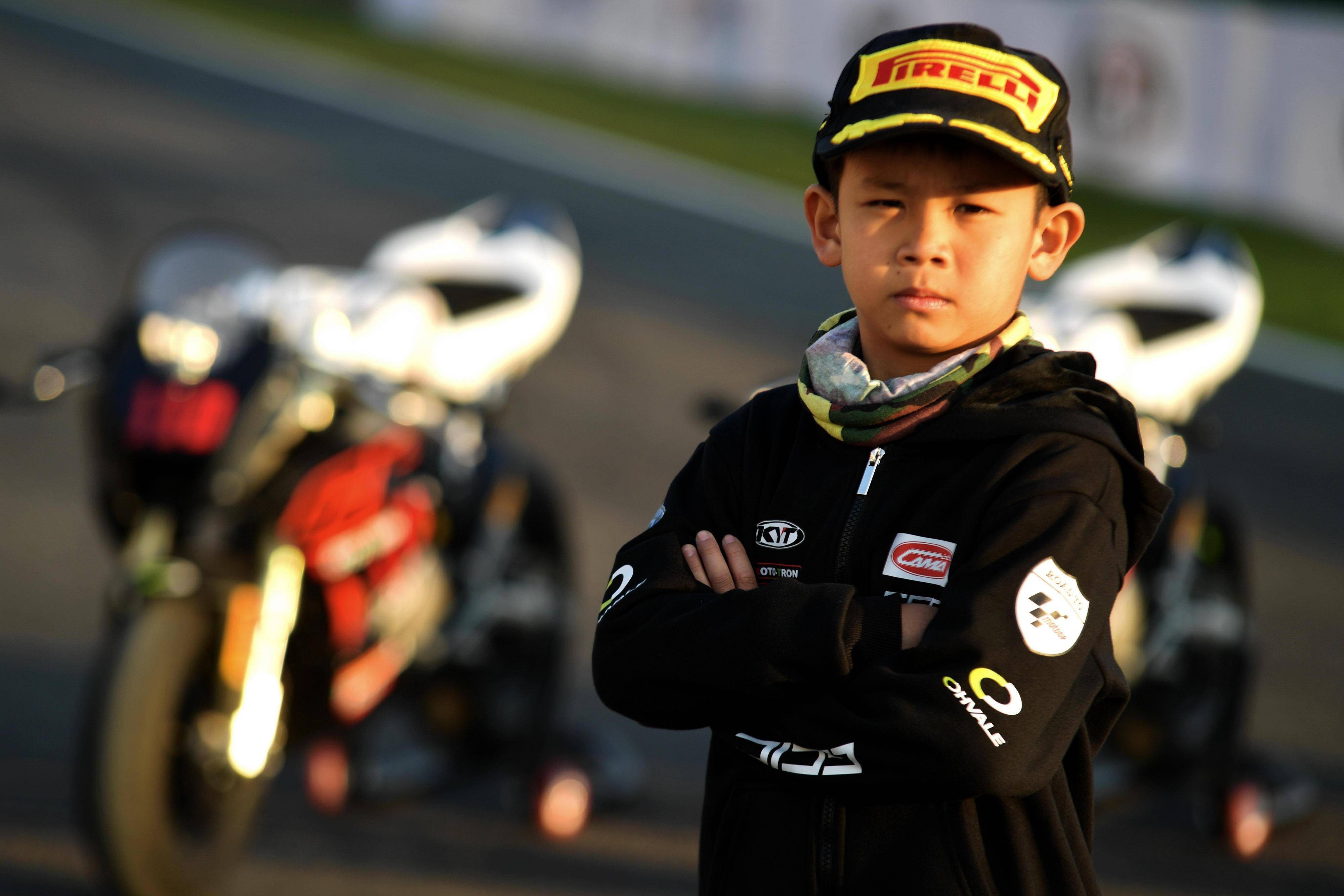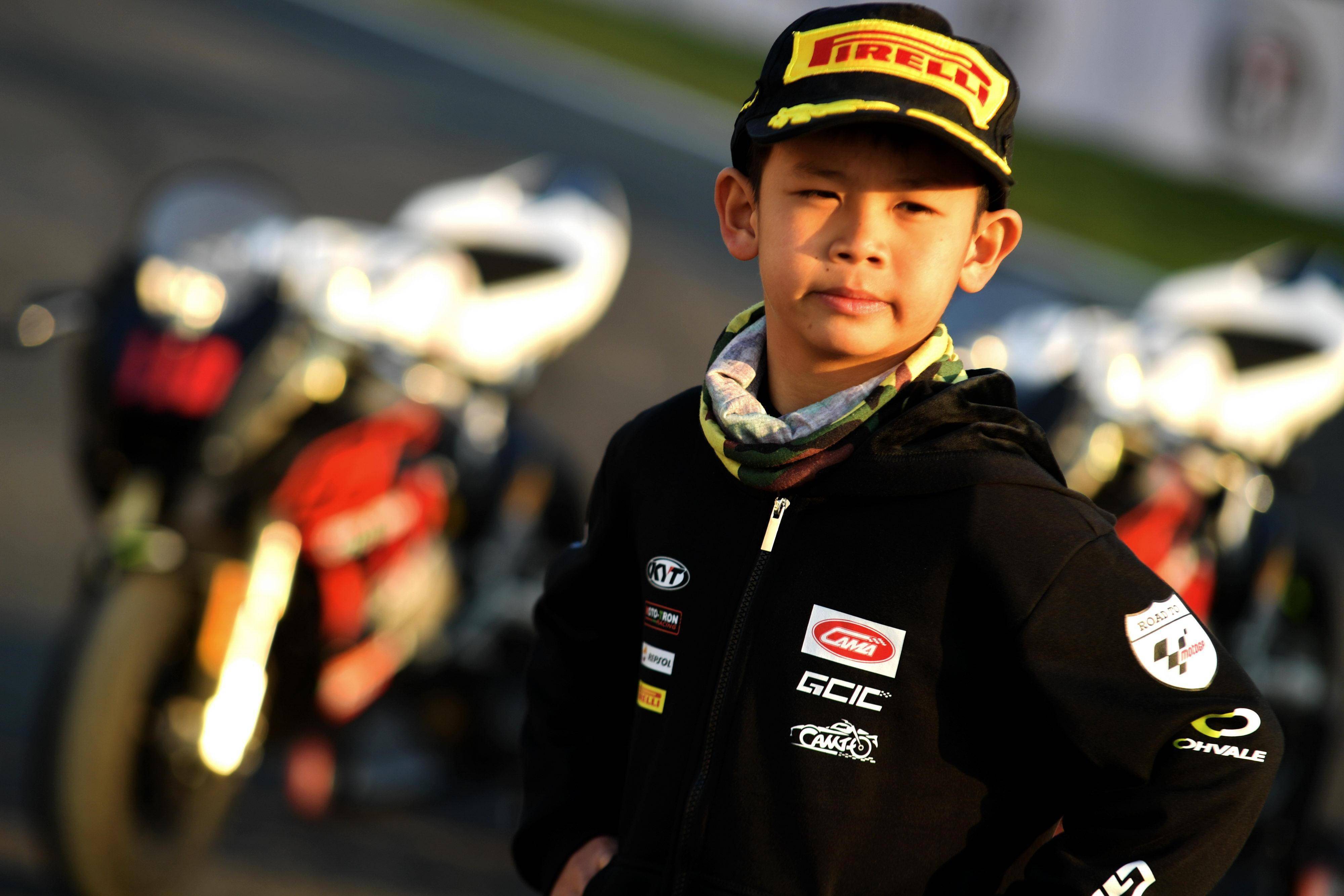 來(lái)自中國(guó)香港的周斯?jié)桑沁@一競(jìng)賽組別里、體型最小的兒童車手,騎到 Ohvale GP-0 110 賽車上的時(shí)候,雙腳只能是勉強(qiáng)點(diǎn)地。兩節(jié)的計(jì)時(shí)練習(xí)(排位賽)里,此前主要練習(xí)越野車的周斯?jié)桑_(kāi)啟了對(duì) Ohvale 賽車的適應(yīng)之路:第一節(jié)練習(xí),他只跑出了 1 分 17.059 秒的最佳圈速;到第二節(jié)練習(xí),他跑出了 1 分 15.482 秒的時(shí)間,盡管發(fā)車位置并不理想,但卻已經(jīng)有了不少的進(jìn)步。