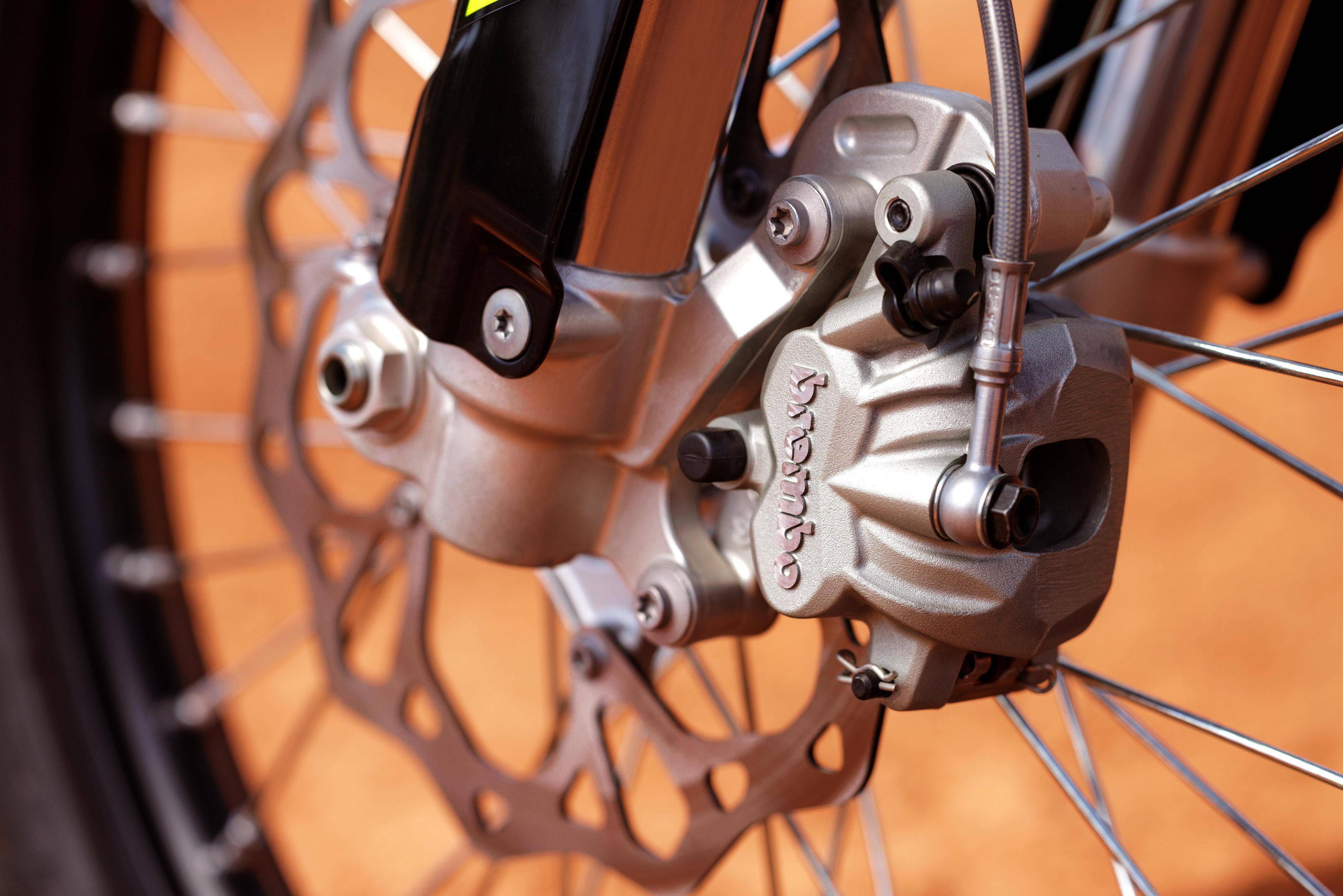 6、前后制動(dòng)系統(tǒng)標(biāo)配了 Brembo 布雷博的卡鉗,Galfer 的波浪式剎車碟;