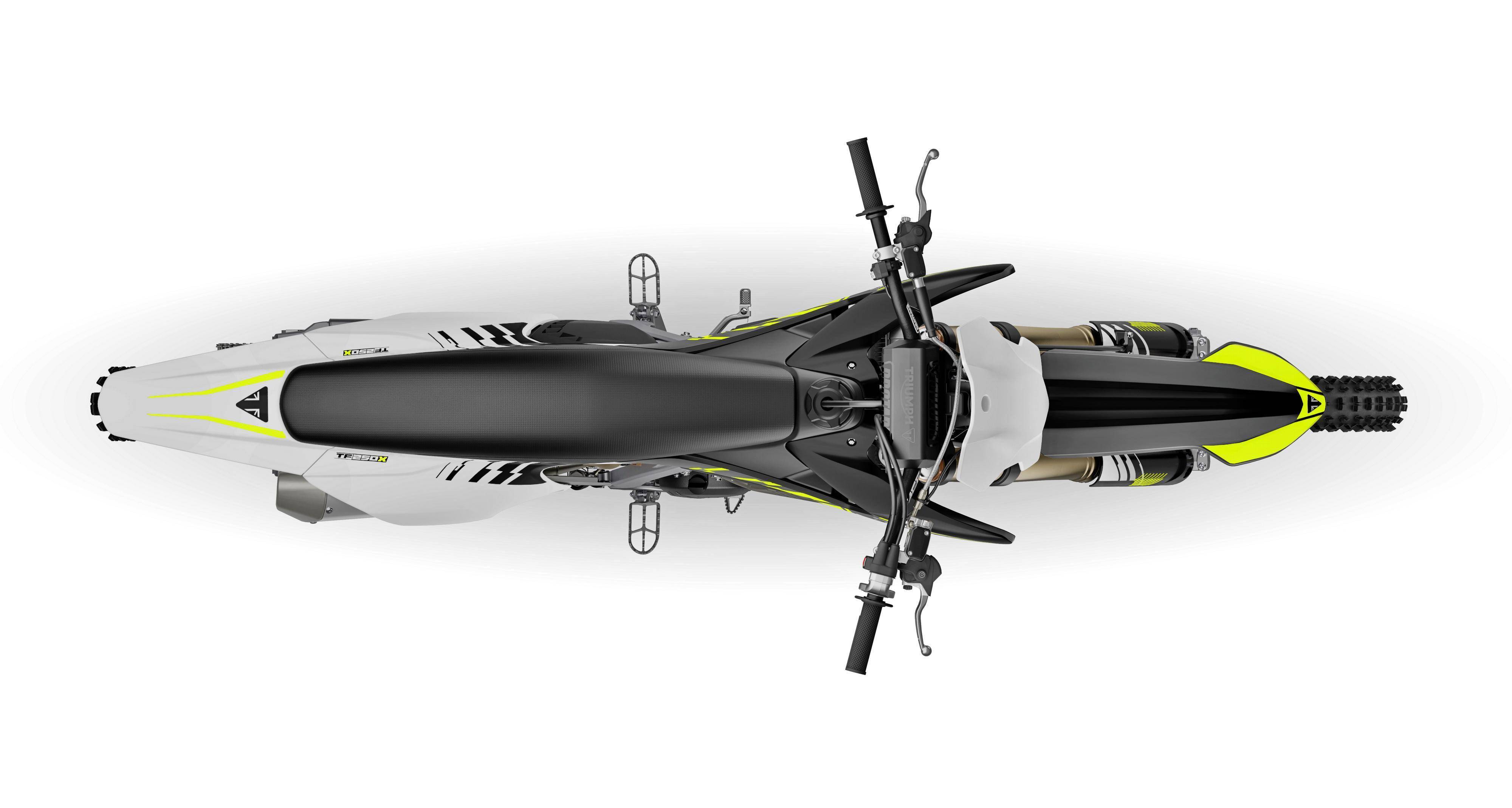 屬于 MX2 規(guī)格的 TF 250-X 搭載一副水冷四沖程單氣缸、DOHC 四氣閥的發(fā)動(dòng)機(jī),排氣量 249.95 cc,來(lái)自 Dell'Orto 配套的節(jié)氣閥、五檔的變速齒輪箱,廠方未公布該車的峰值馬力輸出,而這類車型的最大馬力輸出普遍達(dá)到 40 匹以上。車體采用一副鋁合金制雙翼樑車架,KYB 配套的前后懸掛系統(tǒng),容量為 7 公升的油箱,全車整備重量 104 公斤。