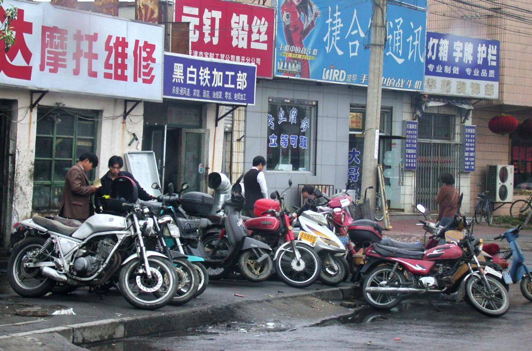 下面的圖片攝于 2001 年、位于天津的一家維修店門前(資料圖片)。