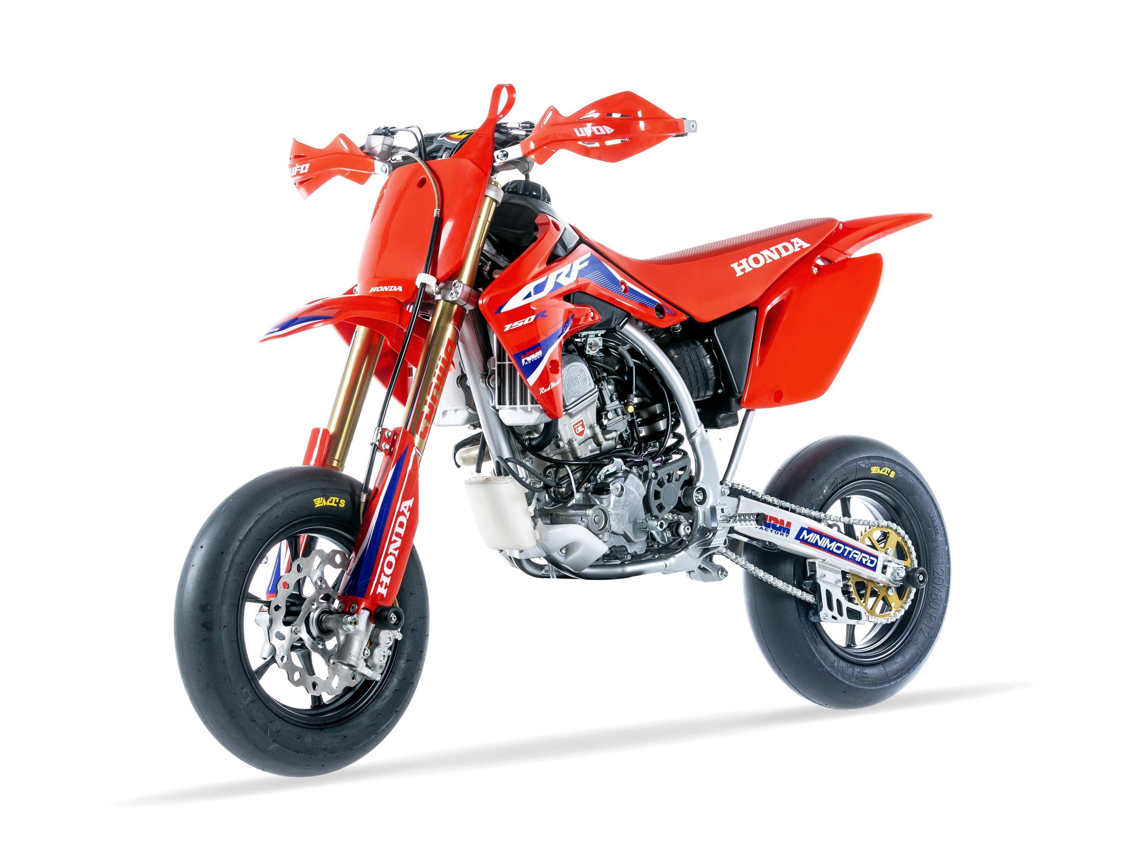 去年十一月的時候,Honda 與西班牙制造商 Montesa 蒙提薩在意大利的合資企業(yè) RedMoto srl,推出了 2024 款的 Minimotard 迷你公路越野(也稱之為滑胎)賽車 CRF150R 系列。
