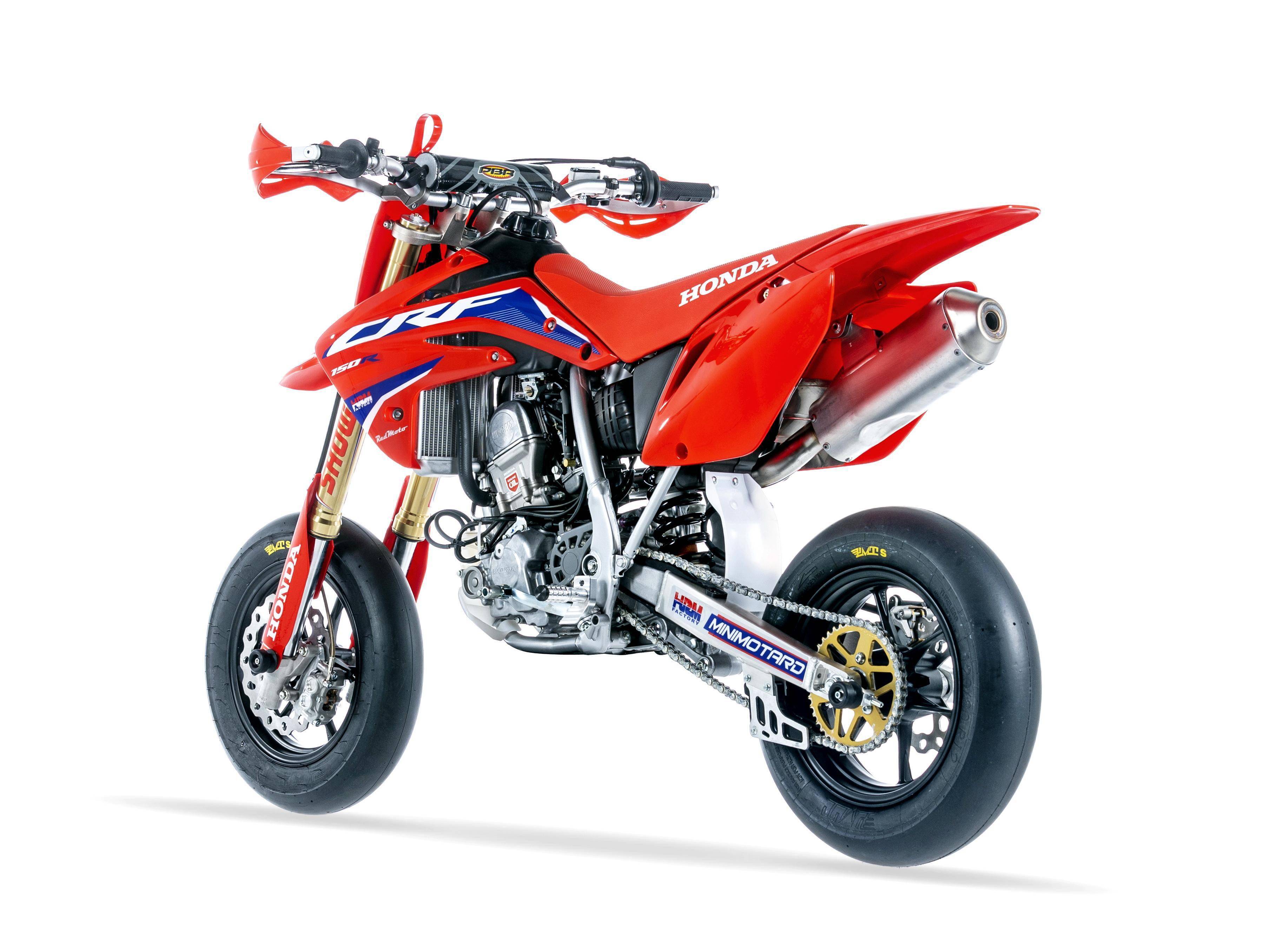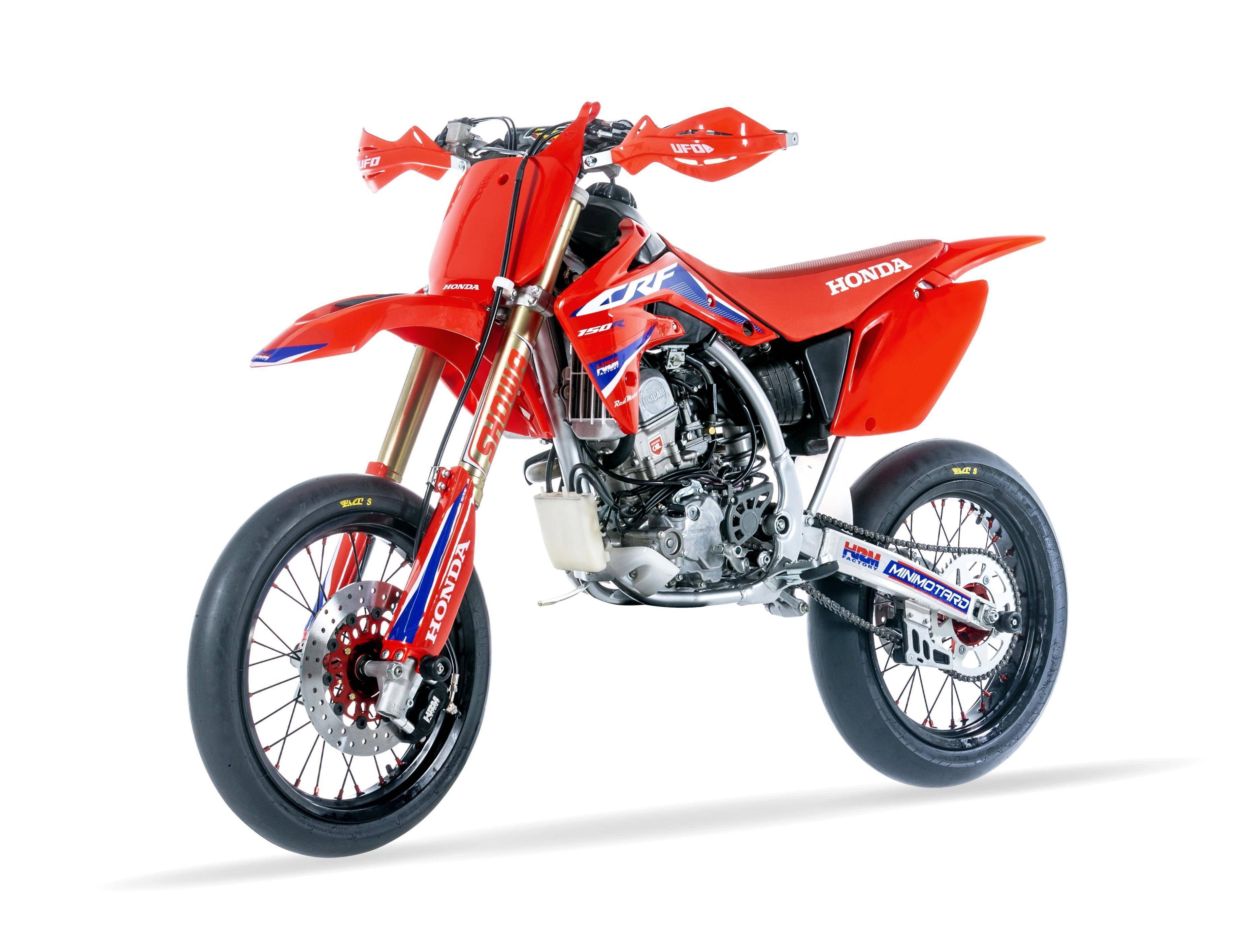 下圖:17 英寸車輪版的 2024 CRF150R Minimotard。