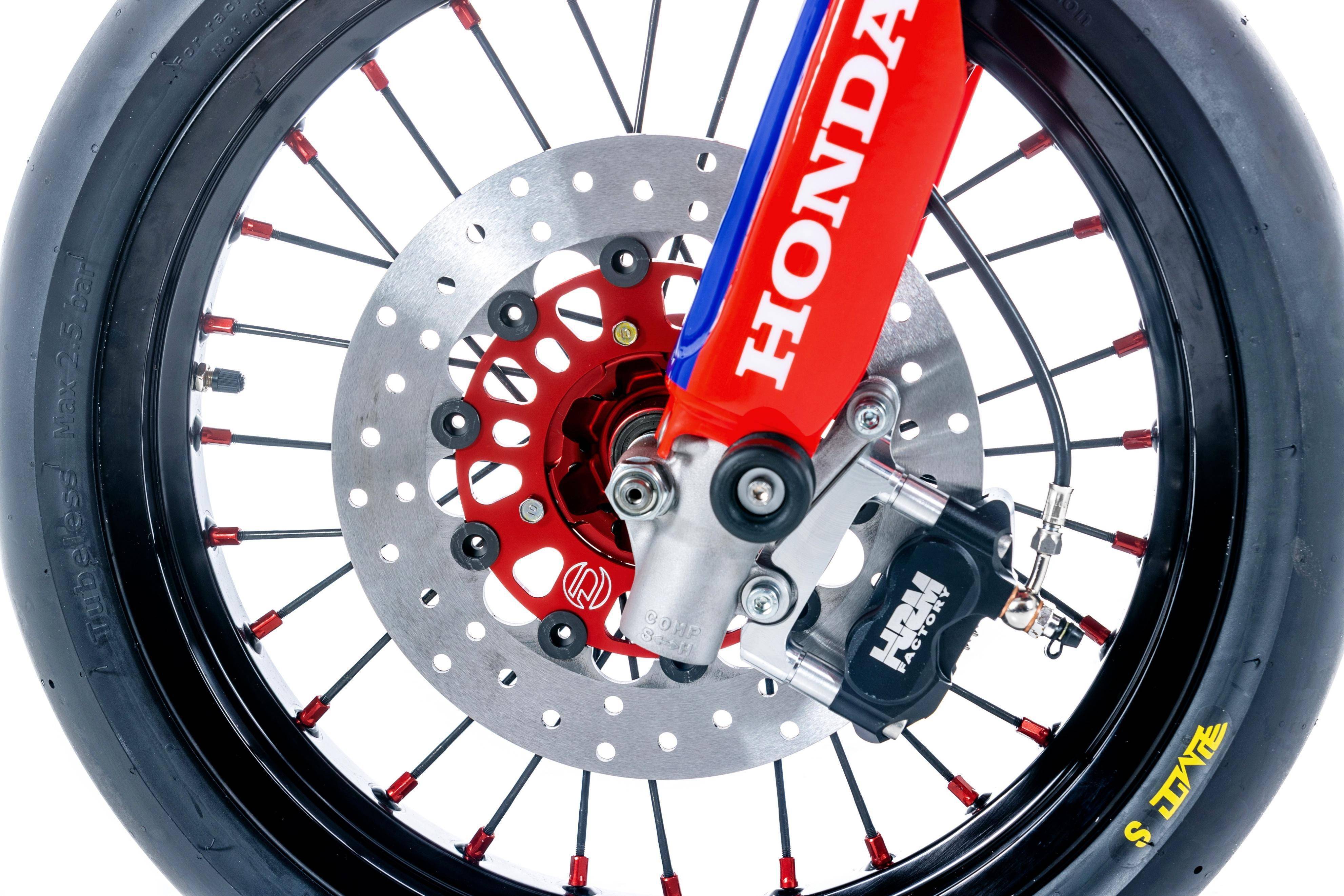 早在 2022 年五月的時候,RedMoto 就與當(dāng)?shù)氐馁愂峦茝V公司 HRM Factory 聯(lián)合推出了 HRM CRF150R 迷你公路越野賽車,這是 RedMoto 繼 CRF450R Supermoto 系列全尺寸公路越野賽車之外,在入門級車型里的首次嘗試。而當(dāng)時的這款 HRM CRF150R Minimotard 只有一個 12 英寸車輪的版本,主要是為當(dāng)?shù)匾豁椊y(tǒng)一規(guī)格車型的公路越野比賽而準(zhǔn)備,由該推廣公司自行銷售。
