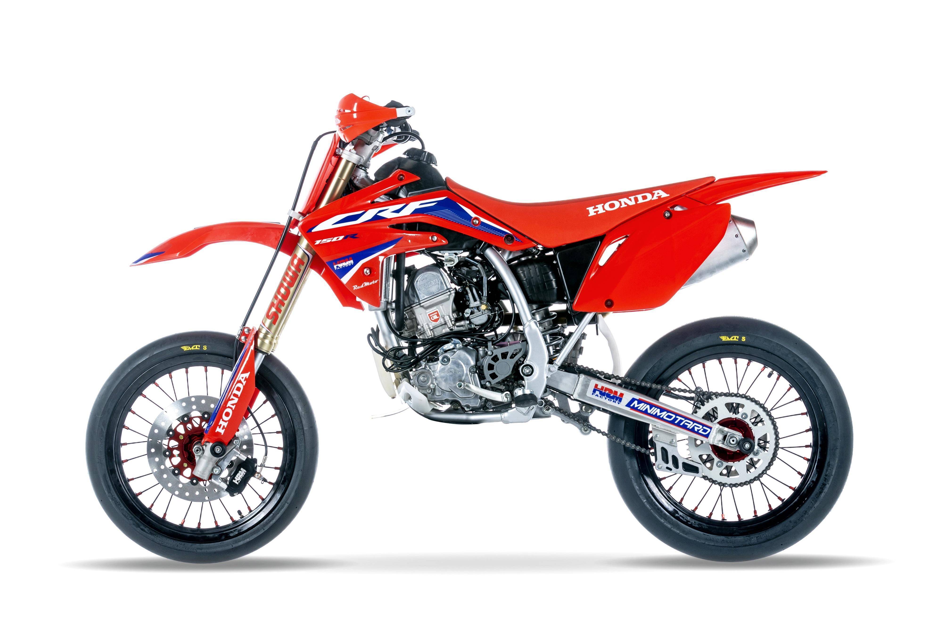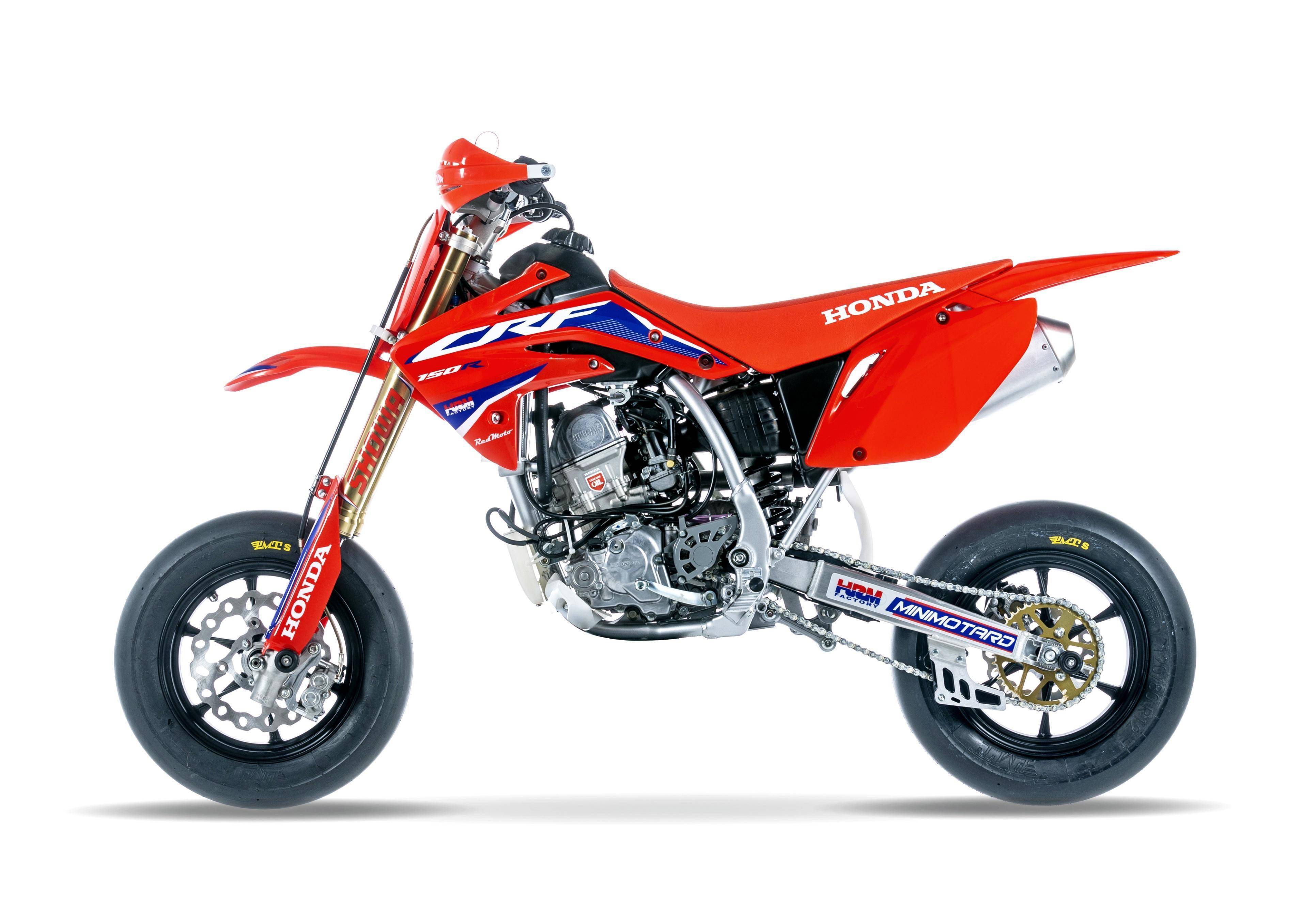 下圖:12 英寸車輪版的 2024 CRF150R Minimotard。