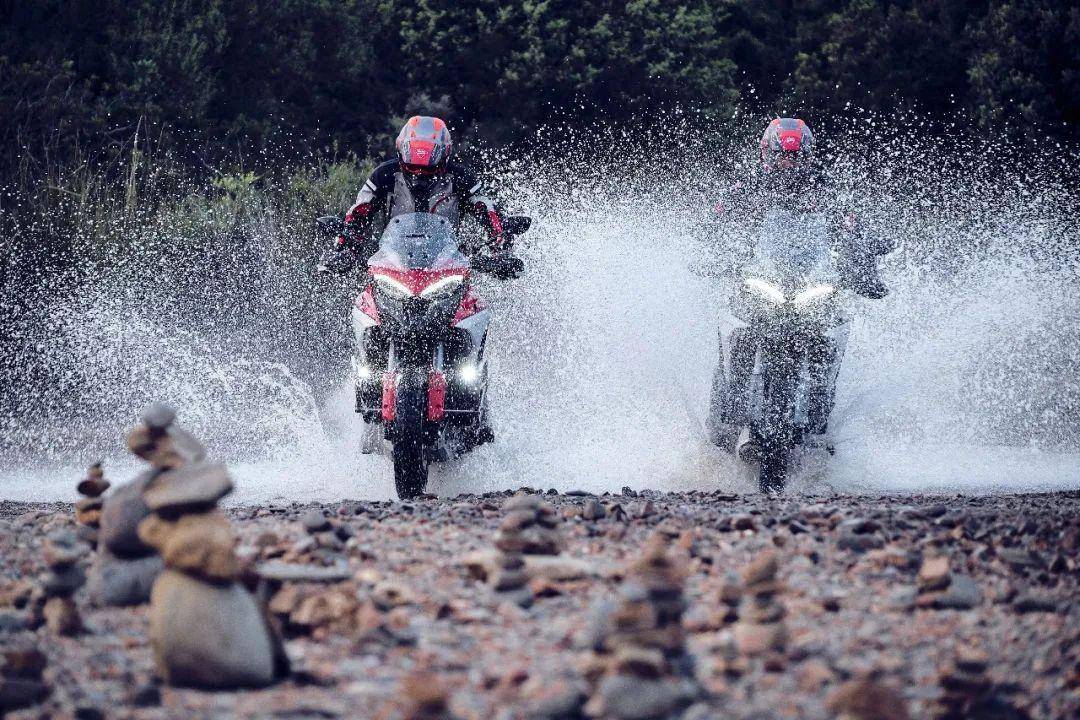 杜卡迪的探險(xiǎn)車Multistrada持續(xù)進(jìn)化,動(dòng)力心臟已經(jīng)從原來(lái)的L型雙缸發(fā)動(dòng)機(jī)晉級(jí)為V型四缸發(fā)動(dòng)機(jī)。這臺(tái)V4發(fā)動(dòng)機(jī)采用了83mm×53.5mm的缸徑和沖程,無(wú)論缸徑還是沖程都比Panigale V4R大,相應(yīng)地,汽缸排量也水漲船高,達(dá)到1158mL,比Panigale V4R多了160mL。當(dāng)然,這只是表面上的變化,內(nèi)在修改更多——包括凸輪軸、氣門、活塞、點(diǎn)火正時(shí)、電子燃油噴射系統(tǒng)等,都根據(jù)新定位作了優(yōu)化,使這臺(tái)V4發(fā)動(dòng)機(jī)在中低轉(zhuǎn)速范圍輸出的動(dòng)力更加豐沛,充分滿足探險(xiǎn)旅行的需求。雖然Multistrada V4的汽缸排量比上一代Multistrada 1260mL少了104mL,但是得益于V4發(fā)動(dòng)機(jī),能量反而顯著提升,最大扭矩為125 N·m(8750 r/min),最大功率達(dá)到125kW(10500 r/min),增加了9kW。