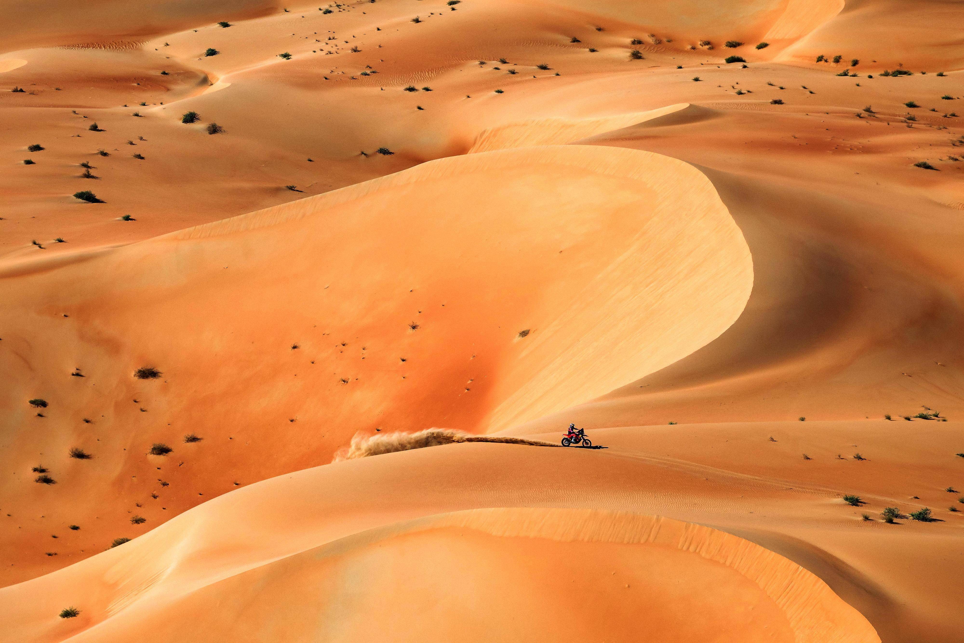 為期兩周的比賽,最終有 103 位車手獲得有效名次。比賽的前六個(gè)賽段,HERO 英雄摩托拉力車隊(duì)的 46 號(hào)車、來自博茨瓦納的布蘭奇(Ross Branch),在其中的五個(gè)賽段、都處于總分領(lǐng)先的狀態(tài);第七個(gè)賽段開始,憑借著非常穩(wěn)定的表現(xiàn),HRC 工廠車隊(duì)的 9 號(hào)車、來自美國的車手巴拉貝(Ricky Brabec)擠掉了布蘭奇,位置上升到榜首,而他在七個(gè)賽段都沒有拿過第一;到第十賽段,總分一直處于總分領(lǐng)先位置的巴拉貝,拿到了他在今年比賽里的首個(gè)賽段冠軍。