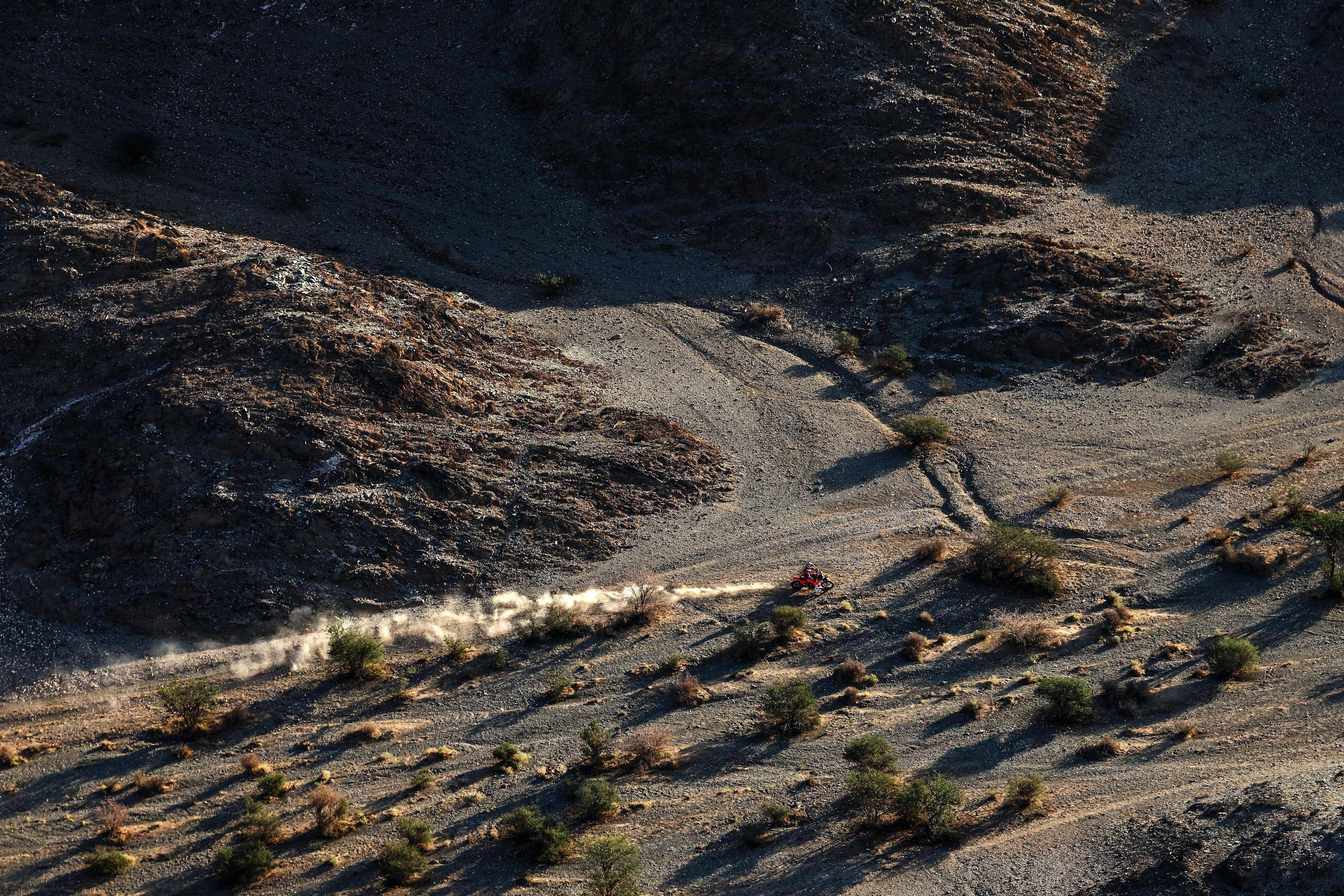 KTM 陣營,應(yīng)屆的冠軍、47 號(hào)車、來自阿根廷的 K. 貝納維迪斯(Kevin Benavides)獲得了第四;他的隊(duì)友,駕駛 2 號(hào)車、來自澳大利亞的普萊斯(Toby Price)拿到了第五。