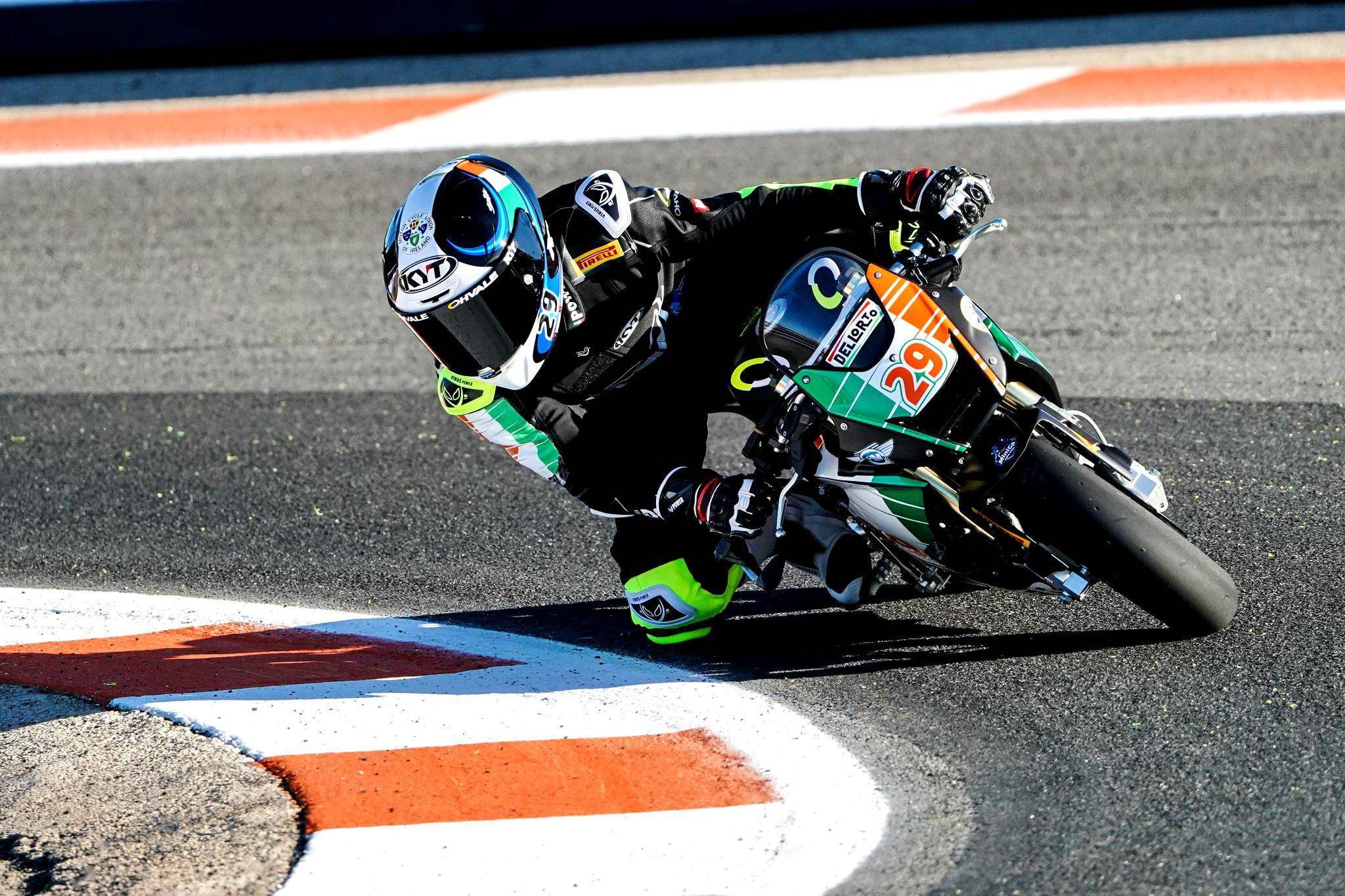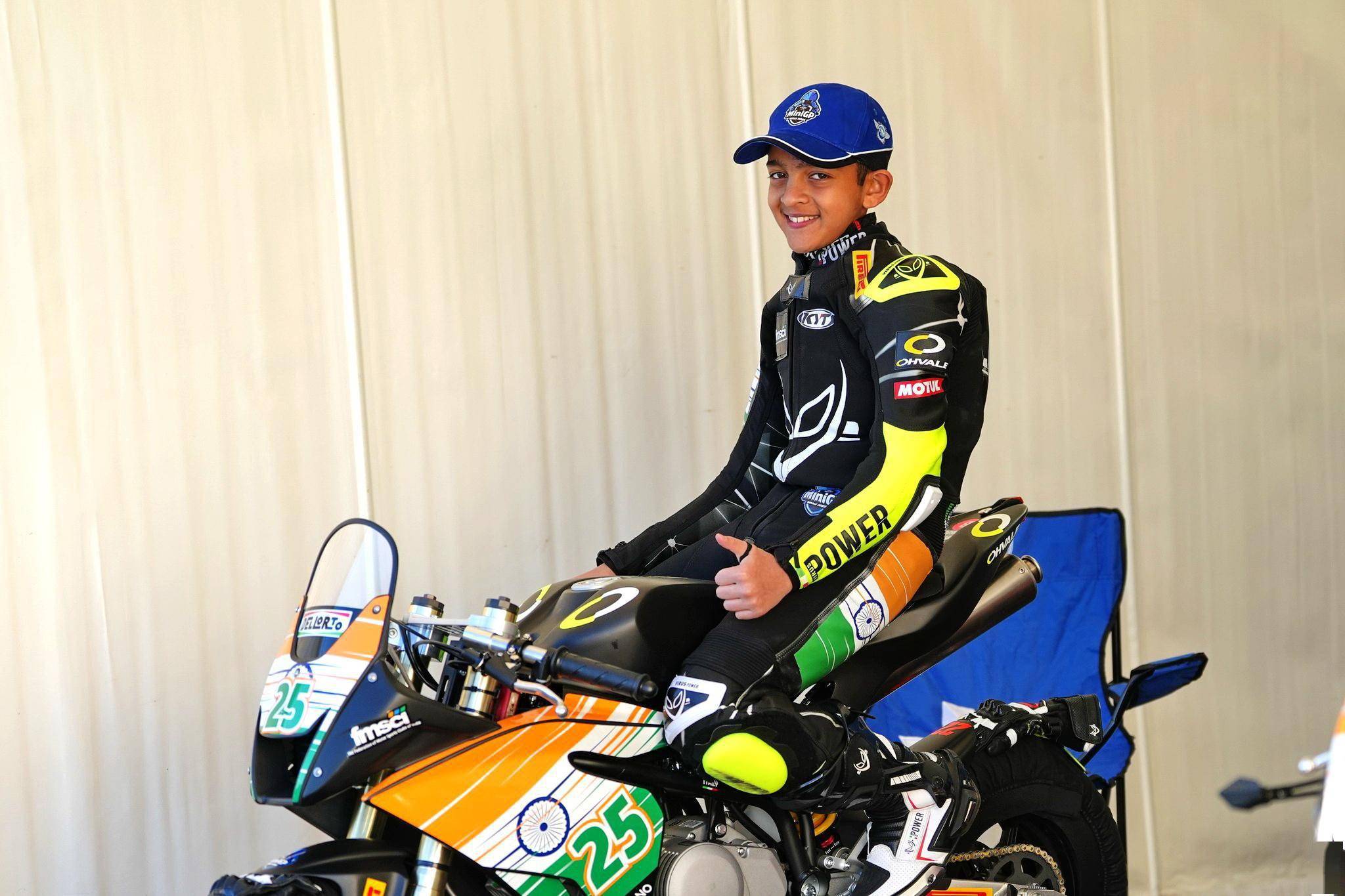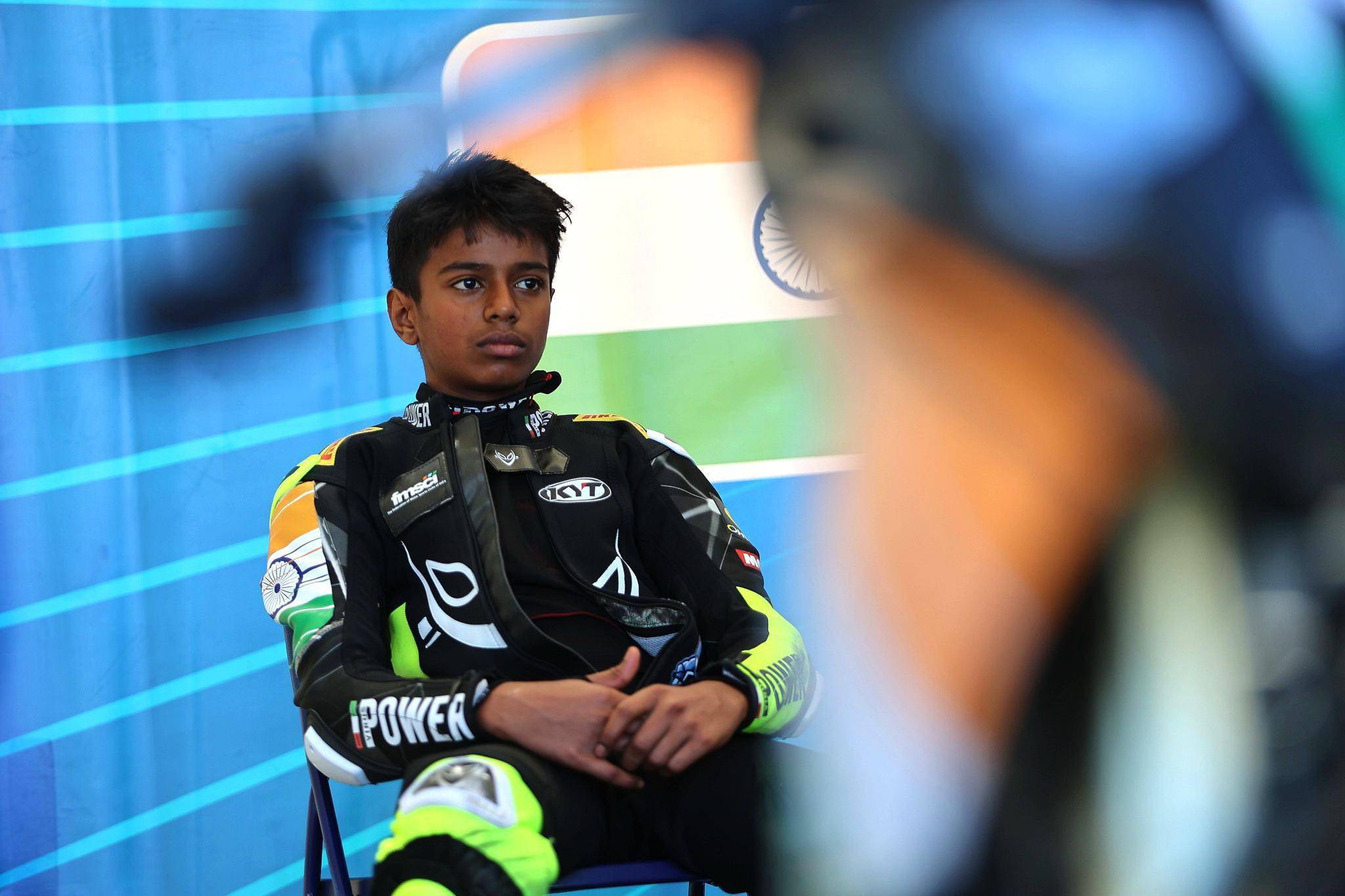 下面的圖片,F(xiàn)IM MiniGP 世界系列賽 2023 西班牙年度總決賽里的印度車手(資料圖片。圖片來源:FIM MiniGP)。