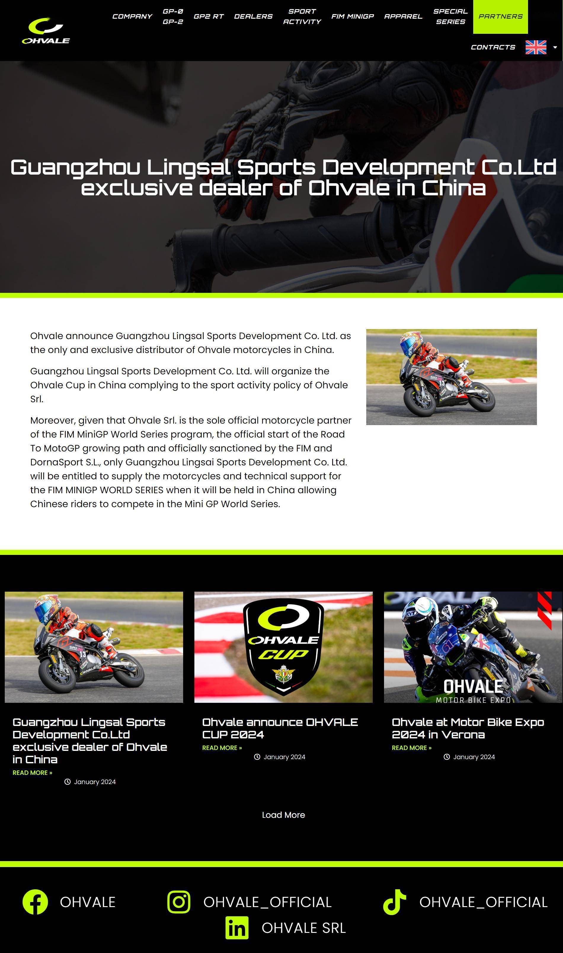 日前,意大利的賽車制造商 Ohvale SRL 正式發(fā)布了新聞公告,授權(quán)廣州領(lǐng)賽體育發(fā)展有限公司(以下簡稱為領(lǐng)賽公司)為 Ohvale 摩托車在中國市場的獨家經(jīng)銷商。領(lǐng)賽公司有權(quán)根據(jù) Ohvale SRL 的辦賽政策指引,在國內(nèi)舉行 Ohvale 的杯賽。此外,考慮到 Ohvale SRL 是 FIM 迷你 GP 世界系列賽(FIM MiniGP World Series),這個 Road to MotoGP “ 通往 MotoGP 之路 ” 賽事的唯一官方用車供應(yīng)商,當(dāng) FIM 迷你 GP 世界系列賽在中國舉行的時候,也將由領(lǐng)賽提供車輛和技術(shù)支援服務(wù),從而讓中國的車手也能亮相西班牙的年度總決賽。
