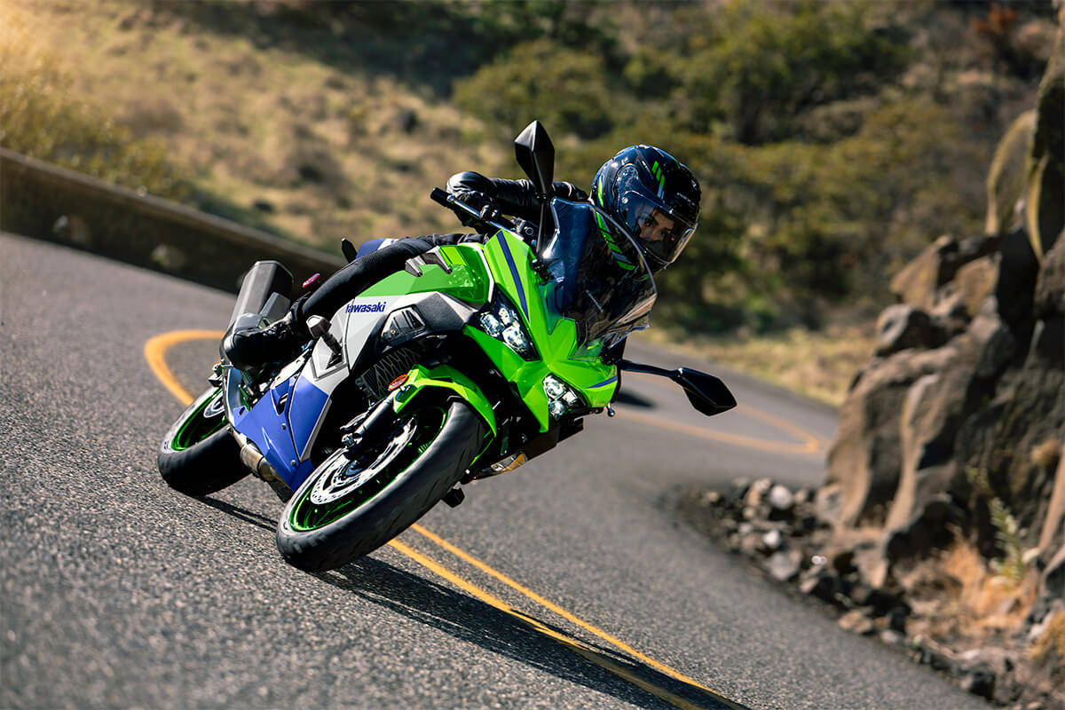 NINJA 500搭載的是一顆經(jīng)過重新設(shè)計的451cc并列雙缸引擎,雖然相比400版本僅多出0.4匹馬力,達(dá)到45.4 ps@9,000 rpm的最大馬力,并且在6,000 rpm時帶來4.3 kgf•m的扭力,但這顆引擎在性能表現(xiàn)上進(jìn)行了重大調(diào)整。 原本以高轉(zhuǎn)速著稱的Ninja 400,現(xiàn)在轉(zhuǎn)而提供低轉(zhuǎn)速下的強(qiáng)勁扭力,這意味著最大馬力轉(zhuǎn)速提前了1,000rpm,而扭力峰值也提前了2,000rpm。 這樣的變化,讓人不禁好奇,這顆引擎改款后是否依然能在山路和賽道上維持其熱血的駕駛感受。