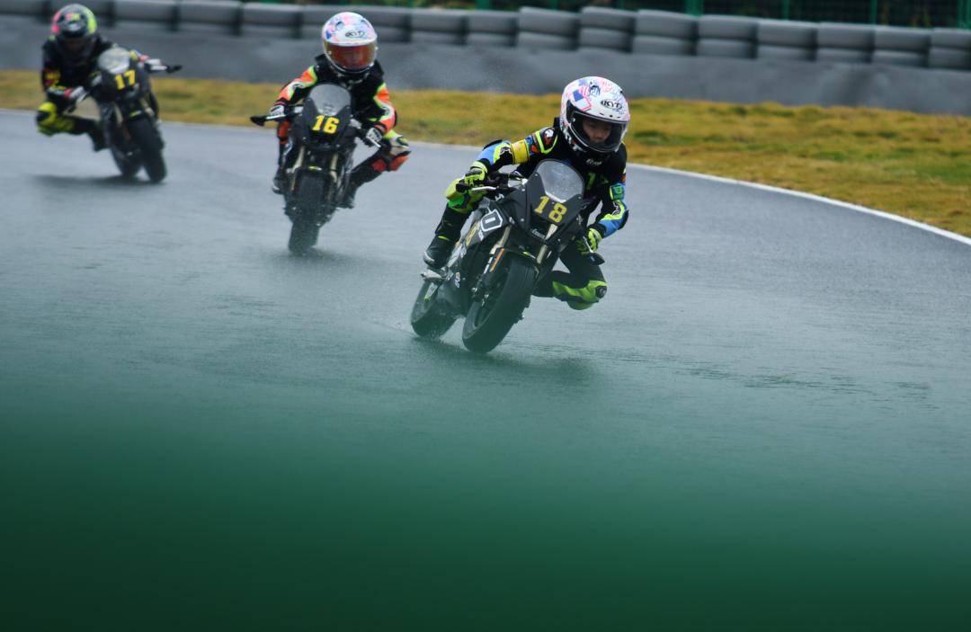 A 自動(dòng)檔組的競(jìng)爭(zhēng)、是第二節(jié)比賽里的重要焦點(diǎn),17 號(hào)車的劉易瑄、18 號(hào)車的林景源、16 號(hào)車呂思穎、10 號(hào)車的寇文瑞,四位最佳圈速都相近的小車手,在水花飛濺的大半場(chǎng)比賽里,為觀眾們奉獻(xiàn)了扣人心弦的精彩角逐。劉易瑄最終率先沖線、拿下了全場(chǎng)第二和組別冠軍;隨后沖線的林景源因?yàn)榘l(fā)車的時(shí)候、賽車壓線,被罰時(shí) 15 秒,他最后拿到了組別第四名;呂思穎和寇文瑞分別獲得了組別的亞軍、季軍。