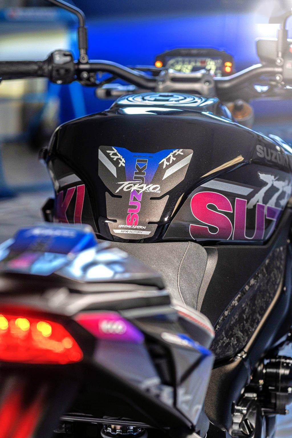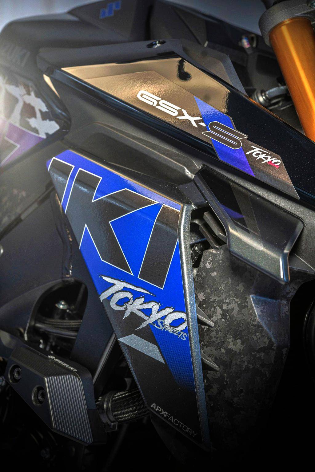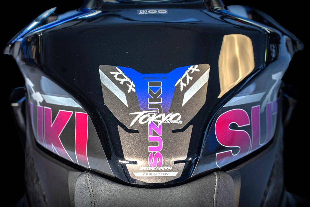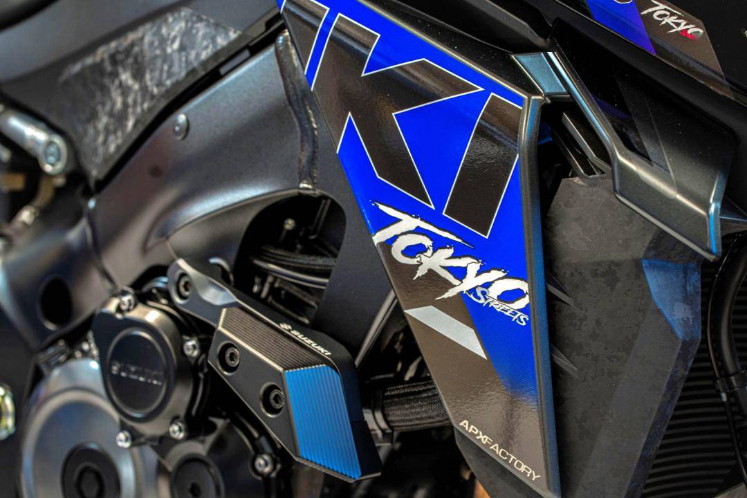 GSX-S1000 Tokyo “ 東京 ” 限量推出十五輛,采用了一個(gè)獨(dú)特的車(chē)體圖案,雙色設(shè)計(jì)、高級(jí)面料制成的鞍座,并標(biāo)配了防摔套件和 Yoshimura 吉村的 R11 消聲器。