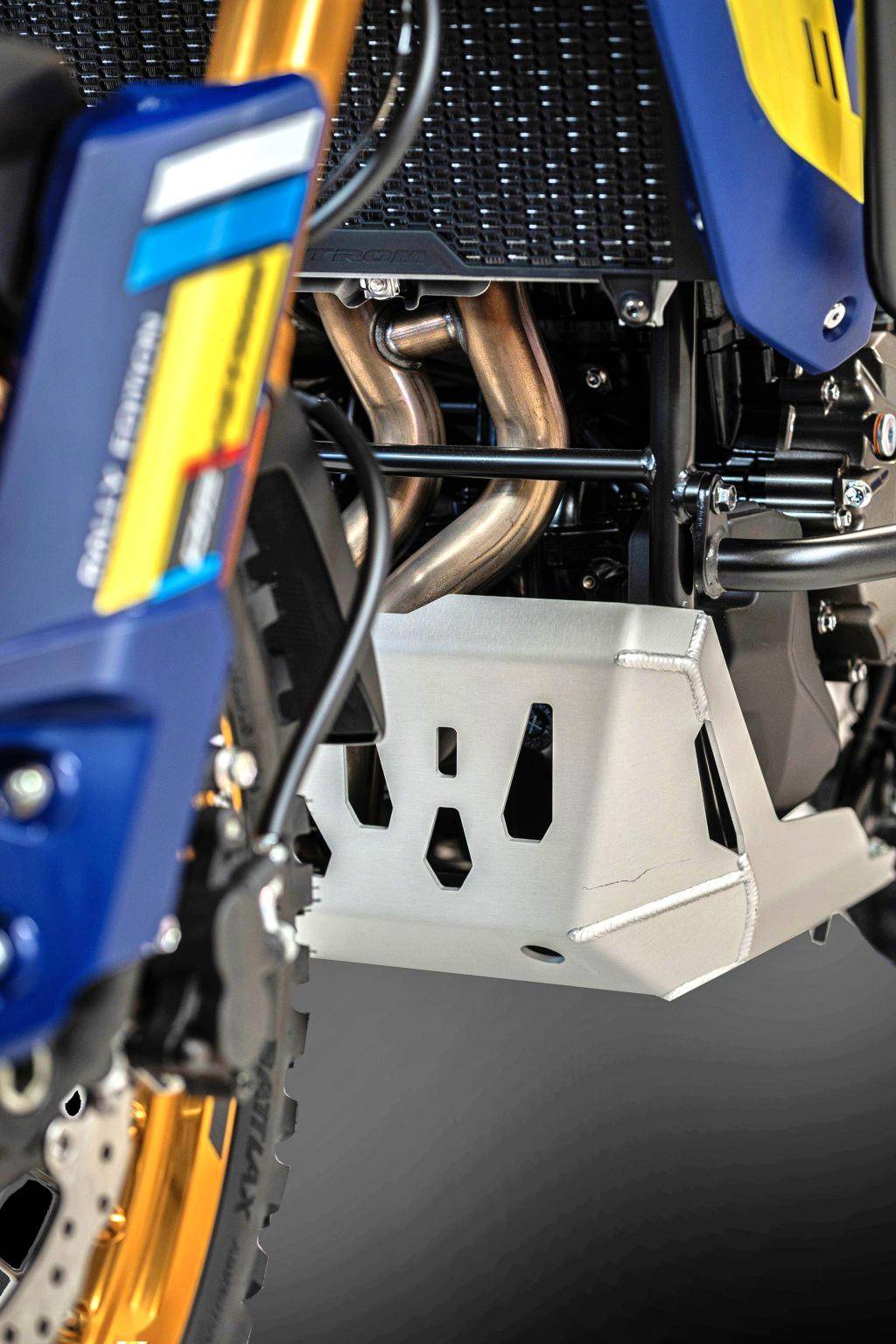 而面向奧地利市場(chǎng)的 DL800DE V-Strom Rally 拉力、限量推出十輛,與標(biāo)準(zhǔn)款相比,這個(gè)拉力版標(biāo)配了 Suzuki 原廠拉力風(fēng)格套件(套件包括更大的鋁合金制發(fā)動(dòng)機(jī)底部護(hù)罩、大風(fēng)擋等),拉力賽車(chē)風(fēng)格的車(chē)體圖案,越野性能更好的前后輪胎,容量為 50 公升的行李袋,防摔桿等。