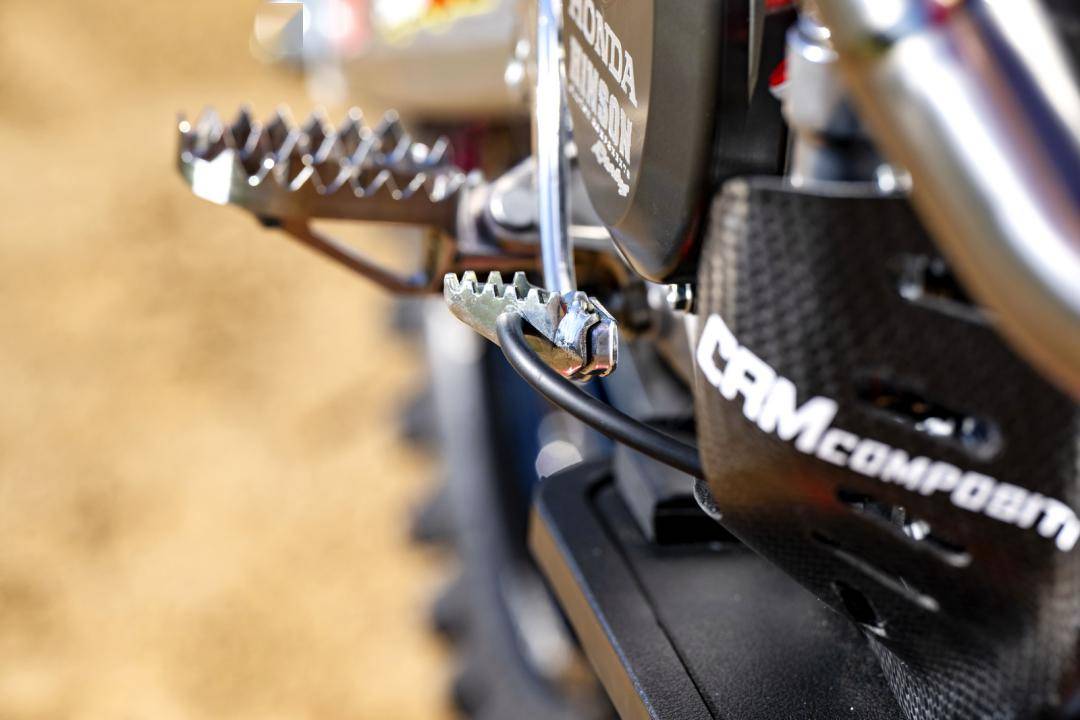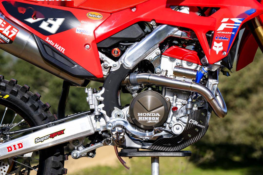 2024 規(guī)格的 CRF250RW 工廠賽車(chē),動(dòng)力單元經(jīng)過(guò) HRC 的全面升級(jí),換裝了 Hinson 的強(qiáng)化離合器,美國(guó)吉村(US Yoshimura)的排氣系統(tǒng)等。
