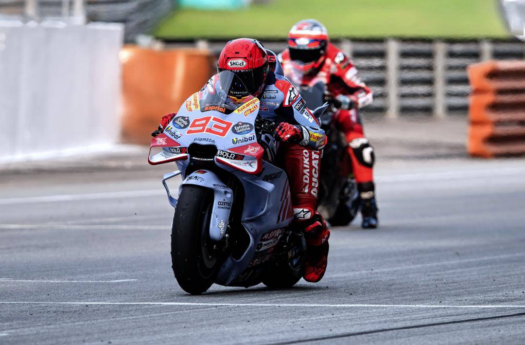 為期三天的測試?yán)?,小馬昆斯累計跑了 149 圈,而首次真正測試 Desmosedici GP23 賽車的馬昆斯則跑了更多的 173 圈,務(wù)求可以盡快適應(yīng)新賽車的特性。最終,小馬昆斯跑出了綜合第四快的 1 分 56.938 秒最佳圈速,與頭車 GP24 所跑出來的時間只相差 0.256 秒;而馬昆斯也跑出了綜合第六名的 1 分 57.27 秒最好圈速,展現(xiàn)出一個積極的競爭力。此外,兩位車手的最佳圈速,都打破了雪邦賽道去年時 1 分 57.491 秒的圈速紀(jì)錄。