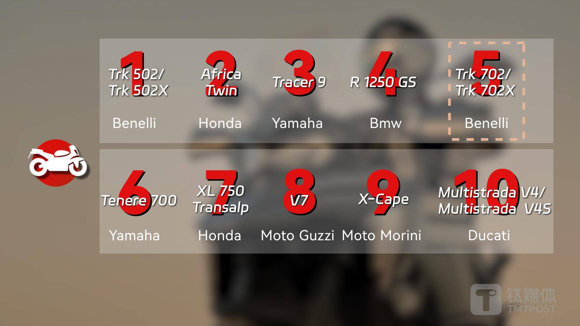 但是,錢(qián)江摩托證明了自己判斷的正確性。在世界機(jī)車(chē)文化圣地意大利,被錢(qián)江摩托收購(gòu)后的Benelli品牌,長(zhǎng)期穩(wěn)居銷(xiāo)量榜首,旗下TRK702車(chē)型更是在2023年僅用短短5個(gè)月時(shí)間便躋身意大利單一車(chē)型總銷(xiāo)量前五名。