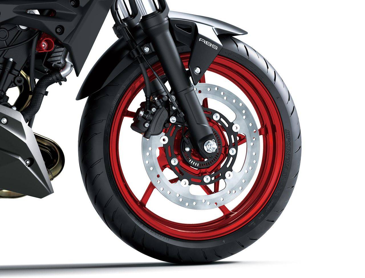 懸掛、剎車也維持先前Z400時(shí)期的規(guī)格,前懸掛為41mm正立式前叉,行程120mm,后懸掛為預(yù)載可調(diào)的多連桿中置單槍后避震,行程130mm; 前剎車為310mm半浮動(dòng)碟、雙活塞卡鉗,后剎車為220mm單碟配單活塞卡鉗; 座高同樣維持785mm,車重則為168公斤。