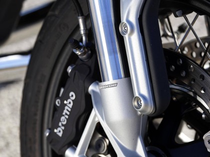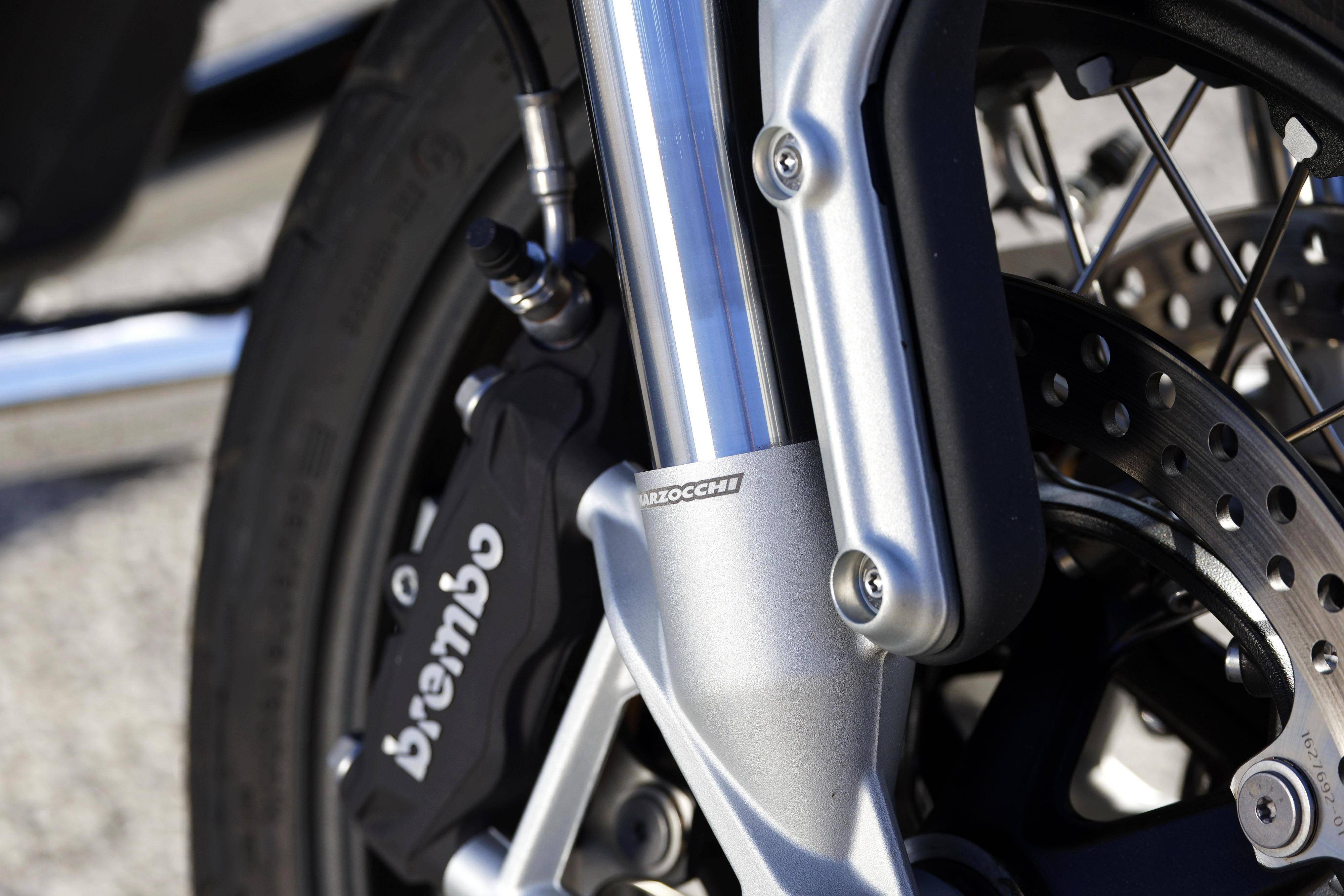 車體方面,采用一副經過重新設計的一體式鋼管制車架(現(xiàn)行的 2023 R nineT 紀念版采用了兩件式設計的車架),兩個版本均采用了倒立式前叉;新設計的圓形指針式儀表板(模擬式儀表板),R 12 nineT 標配了兩個式(一個是速度計、一個是轉速計),R 12 的標配是單個式(一個速度計),可選裝數字式儀表板;LED 的燈光系統(tǒng),并有大量出廠前可選裝的配件供選購。
