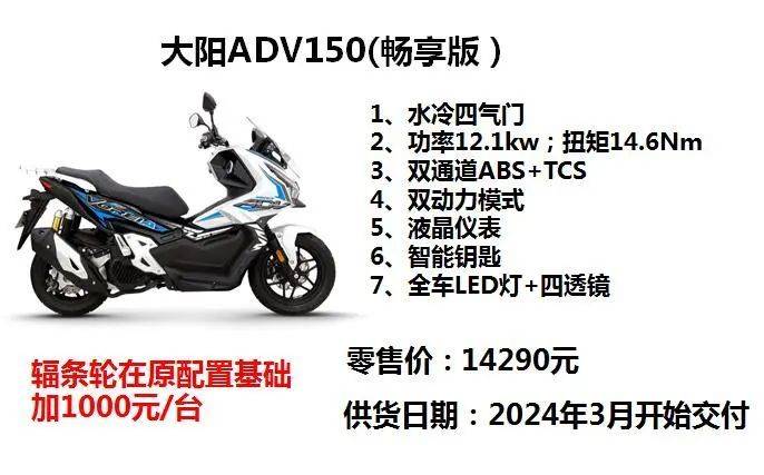 大陽ADV150由之前的6個(gè)版本精簡(jiǎn)為以下3個(gè),價(jià)格也迎來大幅的價(jià)格下調(diào)。經(jīng)典版13790元起,而之前為15990元,加TCS的暢想版只加價(jià)500,而之前為17990元;尊享版15990元,而之前高達(dá)2萬元。