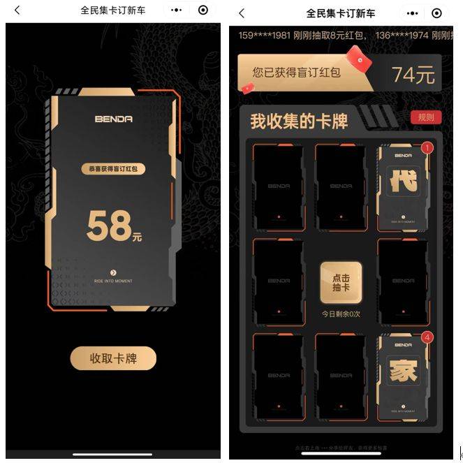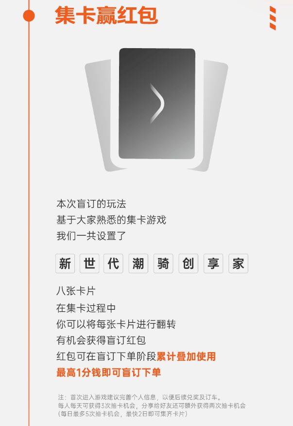 首先是集卡贏紅包,最高可得188元紅包,即集滿8張卡,相當于188-188=0元盲訂,您只要付1分錢也可以盲訂。