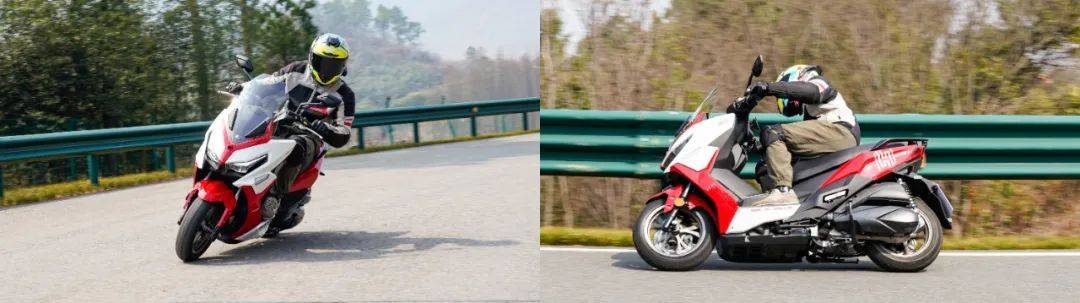 講到H150的彎道性能方面,首當(dāng)其沖的這幅雙下骨式車架,車架的剛性穩(wěn)定性表現(xiàn)足夠出色,長軸距的車身在彎道中也更加穩(wěn)定。在春風(fēng)十里全程高速彎,掉頭彎,S型回轉(zhuǎn)彎中,左右快速傾倒、翻身干脆凌厲,都毫無拖泥帶水的感覺。入彎前調(diào)整速度,重剎感覺很不錯,制動水準(zhǔn)一如既往的出色同時H150的避震器設(shè)定的更偏向運動化,支撐性良好,彎中的極限非常高,與主打性能的彎道150不相上下,左右滿胎大傾角過彎,都不會碰到大撐或排氣管;而且還有比彎道150更好的地方,就是這套原廠瑪吉斯輪胎的抓地性,即使在初春空氣溫度12度左右的狀態(tài)下,依然穩(wěn)穩(wěn)的抓住地面,表現(xiàn)出色,殺彎的信心十足,這是相當(dāng)出色的表現(xiàn)。當(dāng)然,在較為極限的測試中,H150同樣出現(xiàn)一個不足點,在我們大直線加速后,時速95km/h左右重剎入彎調(diào)整姿態(tài),明顯會感受到剎車力有些疲軟,入彎的速度不能及時降到位,高速入彎的信心略有不足。解決的辦法也很簡單:別那么快殺彎,安全第一嘛!這就是一款150踏板,不是仿賽或街車,就別難為它了,當(dāng)然更換規(guī)格高更的剎車片應(yīng)該會有改善。一般的中高速跑山、走街,這臺原廠的制動水平,表現(xiàn)已經(jīng)足夠好了。