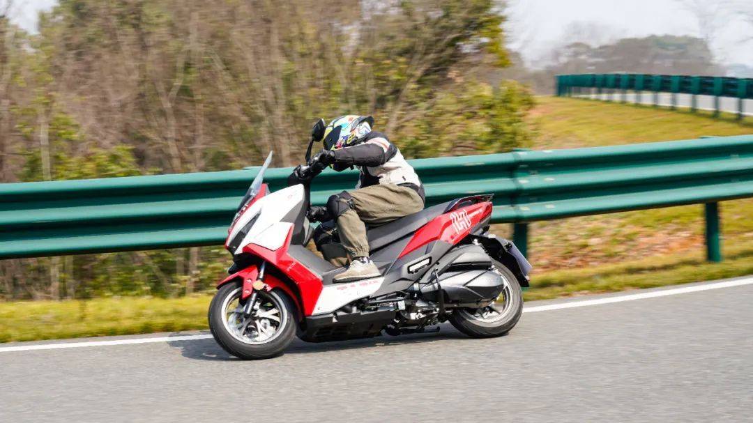出發(fā)前加滿燃油,經(jīng)過我們拉極速測試、高速跑山、城區(qū)騎行,累計測評里程130km,重新加滿燃油,共消耗4.07L汽油,換算得出測評油耗為3.1L/100km,與我們之前測評過的RACING X150油耗基本一致,日常油耗應(yīng)該在2.8-3.1之間,這個油耗在眾多150踏板中略為偏高,畢竟四氣門的發(fā)動機,動力更強了。結(jié)合原廠10.7L的油箱,可以保證350km的最大續(xù)航。(注:本次試駕車為高配版的工程車,儀表為TFT表,與目前市售版不同)