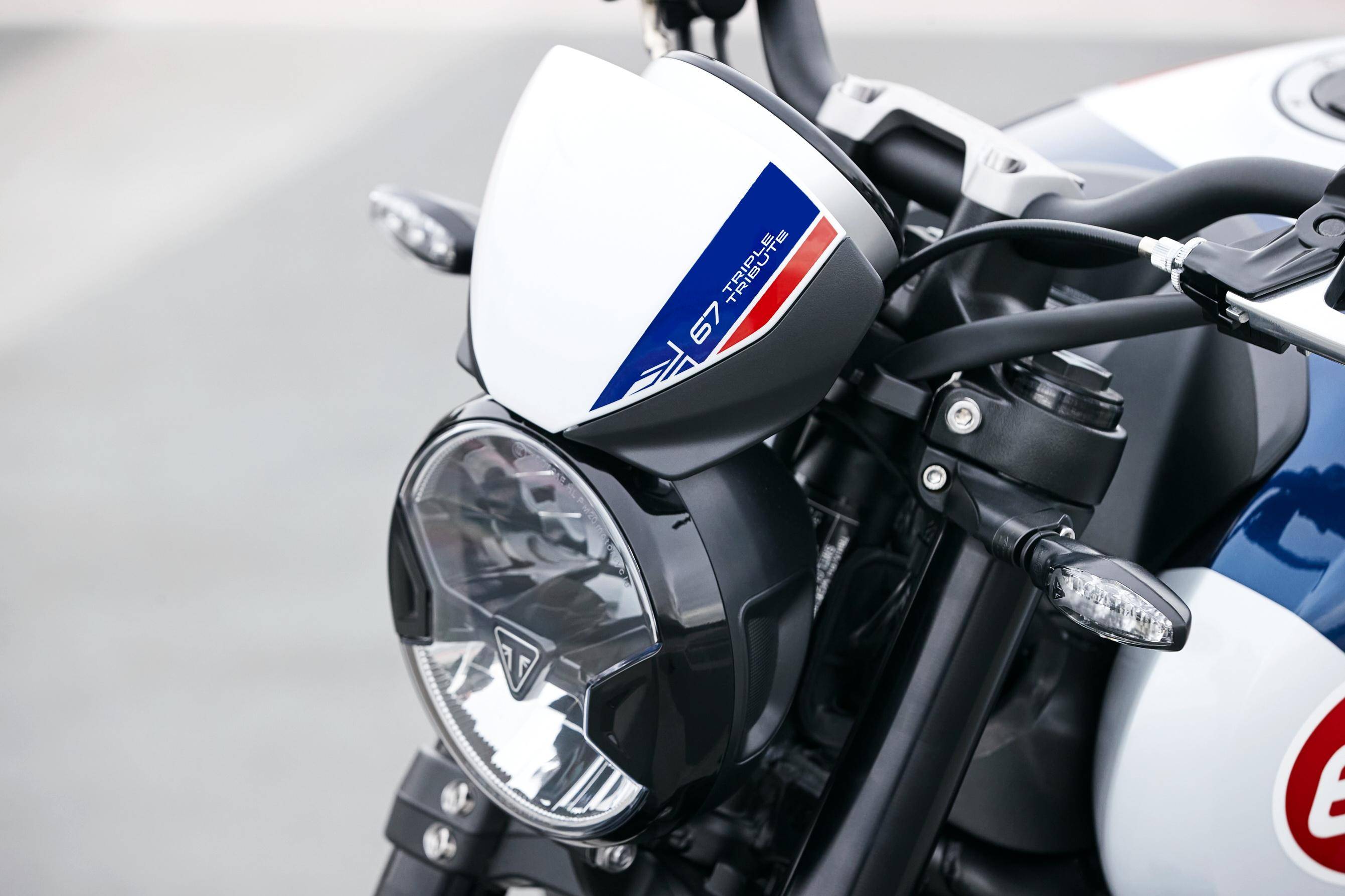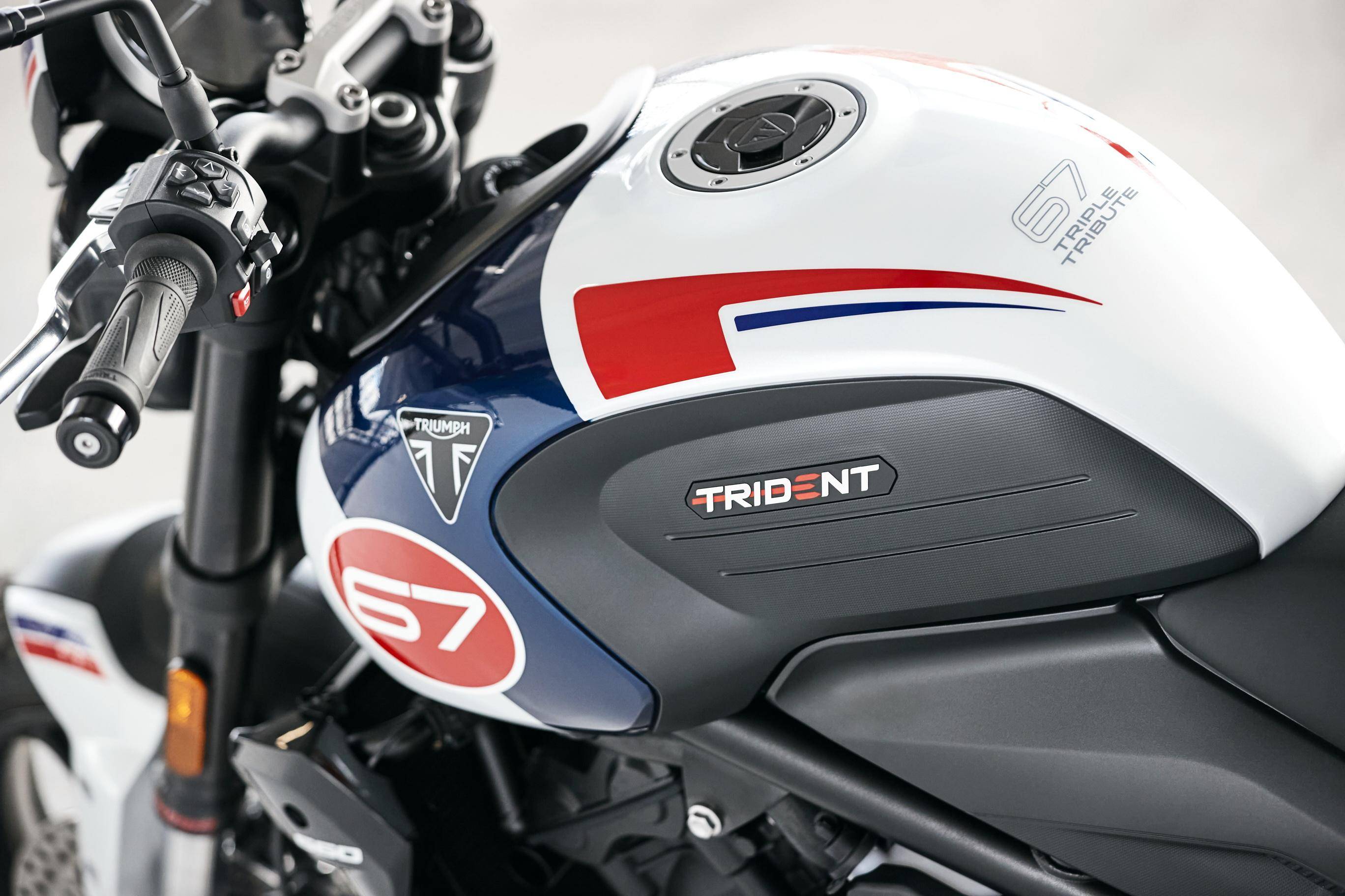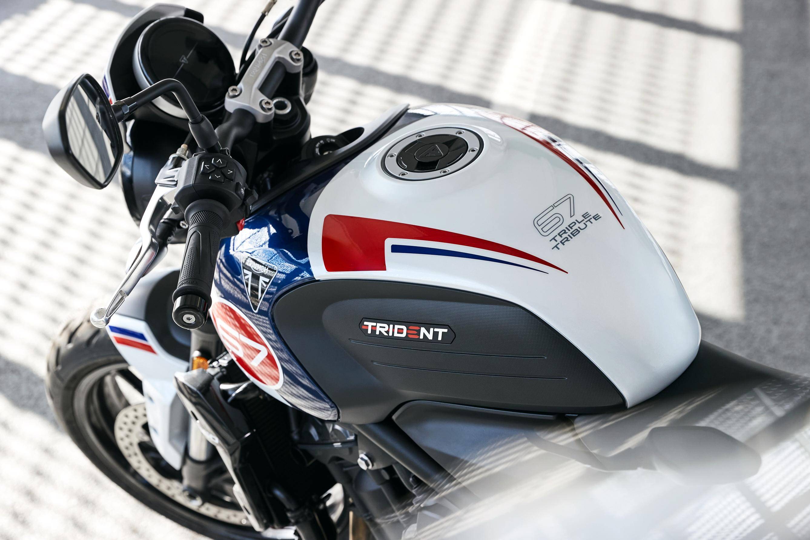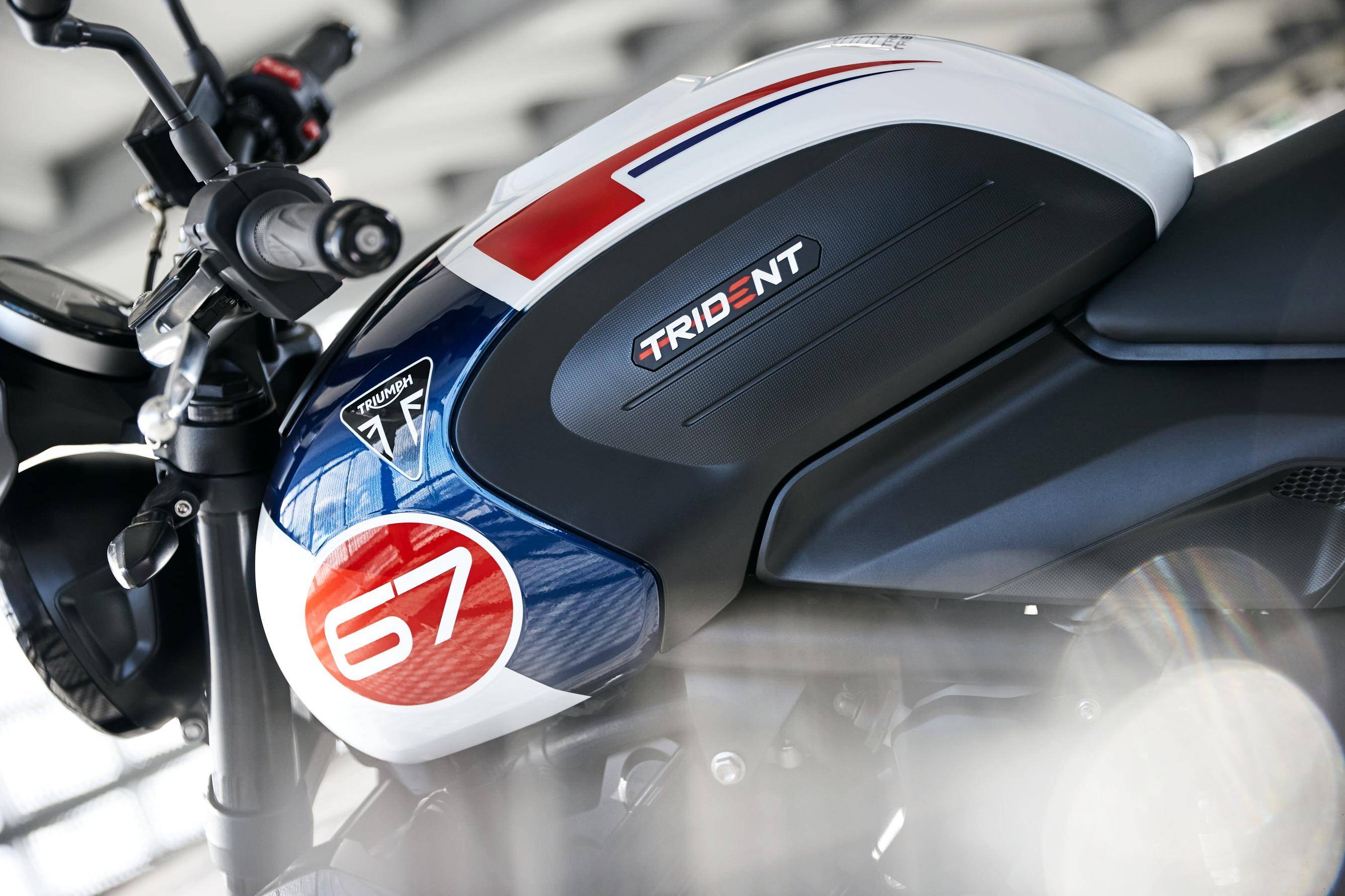 與標準款相比,2024 Trident 660 特別版采用了獨特的車體圖案,儀表板前面加裝了小風擋,車身多處有著獨特的標志。