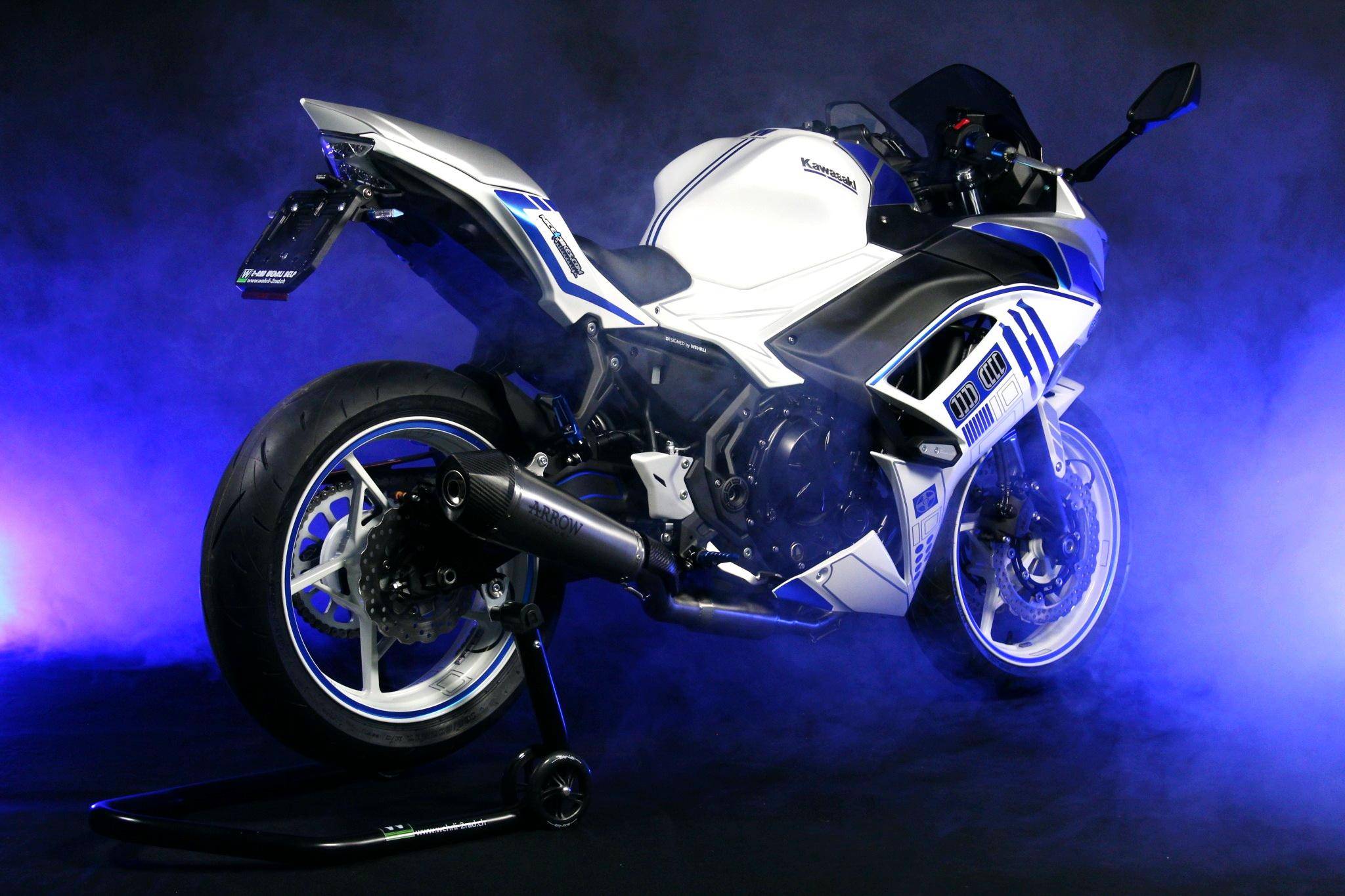 下面的圖片,包括了 2-Rad Wehrli 公司名為 Z900 Joker、Z900 Spiderman “ 蜘蛛俠 ”、Z900 Venom “ 毒液 ”、Z900 Z-Twenty Edition “ Z 二十版 ”、Z900 Smaragd Edition “ 祖母綠版 ”、全身紫色的 Z900 Aladin “ 阿拉丁 ”、白色底藍(lán)色線條的 Ninja 650 R2D2 等,多個(gè)不同風(fēng)格的設(shè)計(jì)。