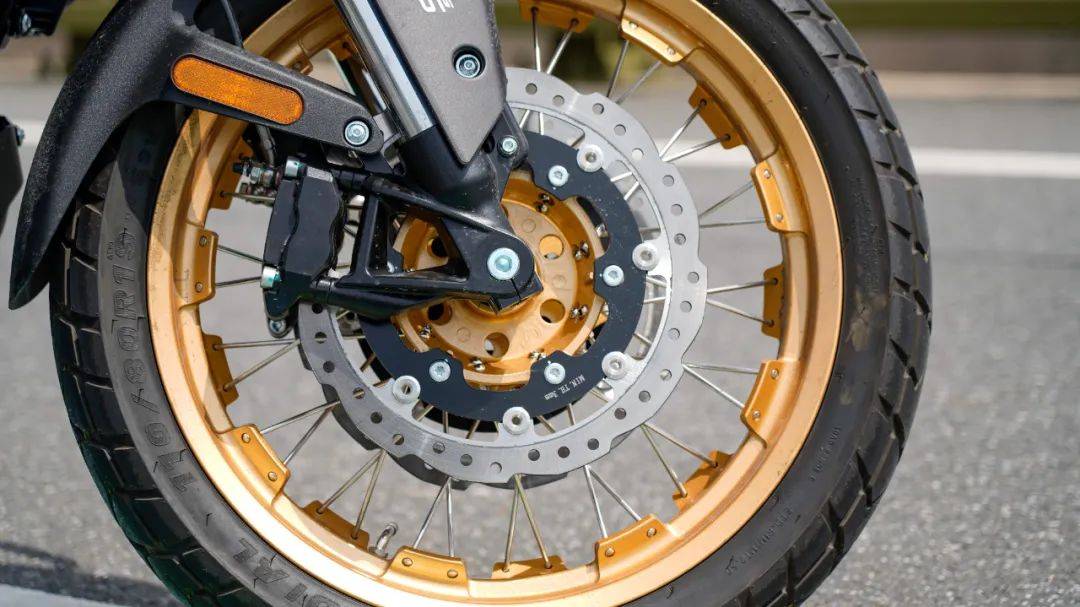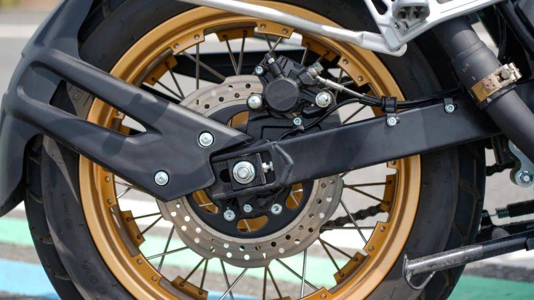 針對越野能力的強化,RX600采用了前110/80-R19后150/70-R17的多功能龜背胎,搭配鋁合金輻條式真空胎,使得整車的離地間隙來到了180mm,高位排氣的設(shè)計,大大提高了通過性,發(fā)動機底護板以及側(cè)護板的加持讓整車抗沖擊性能進一步提高,同時可關(guān)閉的TC以及單獨可關(guān)閉的前后輪ABS,可以看出RX600兼顧輕度越野性能,確保騎士在野地玩的開心。針對越野路面的適配,前后避震器的設(shè)定也是用心十足,前28檔回彈阻尼可調(diào),后15檔回彈阻尼可調(diào),可以根據(jù)自身要求進行調(diào)整,基本上能想到的細節(jié),RX600都配齊了,好評。剎車配置也是超越同級,前對向四活塞徑向卡鉗配合320mm浮動剎車盤,后剎車是單活塞配合260mm剎車盤,雖然沒有標(biāo)注品牌,但硬件配置非常不錯,實測制動成績也良好以上,同時ABS+TC雙重保證,安全性上無需多慮。值得一提的是RX600上這套風(fēng)擋,支持手動2檔可調(diào)節(jié),在我們動態(tài)測試高速狀態(tài)下,將氣流隔絕在頭盔面罩部位,風(fēng)阻保護效果到位。