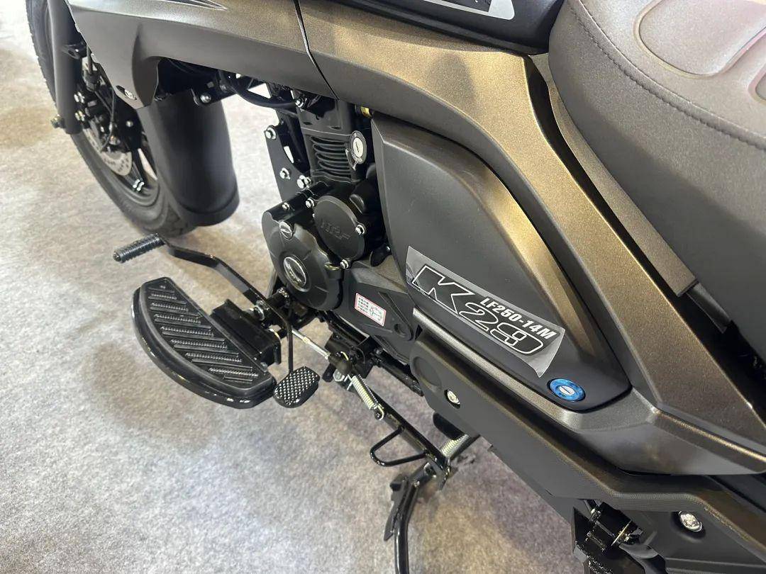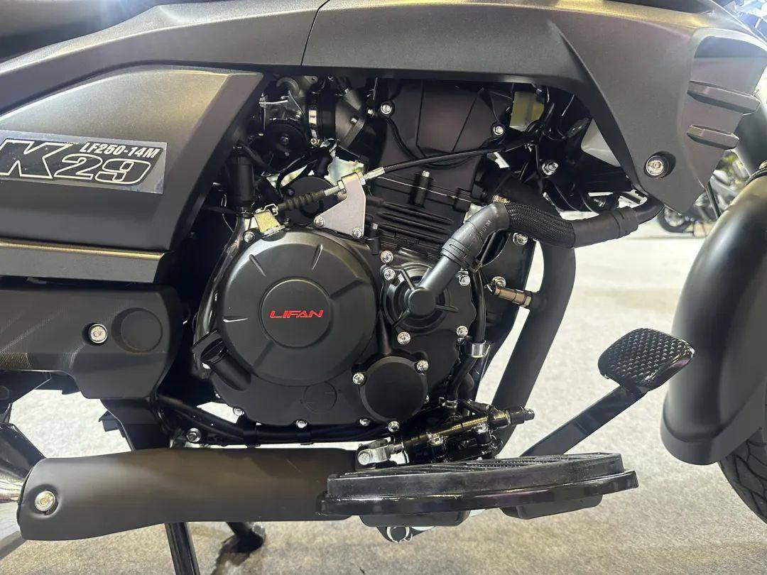 發(fā)動(dòng)機(jī)代號(hào)NRF250,參數(shù)20.5kW,23.5N·m,車身線條沒有前面幾款那么浮夸了,收斂了不少,但是感覺前后風(fēng)格有點(diǎn)不同,前面圓潤(rùn)的元素比較多,像復(fù)古圓燈、水滴油箱、兩側(cè)的風(fēng)道。尾部凌厲的線條比較多,尾燈、拍照架。儀表是機(jī)械+液晶的組合儀表,LED大燈造型也不錯(cuò)。K29配了前后ABS、皮帶傳動(dòng)、變徑手把等。