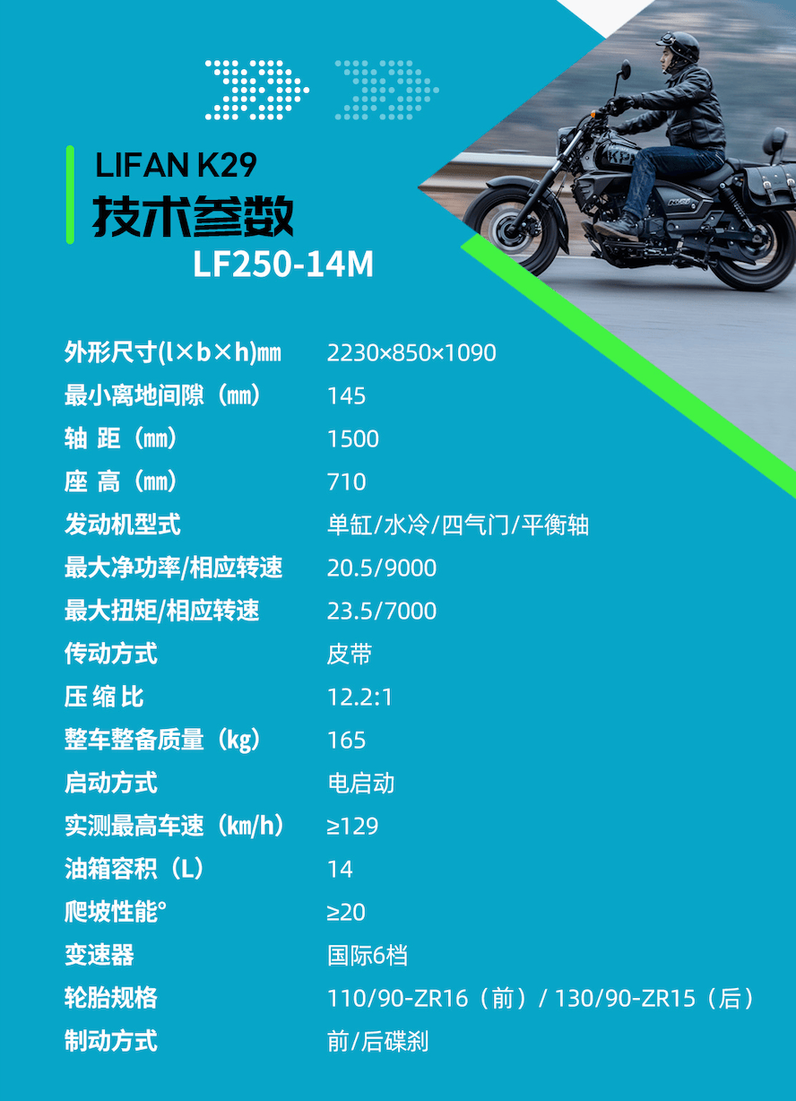 核心提示:力帆K系列終于有新成員了,4月11日力帆發(fā)布了在K19基礎(chǔ)上改進(jìn)的K29,售價(jià)定在13980元。還是巡航風(fēng)格,K29的軸距1500mm,座高710m