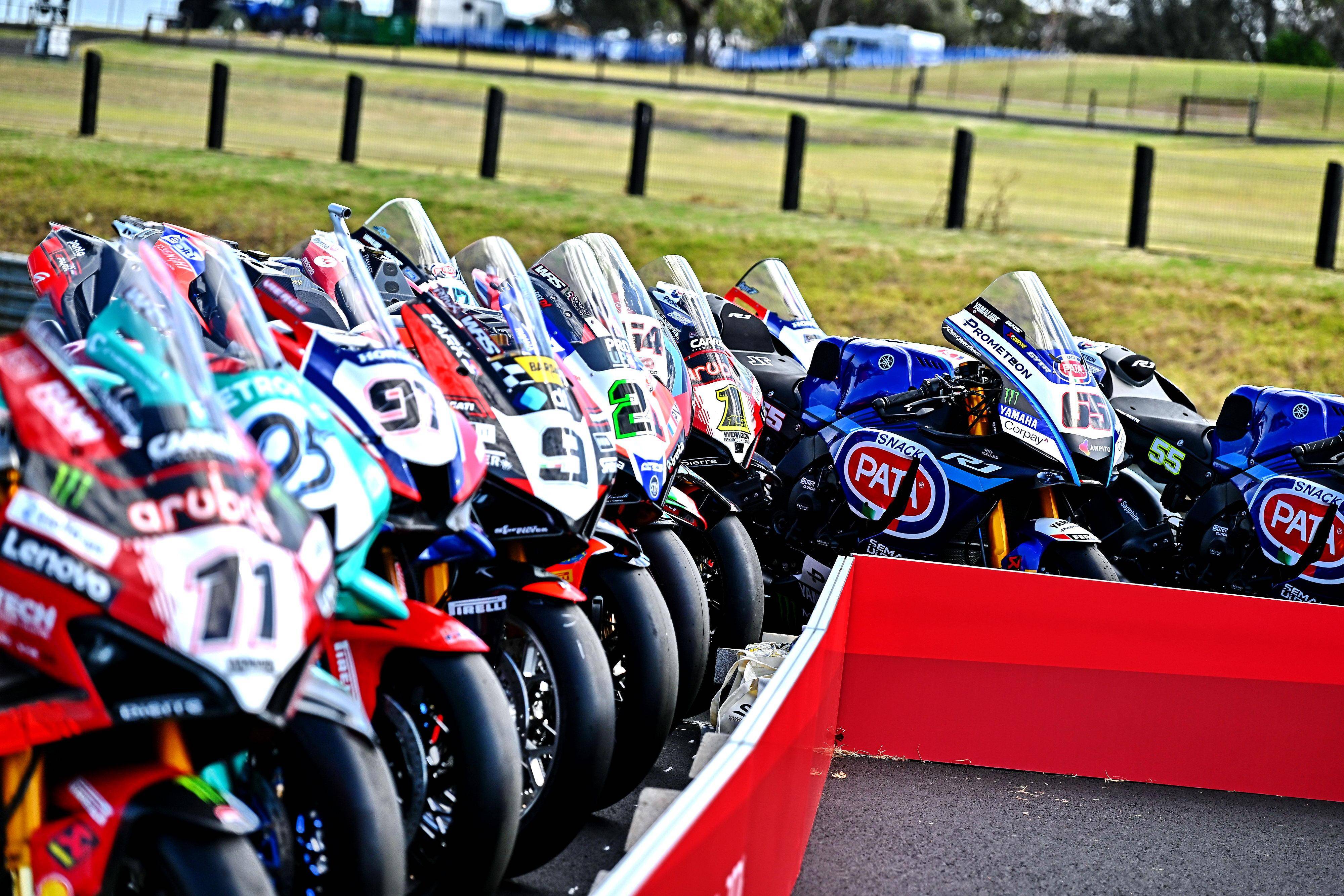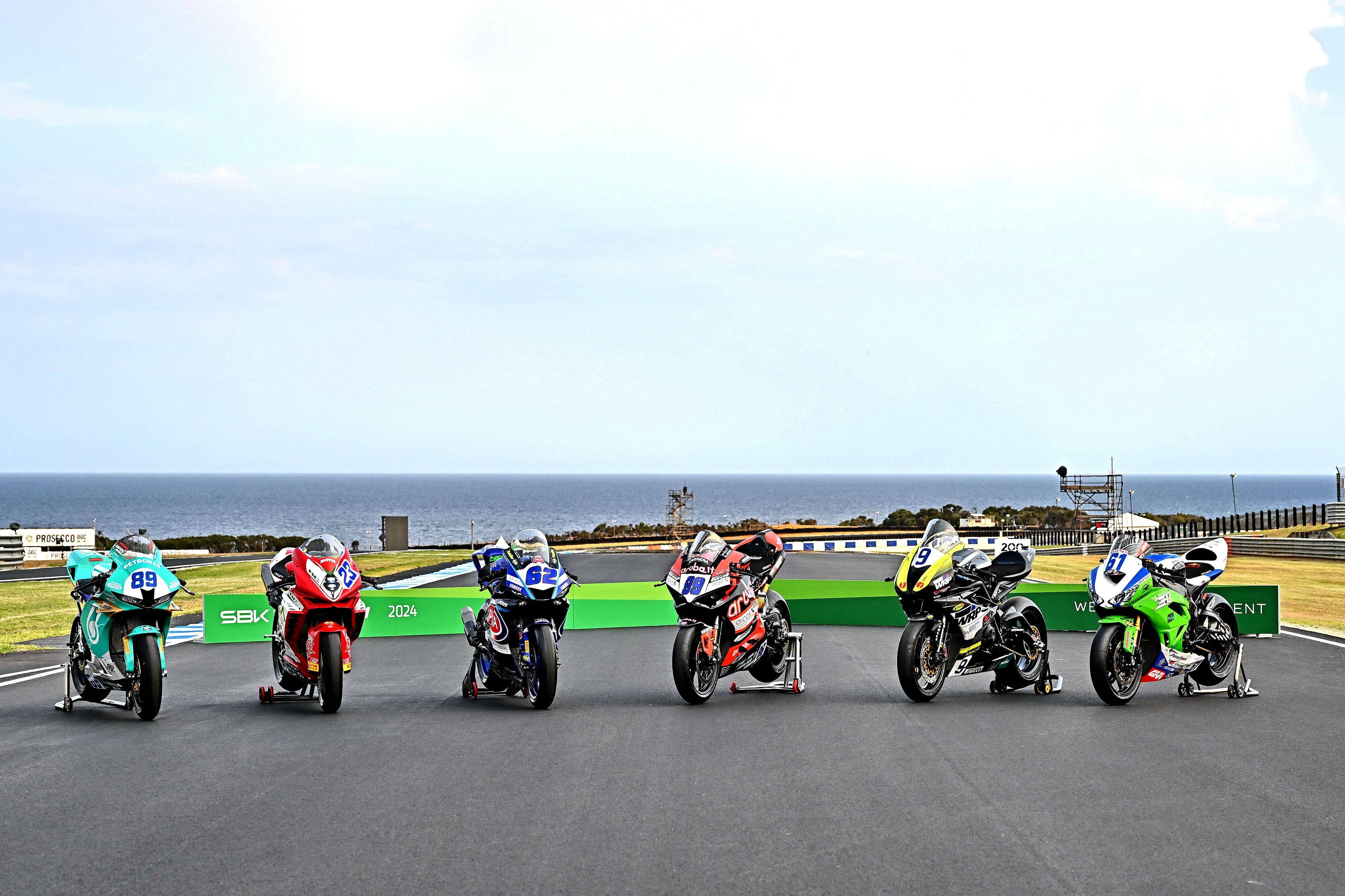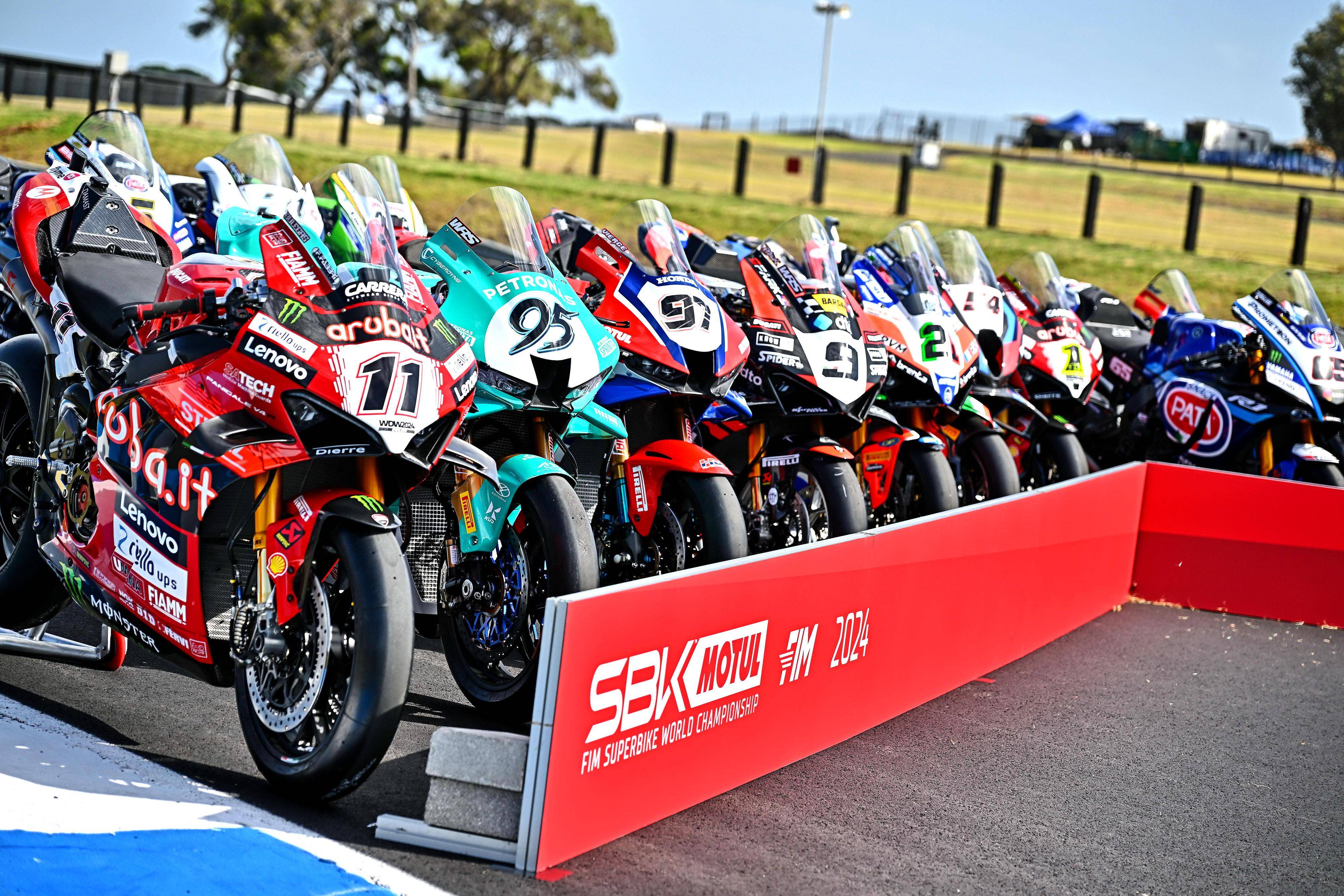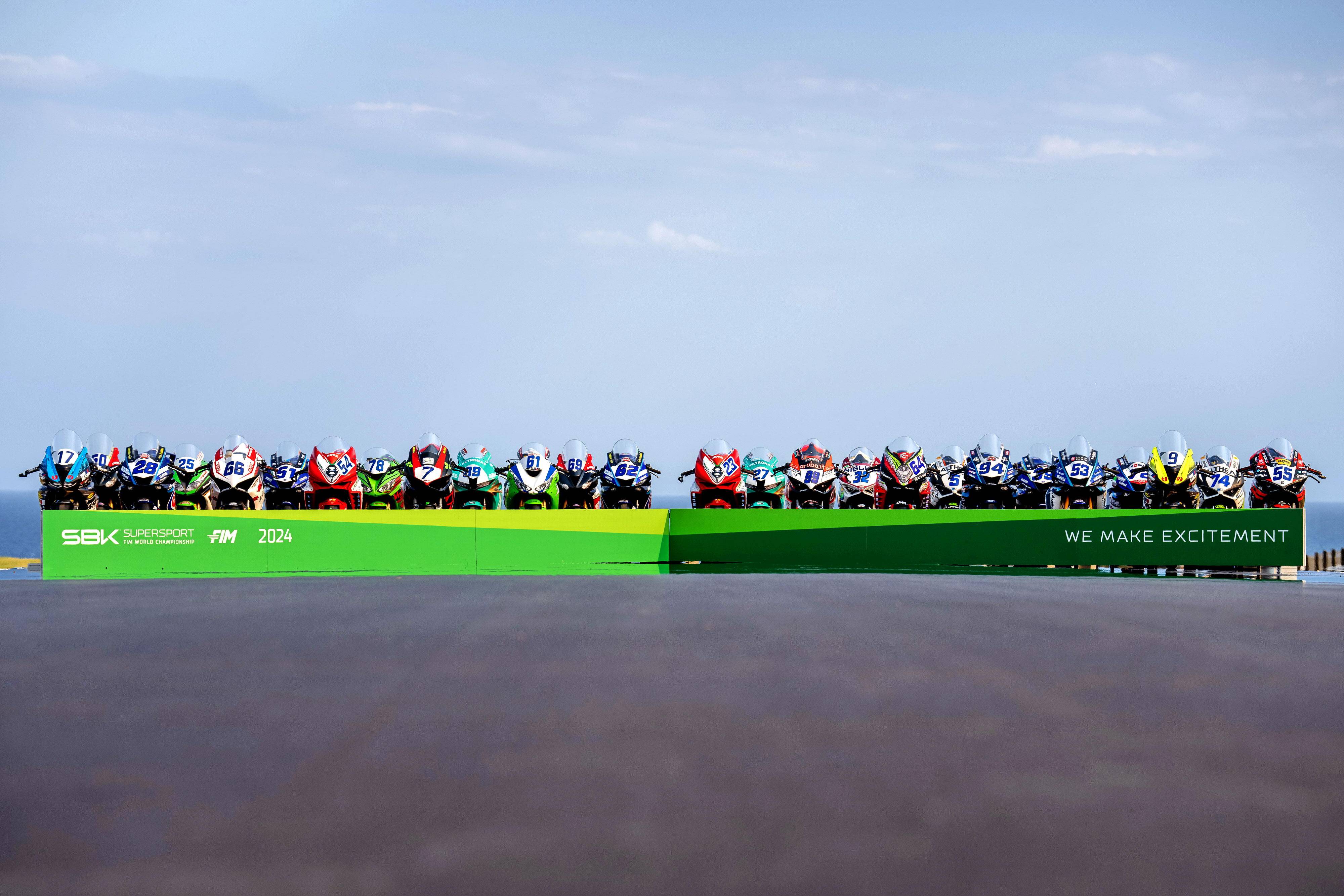 下面的圖片,WorldSBK 2024 賽季里、三個競賽級別的賽車(資料圖片)。
