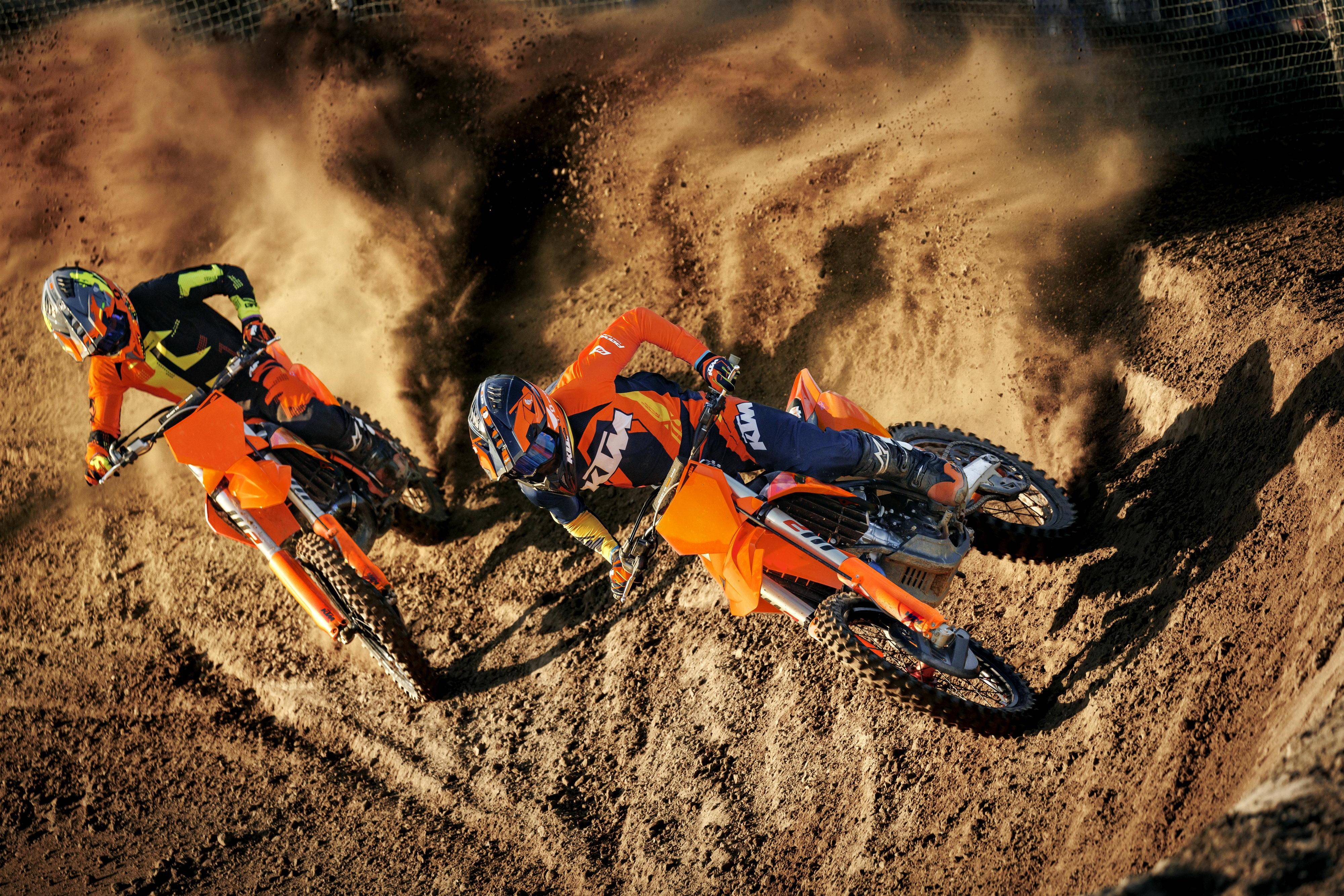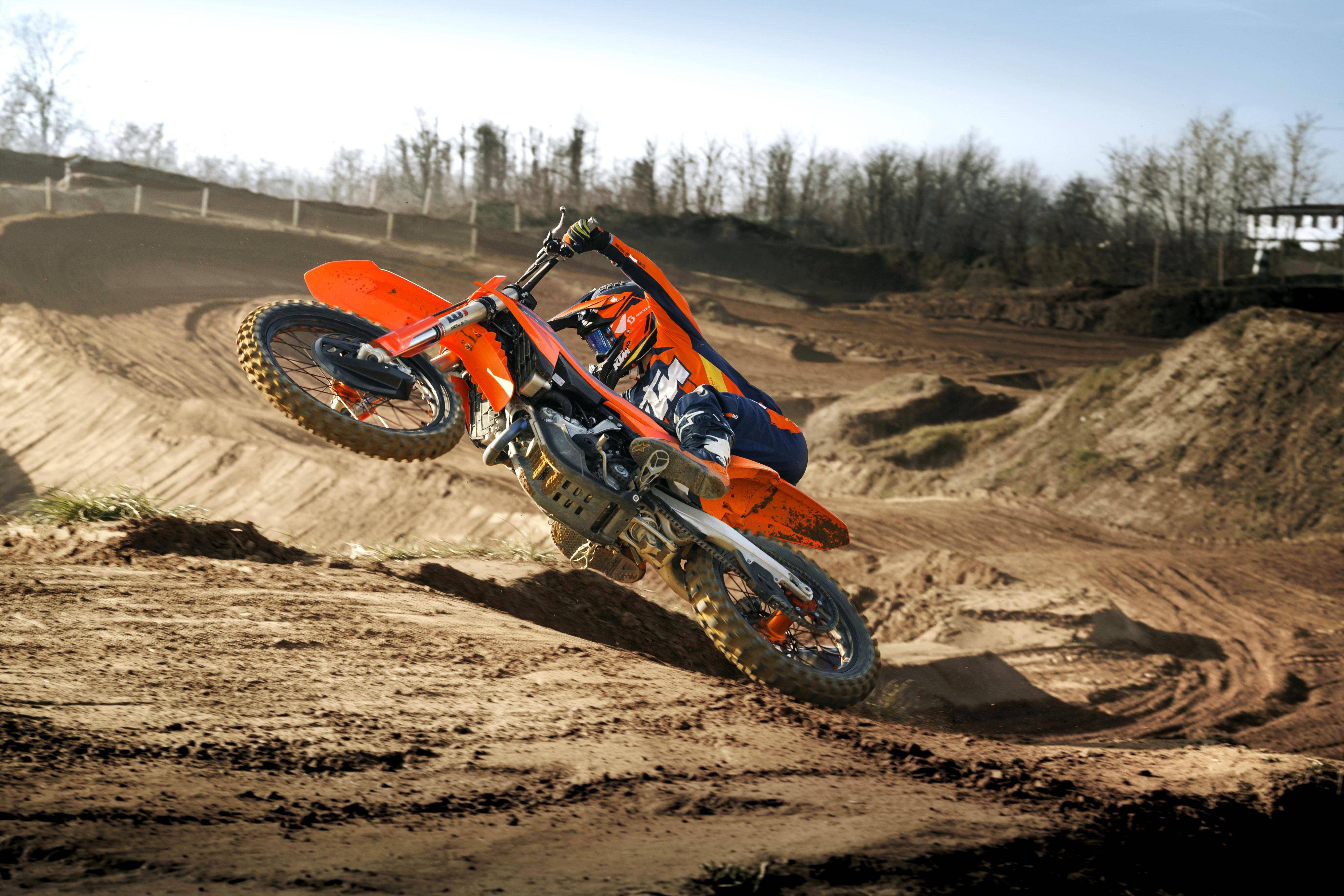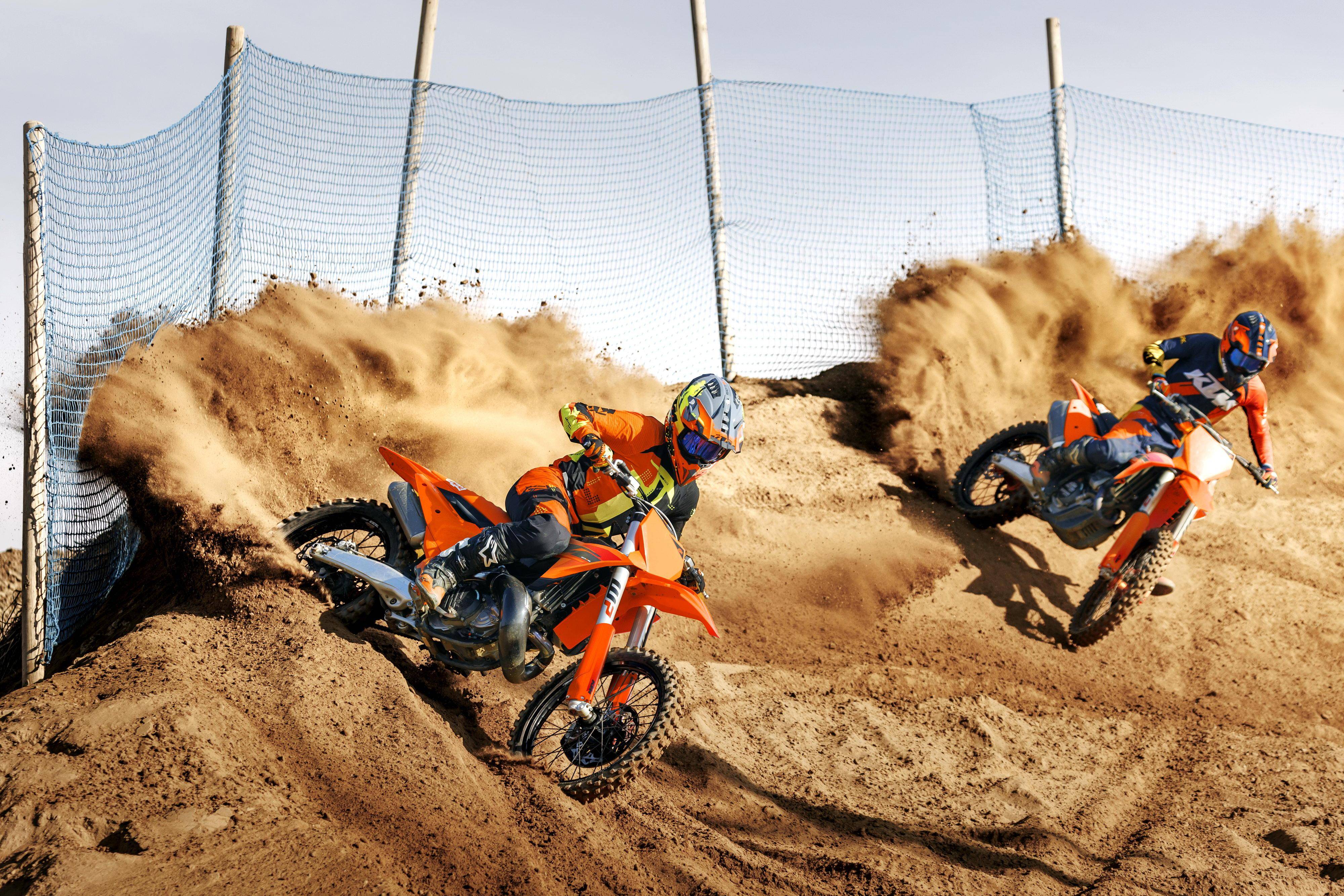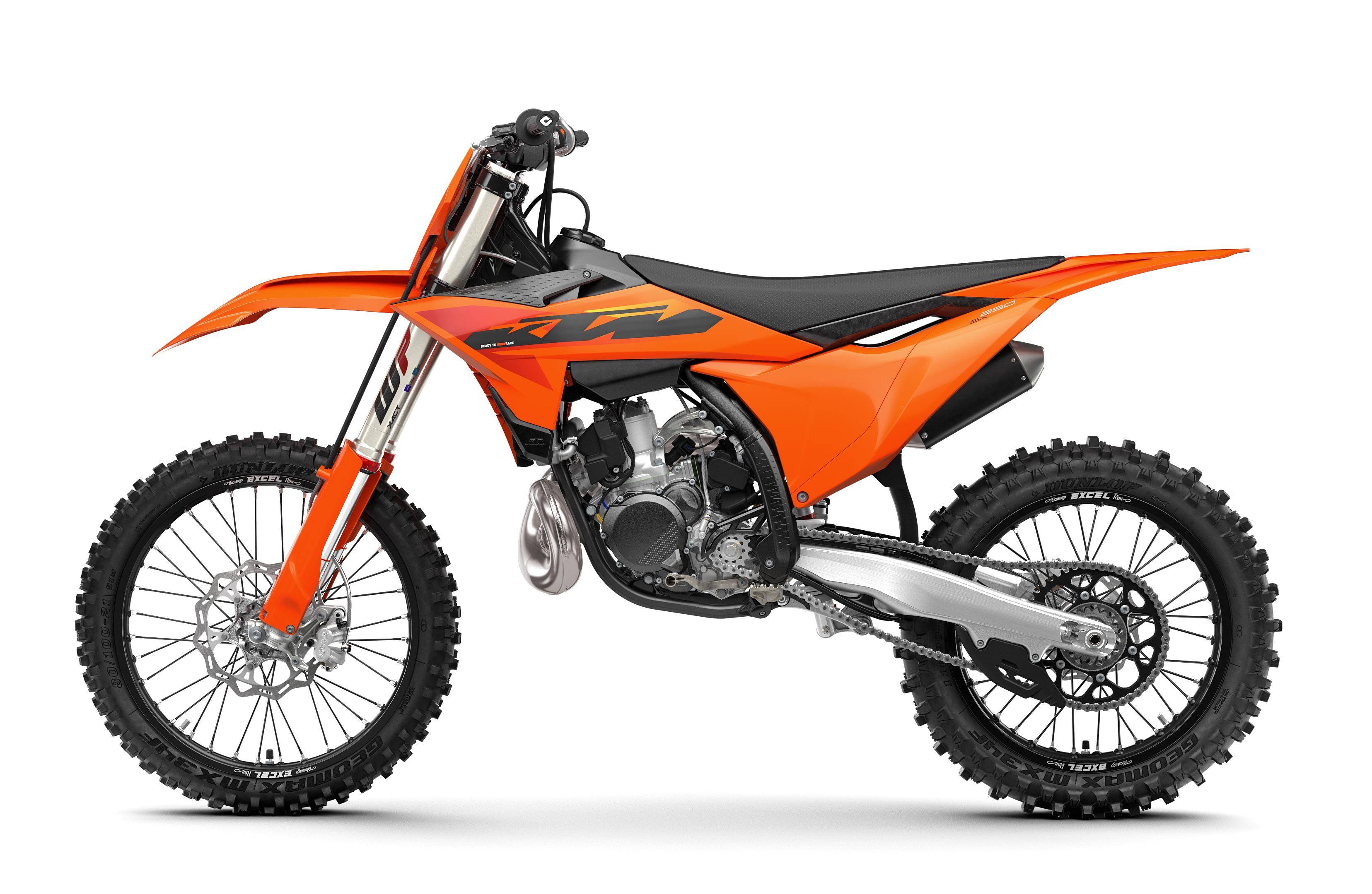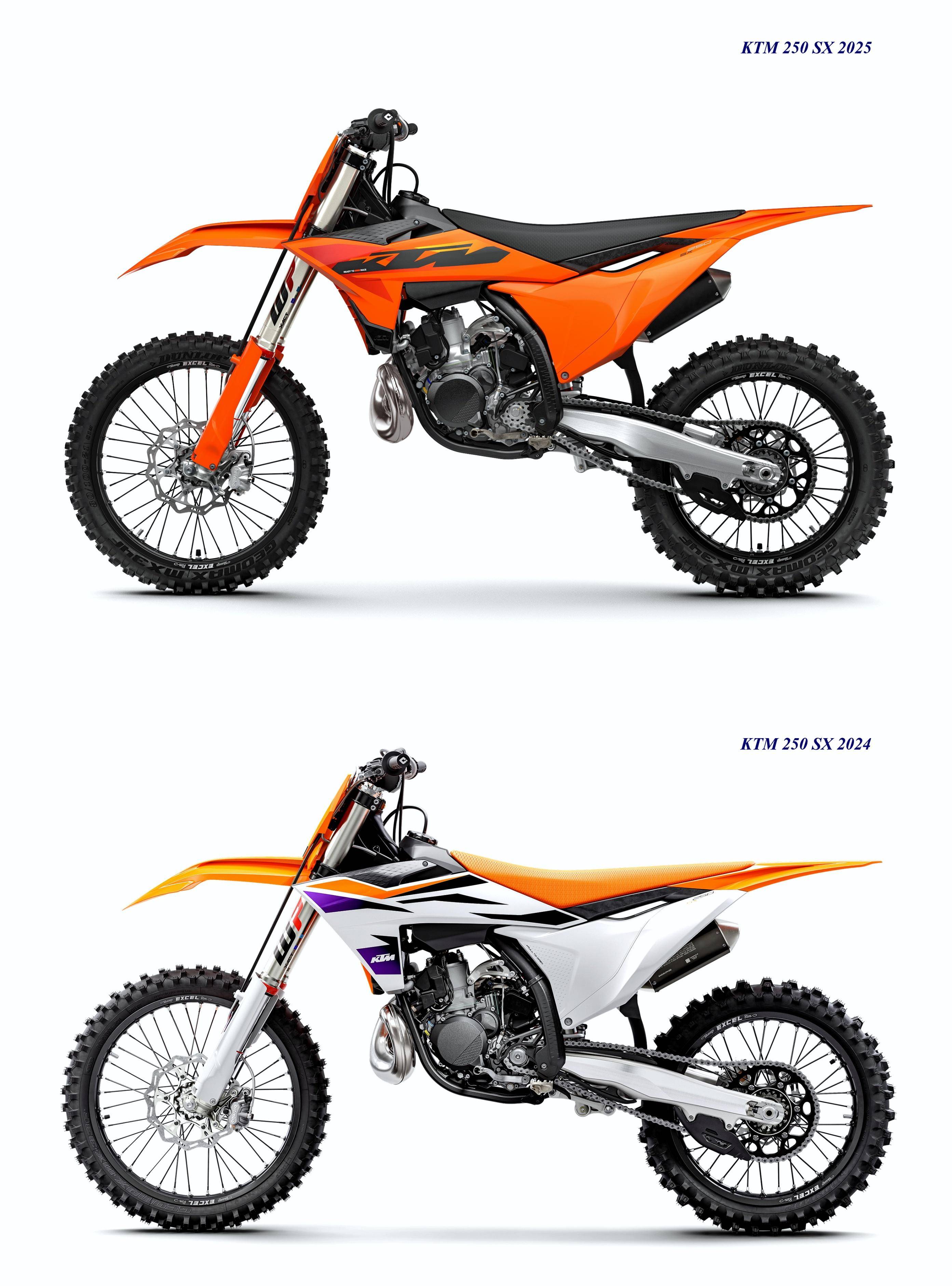 下圖:搭載兩沖程發(fā)動機(jī)的 KTM 2025 SX 系列。