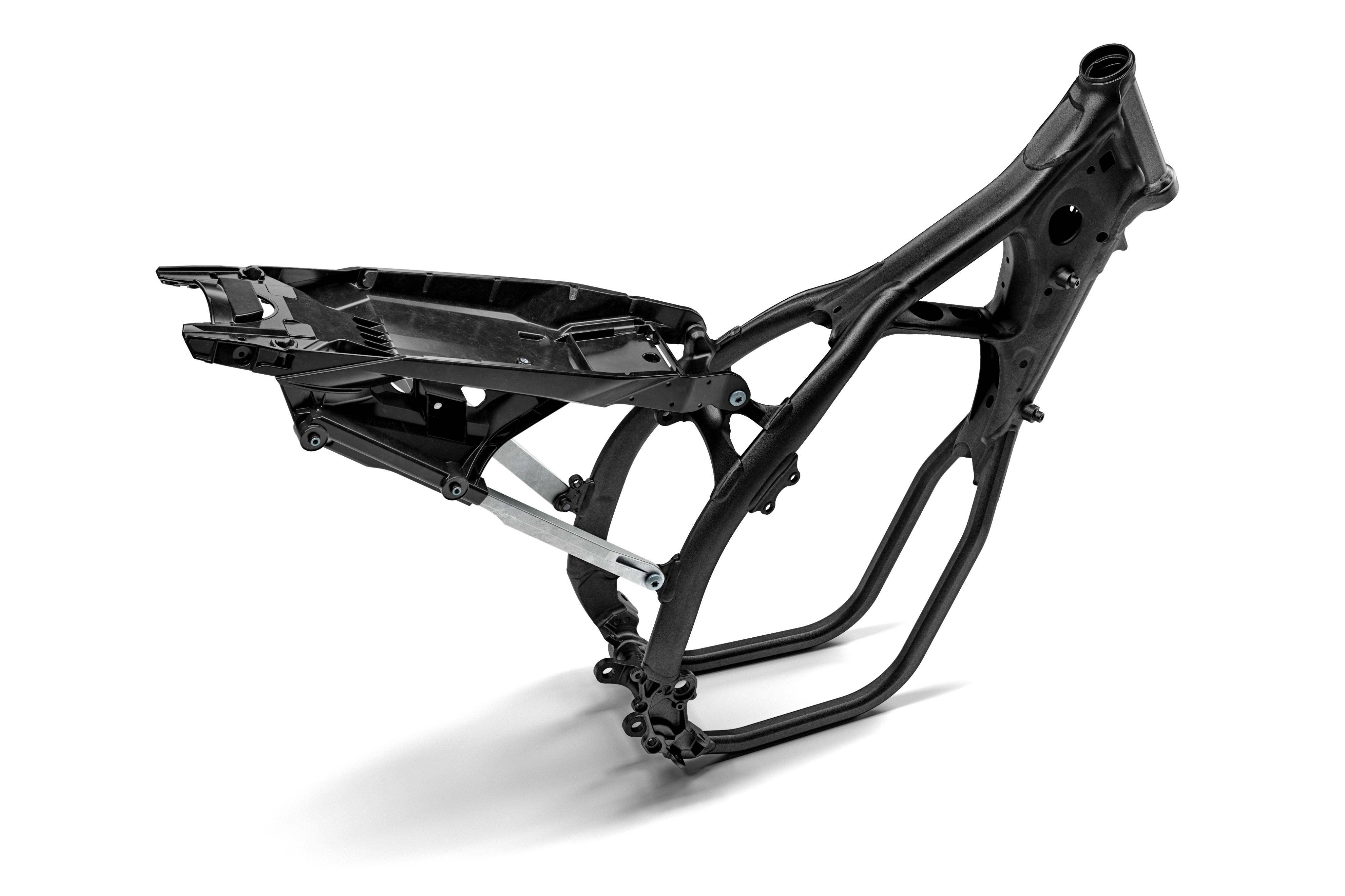 1、經(jīng)過升級的車架。車架的前部、連接發(fā)動機(jī)的支架、后減震連接支架區(qū)域的周圍,連接位置和車架壁的厚度有著明顯的變化。這些變化都是經(jīng)過專門設(shè)計的結(jié)果,通過改善車架/底盤的彎曲特性,在保持整體穩(wěn)定性的同時、能夠進(jìn)步提高轉(zhuǎn)向性能,同時也比現(xiàn)行的車架、降低了大約 300 克的重量;