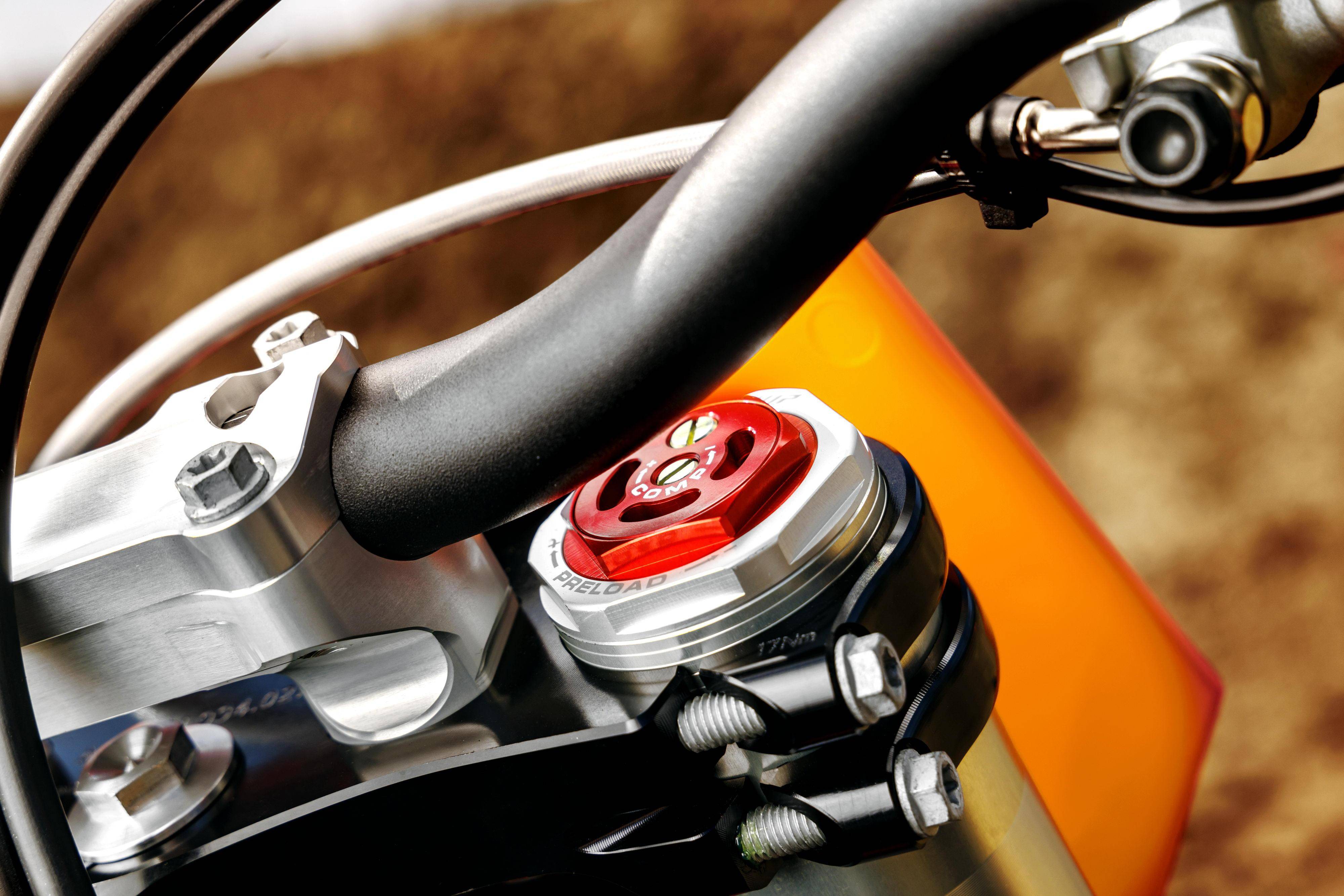 4、由 WP 配套的懸掛系統(tǒng),后減震采用了新的、采用了新密封組件和較小口徑螺栓的聯(lián)接結(jié)構(gòu),這一設(shè)計來源于 KTM 工廠車隊的經(jīng)驗并經(jīng)過優(yōu)化,好處是降低了組件的重量以及更好的硬度。隨著后減震發(fā)生的變化,WP 的 XACT AER 倒立式前叉也相應(yīng)地經(jīng)過重新設(shè)置;