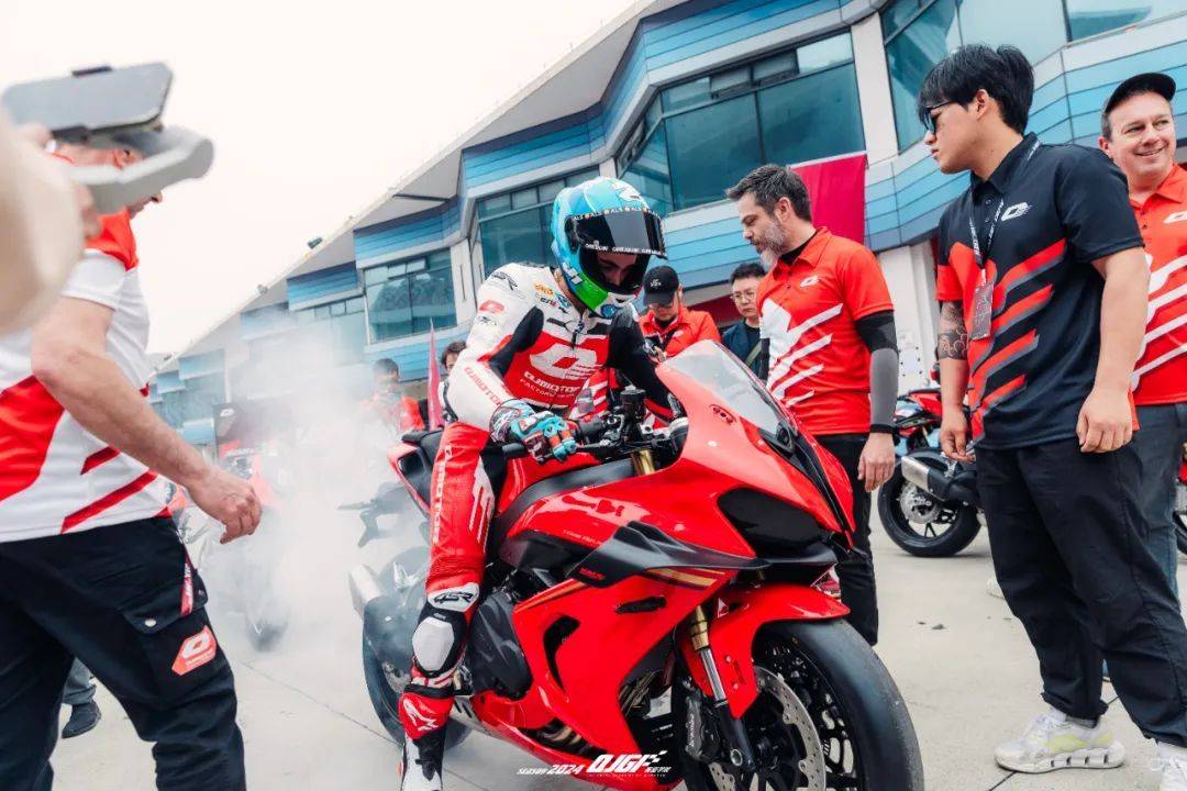 4月27日,QJ把WSBK車隊(duì)請(qǐng)到了中國(guó)寧波,廠隊(duì)車手拉斐爾.德羅薩更是在寧波賽道,與中國(guó)的賽車愛好者、賽車教練等親密接觸,并共同下賽道,來了一場(chǎng)表演賽。