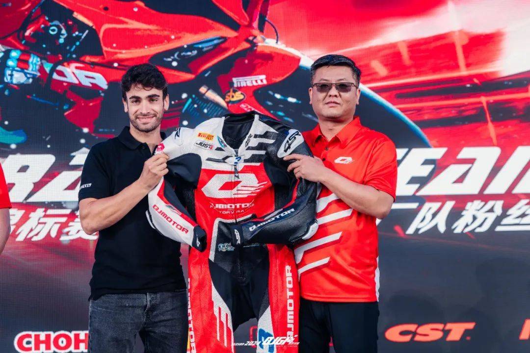 QJMOTOR WSBK廠隊(duì)車手:拉斐爾.德羅薩,1987年出生于意大利,2009年晉級(jí)至250cc級(jí)別并成功2次登上領(lǐng)獎(jiǎng)臺(tái),之后在Moto2組拼搏。2012年轉(zhuǎn)戰(zhàn)WSBK,在寶馬廠隊(duì)加入Super Stock 1000組別,2013年拿下年度總冠軍,此后一共參加了140場(chǎng)比賽,19次登上領(lǐng)獎(jiǎng)臺(tái),1次分站冠軍,是一個(gè)具有豐富經(jīng)驗(yàn)的賽場(chǎng)老將,可以為賽800的后續(xù)提升提供更多寶貴意見。在QJGP賽道學(xué)院暨WSBK廠隊(duì)粉絲見面會(huì)開場(chǎng)儀式上,拉斐爾.德羅薩向QJMOTOR領(lǐng)導(dǎo)毛敏先生贈(zèng)送自己的車隊(duì)?wèi)?zhàn)袍。隨后De Rosa就駕駛著QJ最新上市的賽921下賽道體驗(yàn)熱身,不久后與QJGP賽道學(xué)院的幾位教練共同來了一場(chǎng)精彩的表演賽。