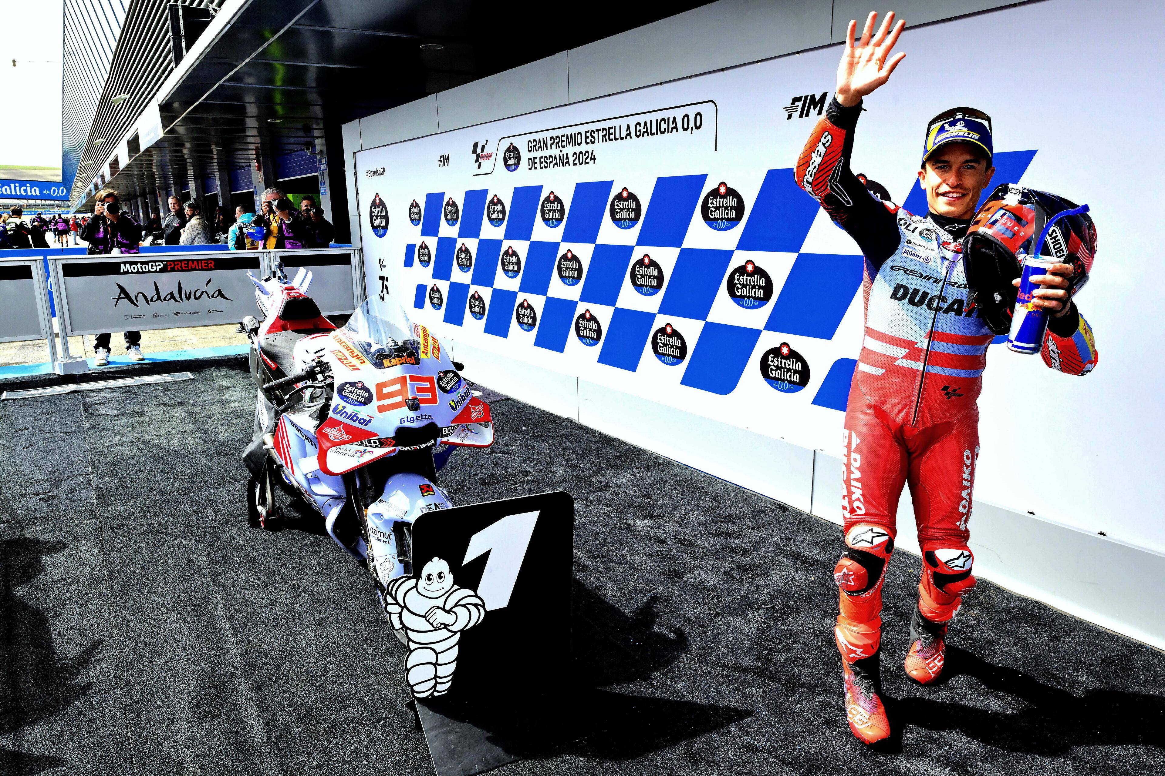 昨天周末,MotoGP 級別的 Q2 排位賽,兩位車手繼續(xù)有著良好的發(fā)揮:馬昆斯在濕地之下跑出了 1 分 46.773 秒的全場最快圈速,拿到了與自己賽車號碼相同的、WGP 職業(yè)生涯的第九十三次排頭位出賽;小馬昆斯也跑出了第六快的 1 分 47.84 秒圈速。兩位車手,在隨后的 Sprint 沖刺賽和周日舉行的正式比賽里,分別在前兩排的發(fā)車位置上。