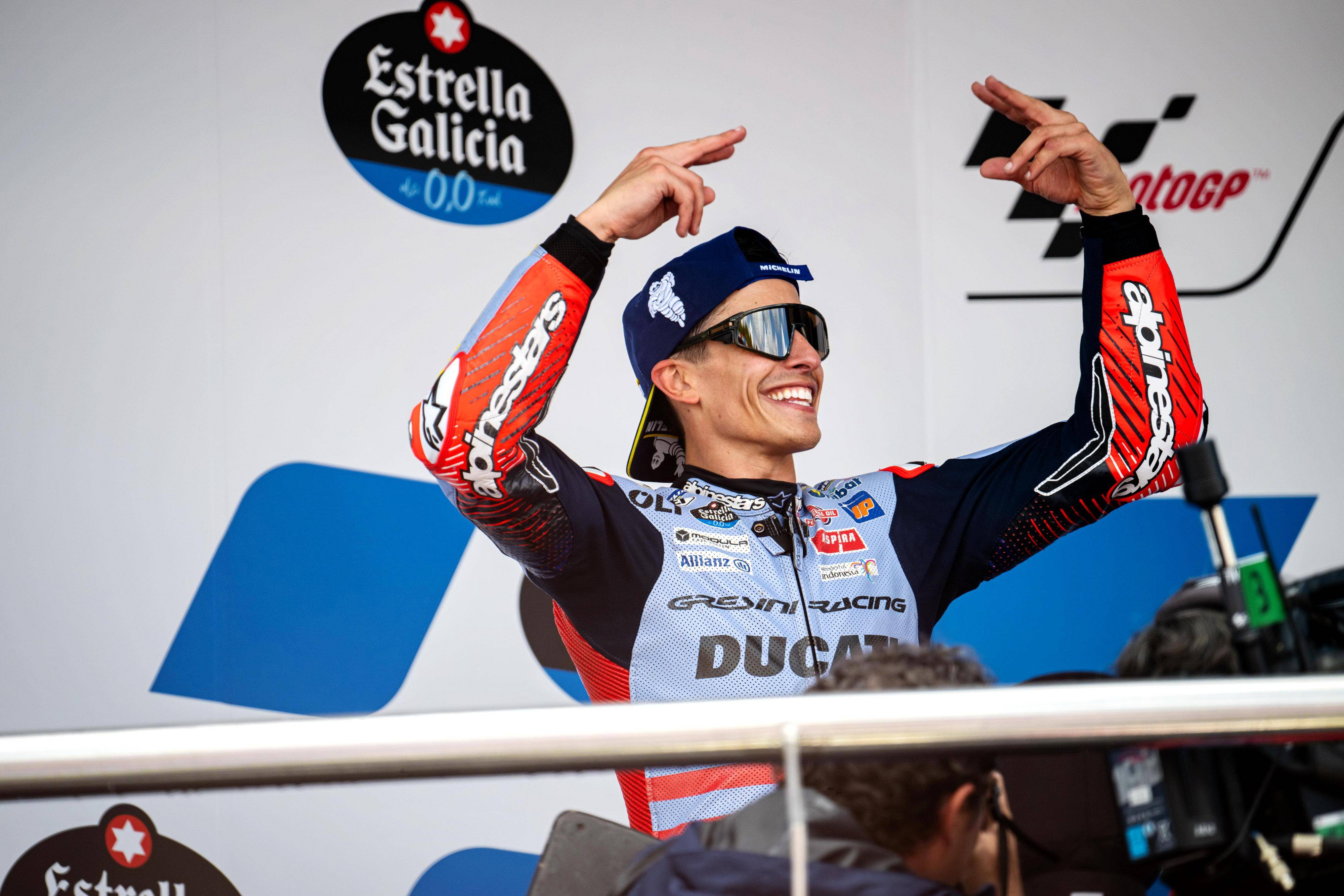 昨天周日(四月 28 日)進(jìn)行的 MotoGP 級(jí)別正賽,賽程為 25 圈、折合約 110 公里。比賽里,吉斯尼 MotoGP 車(chē)隊(duì)的兩位車(chē)手憑借著快速的節(jié)奏,始終成為了場(chǎng)內(nèi)的重要焦點(diǎn)。最終,馬昆斯奪得了亞軍,騎上 Desmosedici GP23 之后、首次登上正賽的頒獎(jiǎng)臺(tái),而小馬昆斯也奪得了第四,讓車(chē)隊(duì)在這場(chǎng)捷雷斯站的比賽里有了豐富的收獲。