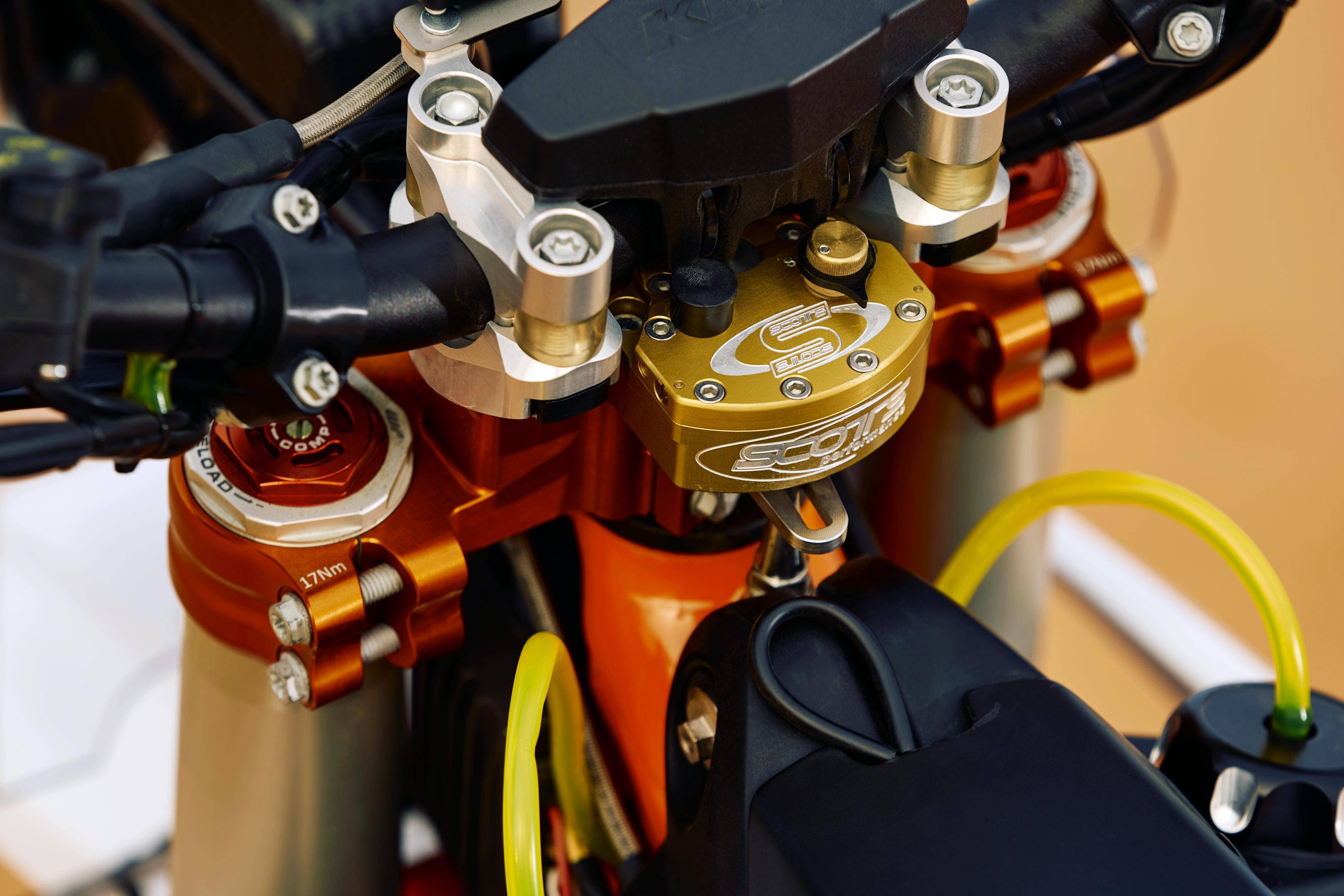 6、WP 配套的新型 Pro 系列前后懸掛系統(tǒng)(前 WP XACT Pro 7548、后 WP XACT Pro 7750),懸掛的基礎(chǔ)設(shè)置是根據(jù)包括貝納維迪斯(Kevin Benavides)、沃克納(Matthias Walkner)等多位達(dá)喀爾摩托車(chē)組冠軍,在比賽中的經(jīng)驗(yàn)作為參考而選定的;