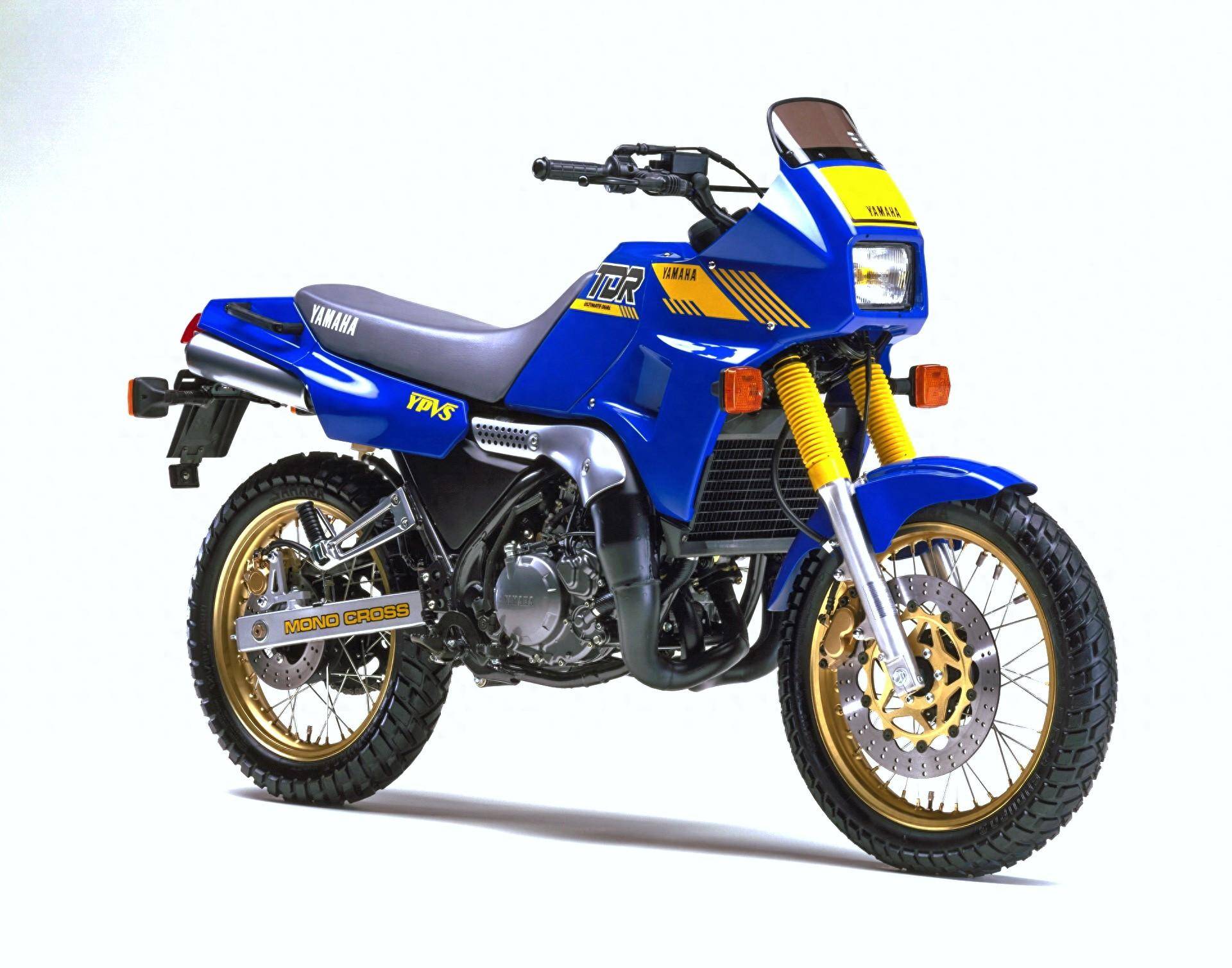 Yamaha 在 1988 年的時(shí)候,推出了當(dāng)時(shí)的 “ 跨界 ” 探險(xiǎn)車 TDR250(工廠編號(hào) 2YK)。該車搭載一副來(lái)自 1985 TZR250 跑車的水冷兩沖程、直列兩氣缸發(fā)動(dòng)機(jī),缸徑、行程為 56.4 mm x 50 mm(該規(guī)格與直列兩氣缸最終版的 1990 TZR250R/3MA 相同),排氣量 249 cc,配備了 YPVS 動(dòng)力閥,最大馬力輸出 45 匹(日本本土版。歐洲和北美版,TDR250 為 46 匹、TZR250 為 50 匹)。車體采用一副鋼管制雙搖籃式的車架,前 18、后 17 英寸直徑的鋼線式車輪標(biāo)配了越野輪胎。