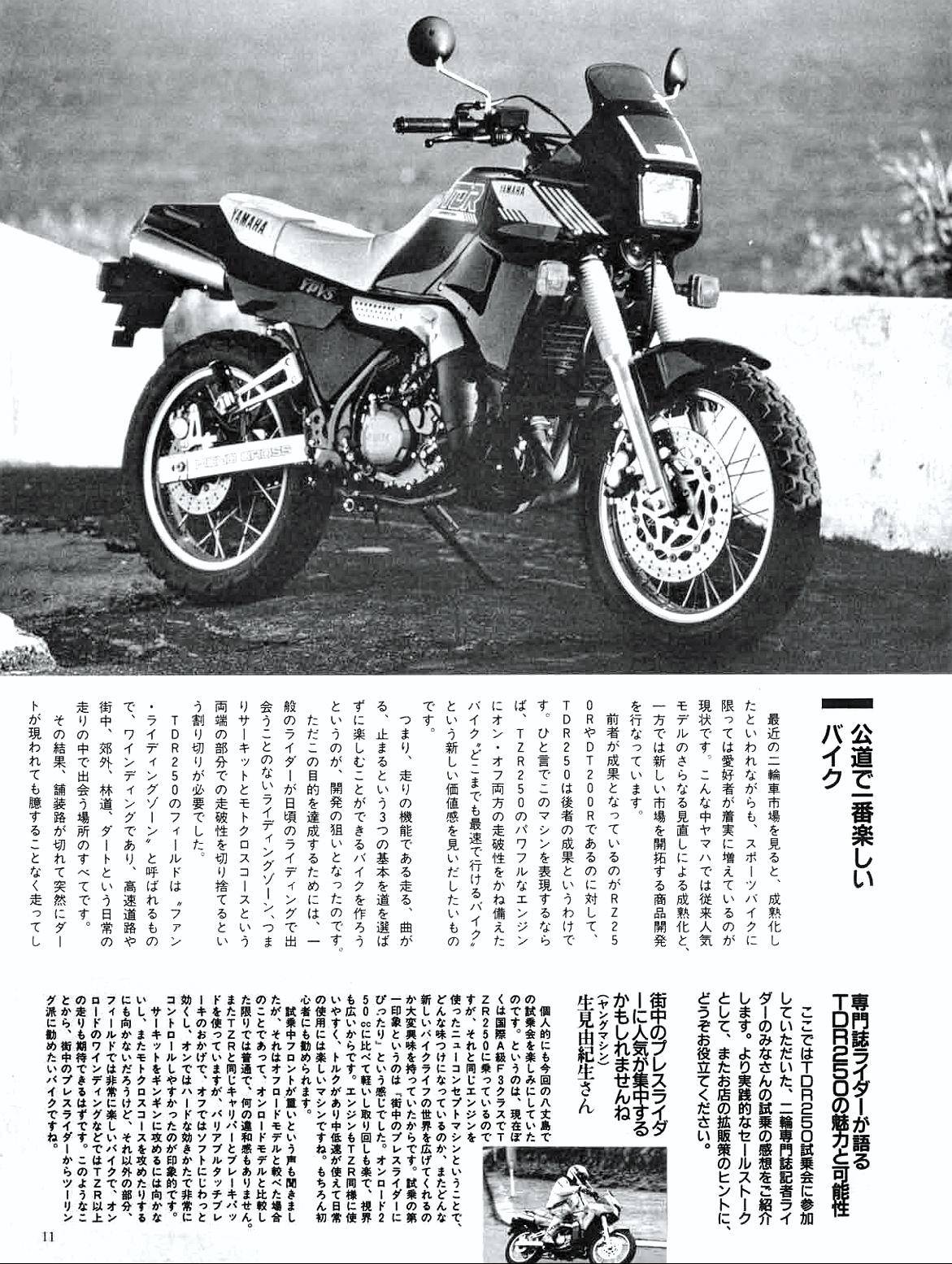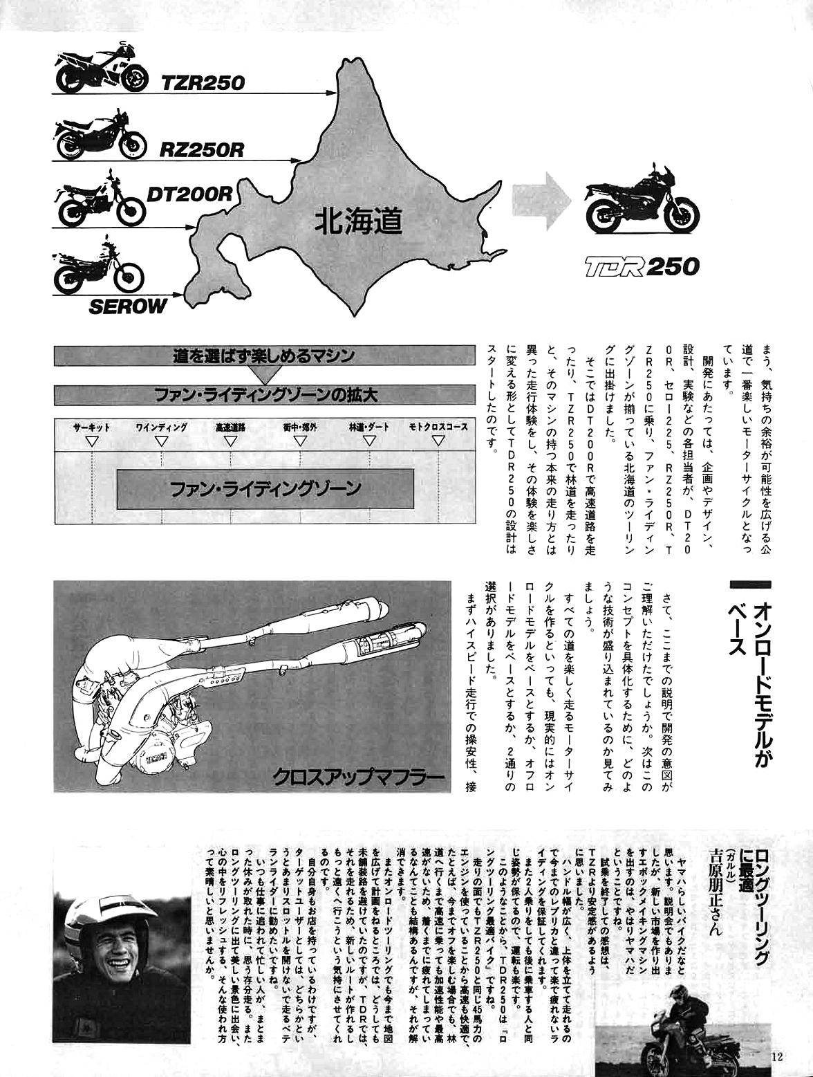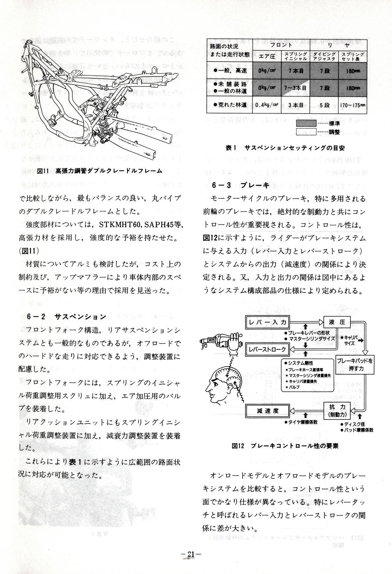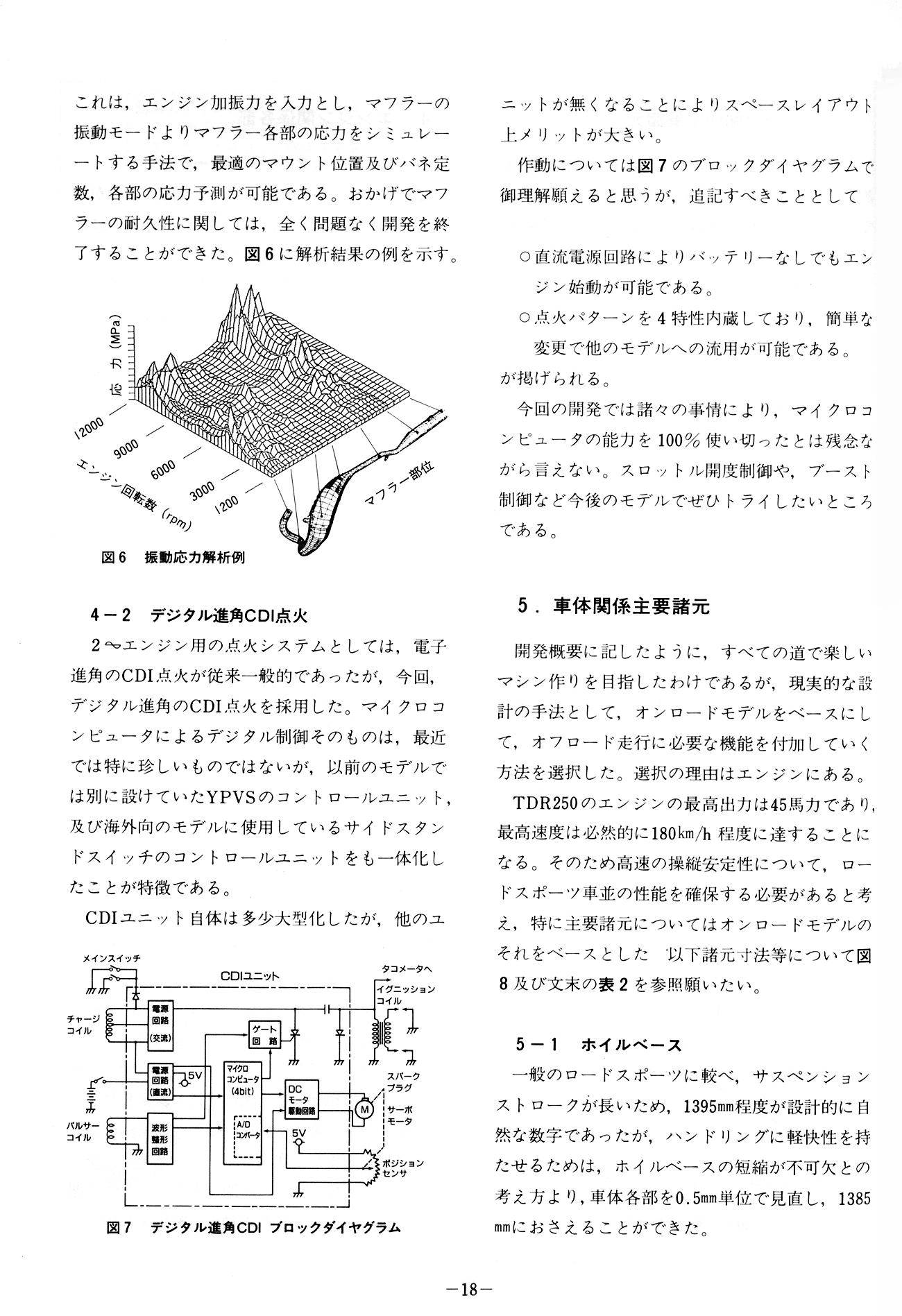 推出 TDR250 的同時(shí),Yamaha 也以技術(shù)文獻(xiàn)的形式,公開了該車的一些設(shè)計(jì)理念。下面是編譯自 1988 年七月發(fā)布《Yamaha 技術(shù)會(huì) 技報(bào) No.6》部分內(nèi)容的摘錄: