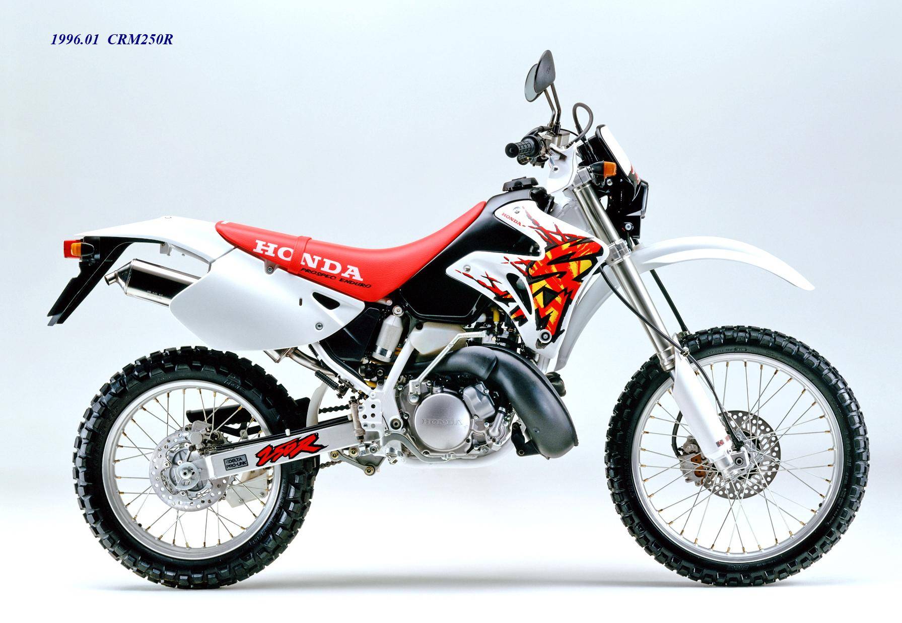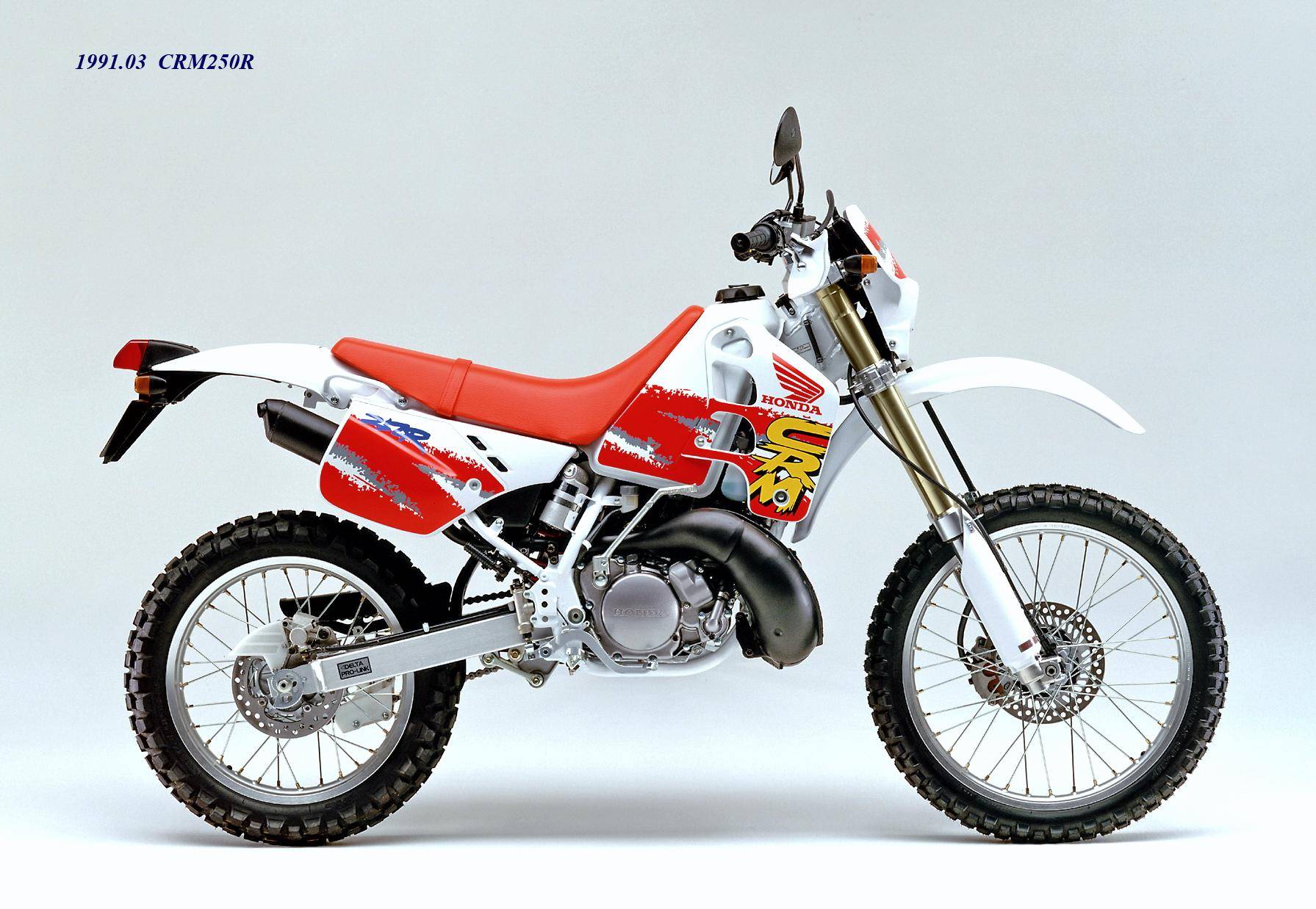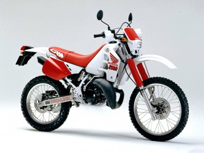 1989 年三月,Honda 正式推出全新的 On-Road 越野車 CRM250R(工廠編號(hào) MD24)。這是廠方第一款搭載兩沖程 250 cc 級(jí)別發(fā)動(dòng)機(jī)的可上牌車型,主要面向日本本土市場(chǎng)。該車搭載一副工廠編號(hào)為 MD24E 的水冷兩沖程單氣缸,缸徑、行程為 66 mm x 72 mm,排氣量 246 cc,節(jié)氣閥口徑為 32 mm 的化油器,能夠根據(jù)轉(zhuǎn)速去獲取最佳點(diǎn)火特性的 DC-CDI 點(diǎn)火系統(tǒng)、可變 RC 排氣動(dòng)力閥門,六檔的變速齒輪箱,具有高冷卻性能的左、右分割式配置的雙散熱器,最大動(dòng)力輸出 37 匹。