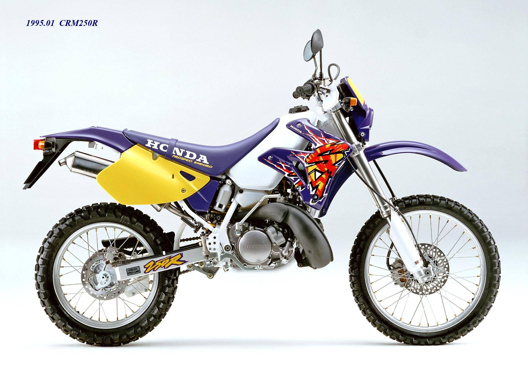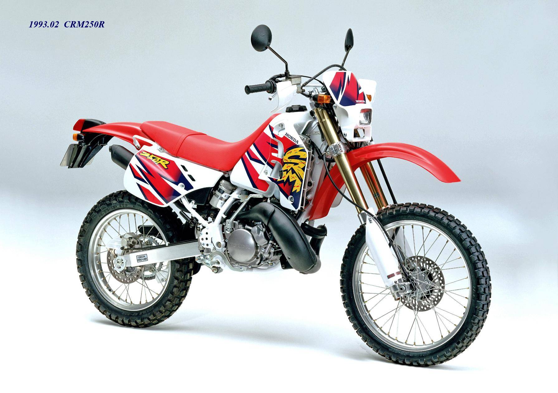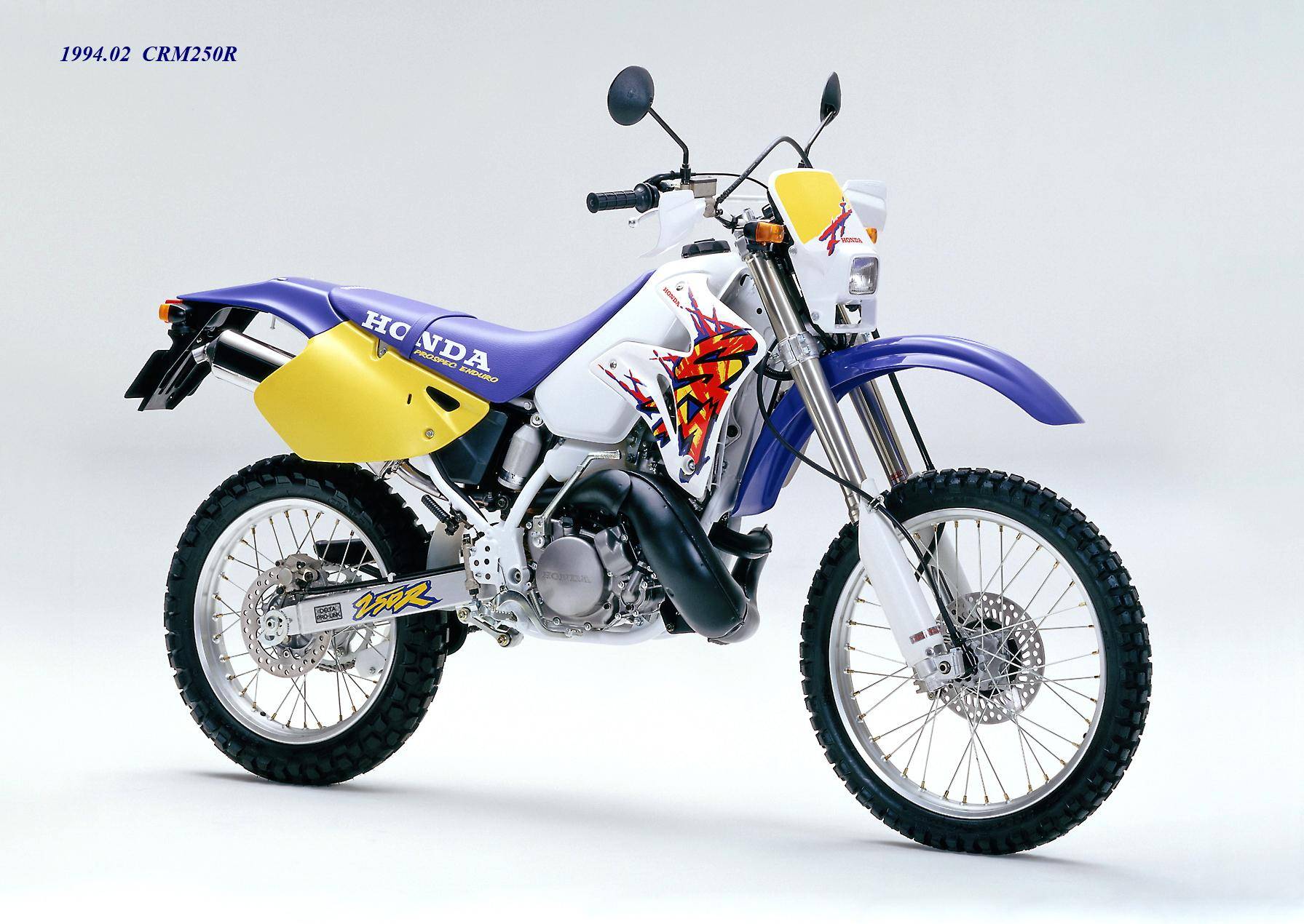 1989 年三月,Honda 正式推出全新的 On-Road 越野車 CRM250R(工廠編號 MD24)。這是廠方第一款搭載兩沖程 250 cc 級別發(fā)動機的可上牌車型,主要面向日本本土市場。該車搭載一副工廠編號為 MD24E 的水冷兩沖程單氣缸,缸徑、行程為 66 mm x 72 mm,排氣量 246 cc,節(jié)氣閥口徑為 32 mm 的化油器,能夠根據(jù)轉(zhuǎn)速去獲取最佳點火特性的 DC-CDI 點火系統(tǒng)、可變 RC 排氣動力閥門,六檔的變速齒輪箱,具有高冷卻性能的左、右分割式配置的雙散熱器,最大動力輸出 37 匹。