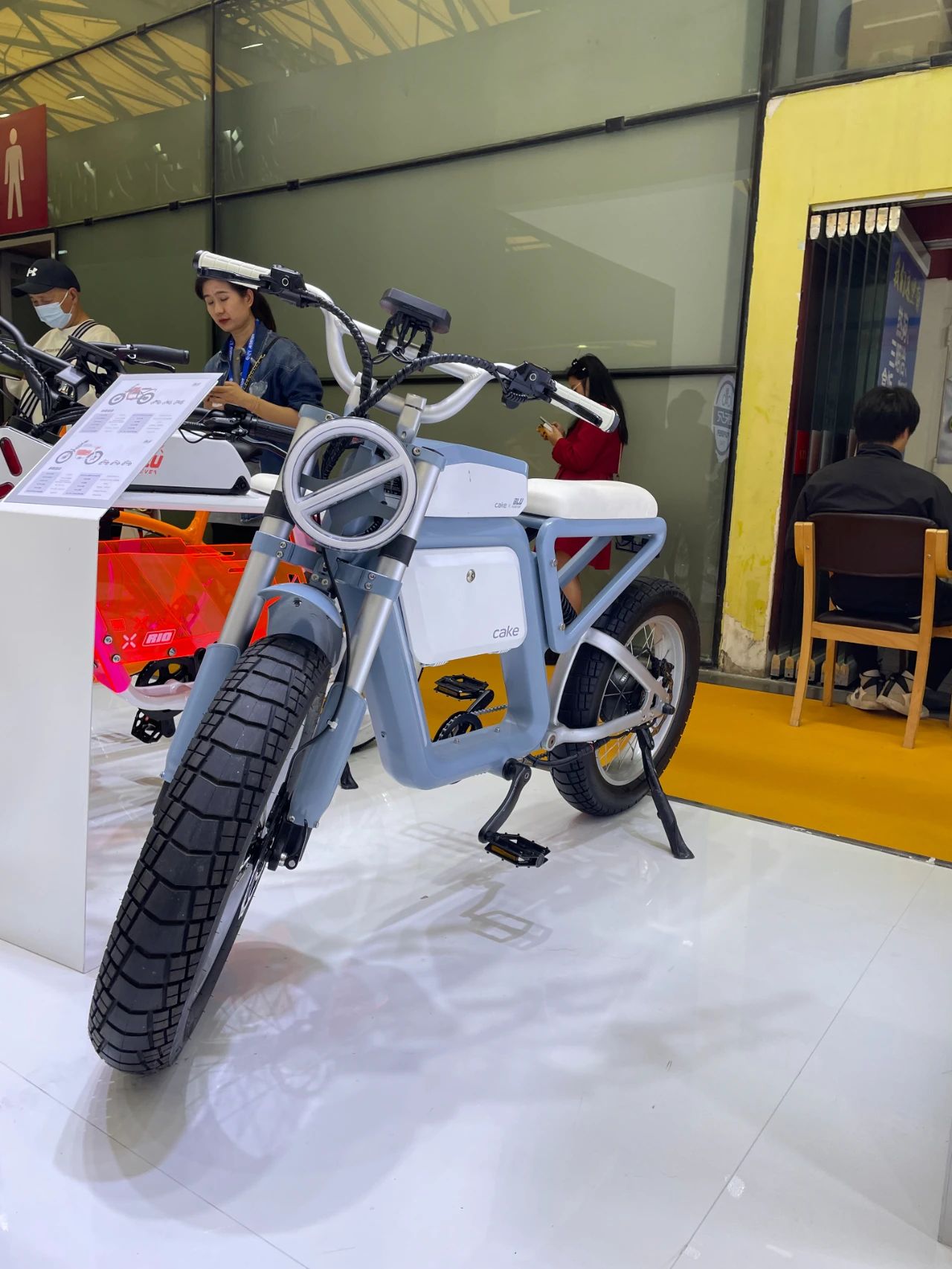 據(jù)悉,此次在展會現(xiàn)場展出的聯(lián)名款也正是早前cake和永久合作項目的新產(chǎn)品。從現(xiàn)場展出的車型可以看出,新的聯(lián)名新車延續(xù)了cake極簡的設(shè)計風(fēng)格,采用了鋁合金的幾何圖形拼接車架,選用了熟悉的“cake藍”配色,能明顯看出cake的品牌元素。