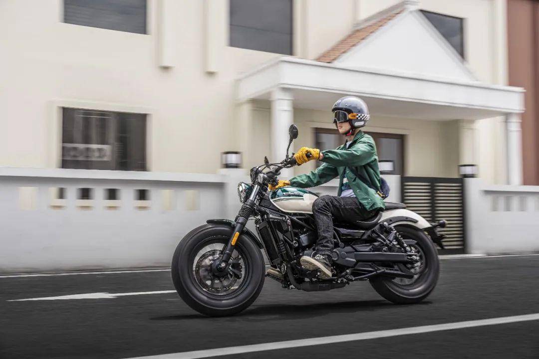 250CL-C對(duì)新手也非常友好,僅有165kg整備質(zhì)量。還有690mm的低座高,小個(gè)女生也能雙腳著地。減震系統(tǒng)采用前正置減震+后側(cè)置雙槍減震的設(shè)定,且優(yōu)化了剛性及阻尼,行程達(dá)到了120/75mm,小坑小洼也不易觸底。輪胎選用450CL-C同款的130/150 -16CST定制輪胎,騎行穩(wěn)定性、剎車及過彎性能均有出色表現(xiàn)。同時(shí),搭配類輻條輪鋁制輪轂,完美融合力量與運(yùn)動(dòng)美學(xué)。