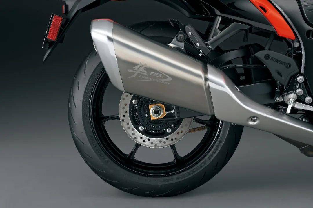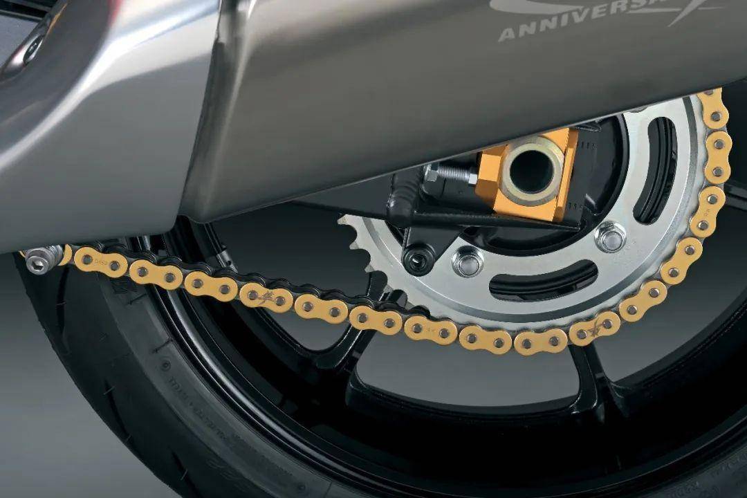只要夠留意,就可以發(fā)現(xiàn)這臺(tái)重型摩托車的紀(jì)念元素滿滿:比如在粗大的排氣管上,同樣有著“隼25th ANNIVERSARY”圖案;象征著勝利的V元素,出現(xiàn)在側(cè)罩、尾罩、排氣系統(tǒng)上;就連金色的鏈條上,每隔5節(jié)鏈板都會(huì)打上一個(gè)“隼”!確實(shí),這只隼值得鈴木這么大張旗鼓。因?yàn)椋?/span>GSX1300R Hayabusa的確是風(fēng)格獨(dú)特、實(shí)力雄厚、載滿榮耀的重磅摩托車!